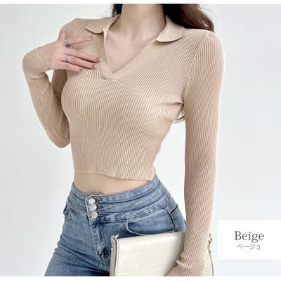 きれいめにもカジュアルにも着こなせる襟付きVネックニットトップス。さらりとした肌触りのニット生地は伸縮性もあるので着心地◎デイリーにはもちろん、スポーツやオフィス、デートなどさまざまなシーンに活躍するアイテムです。