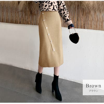 ボタンデザインが可愛いタイトスカート。肌触りの柔らかいニット素材を使用し、女性らしいシルエットなのに動きやすい◎。ウエストはゴム使用で着脱もラクラク♪お出かけやオフィスなど様々なコーデに使えるおしゃれアイテム。