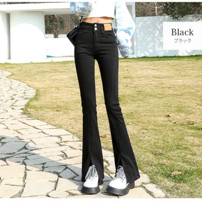 フロントスリット フレアデニム フレアパンツ
