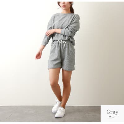 凹凸のあるワッフル風の生地がかわいい2点セットのルームウェア♪