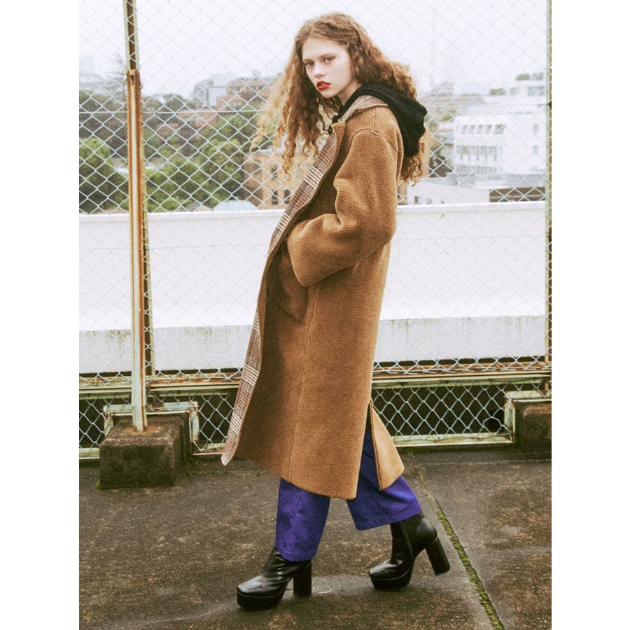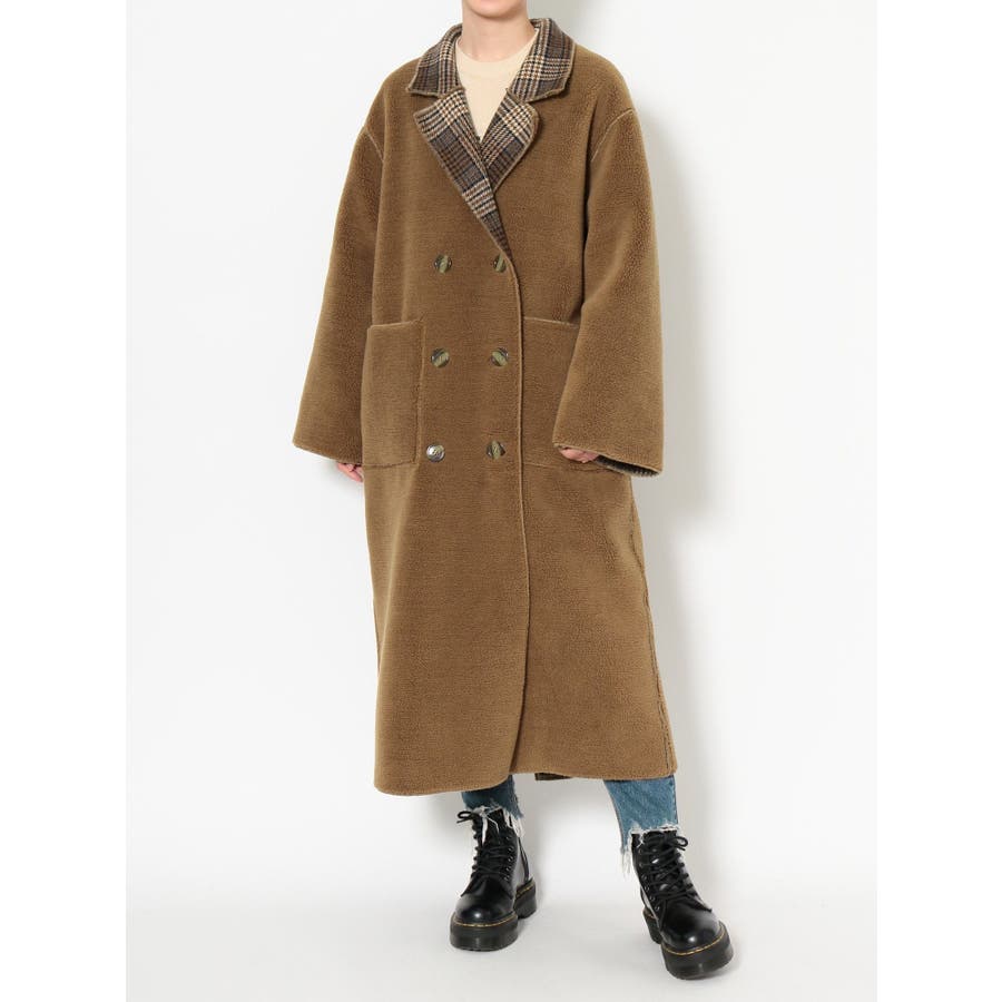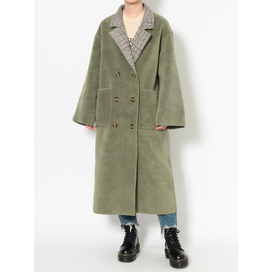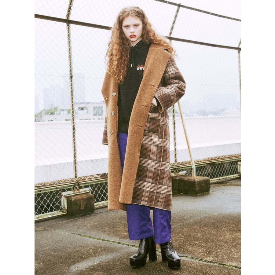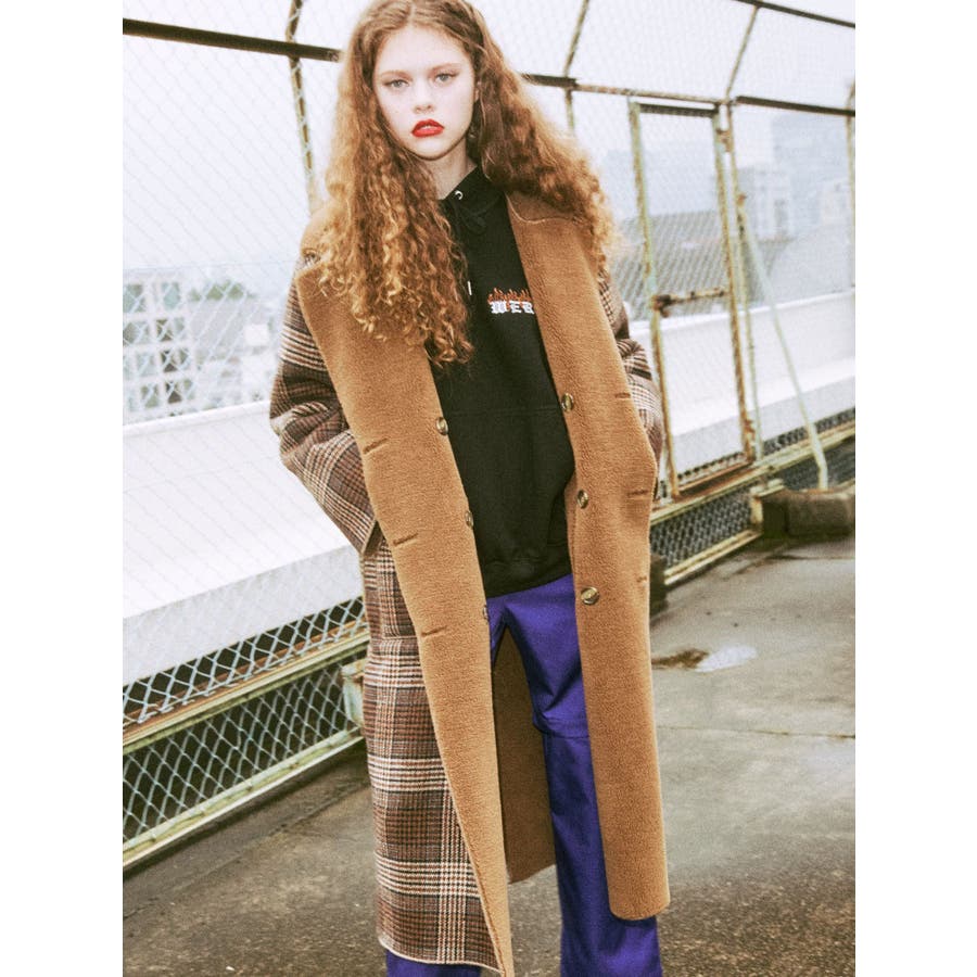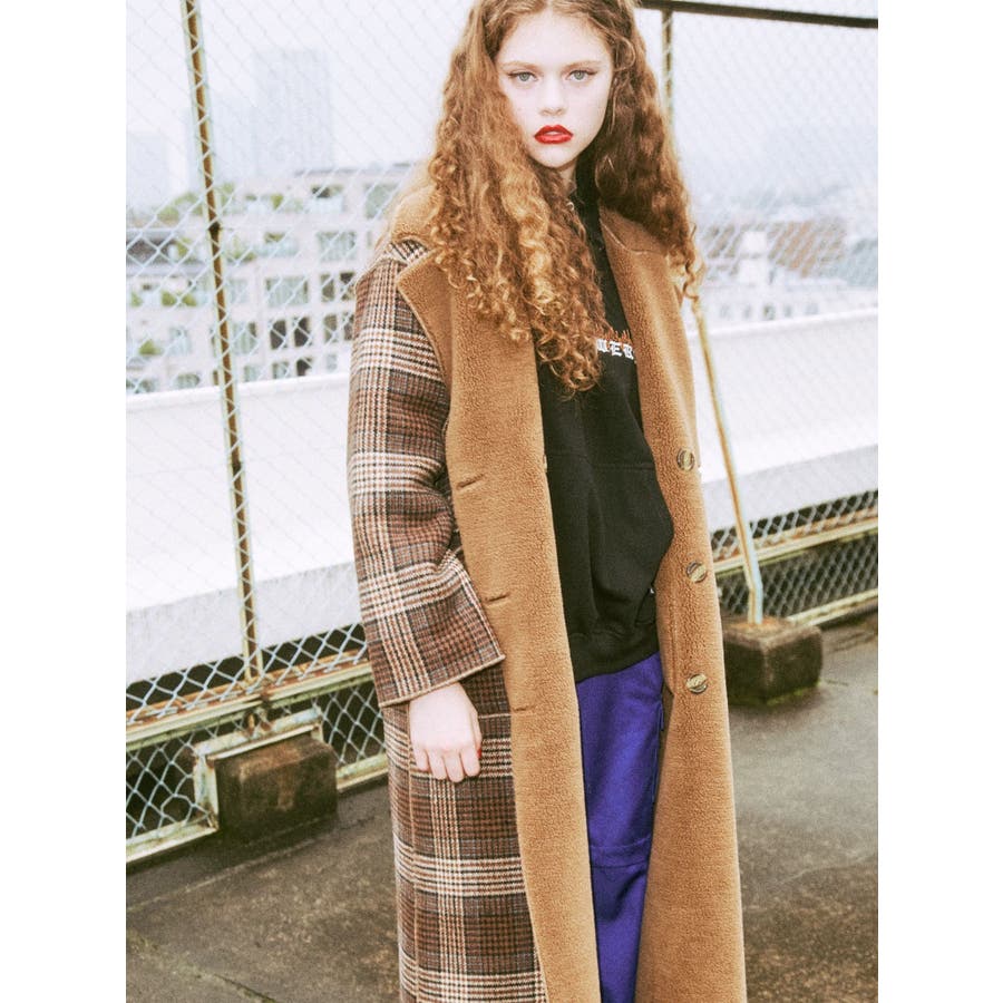 ボアとチェック素材がボンディングされたリバーシブルコート。ボア素材でカジュアルに、チェック素材で少し大人っぽい印象になります。あえてチェック素材面にカジュアルなフーディをレイヤードするなどjouetie定番のミックススタイルがおすすめ。ガーリーなワンピースとも相性が抜群です。【修正コメント】※ピンクが正しい仕様①表側のステッチはBODY同色になるように修正②ブラックのファーはボアになるように変更③ブラックはBODY同色のマーブル釦で修正④後ろベンツの丈が3cm長くなるように修正
