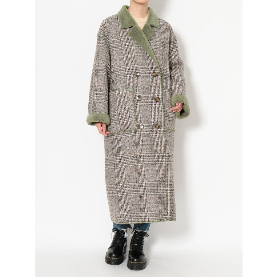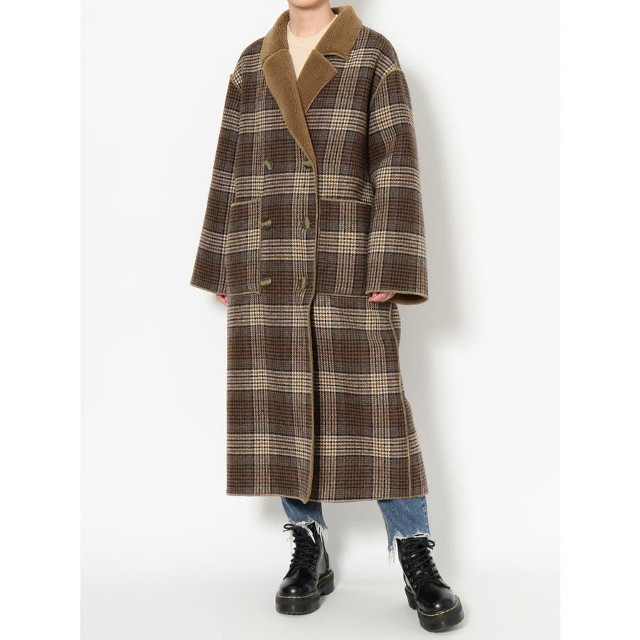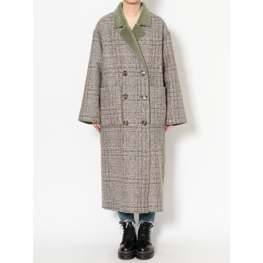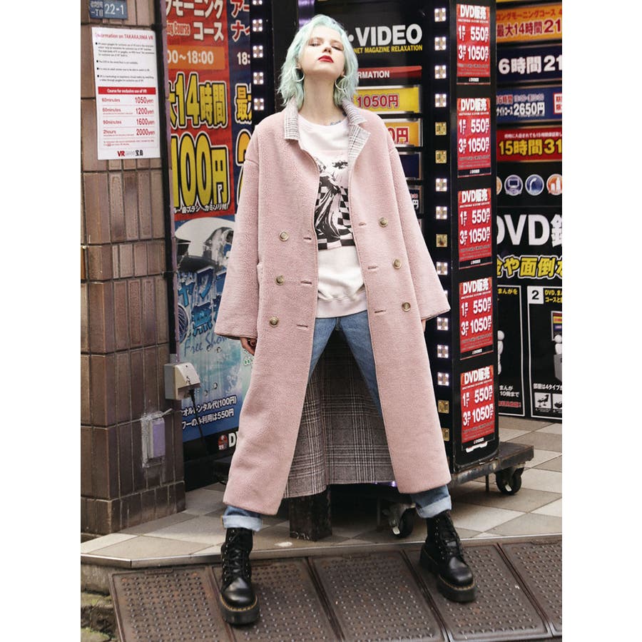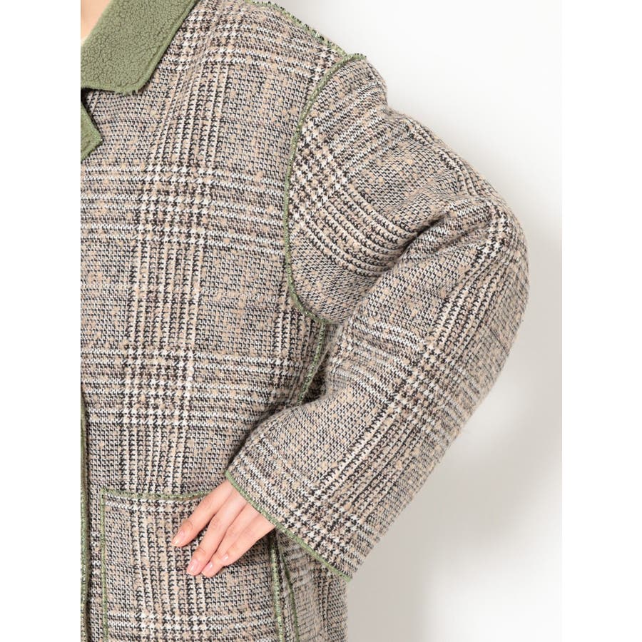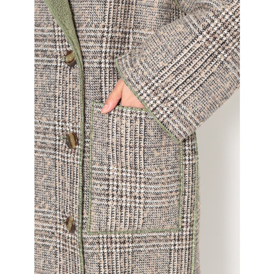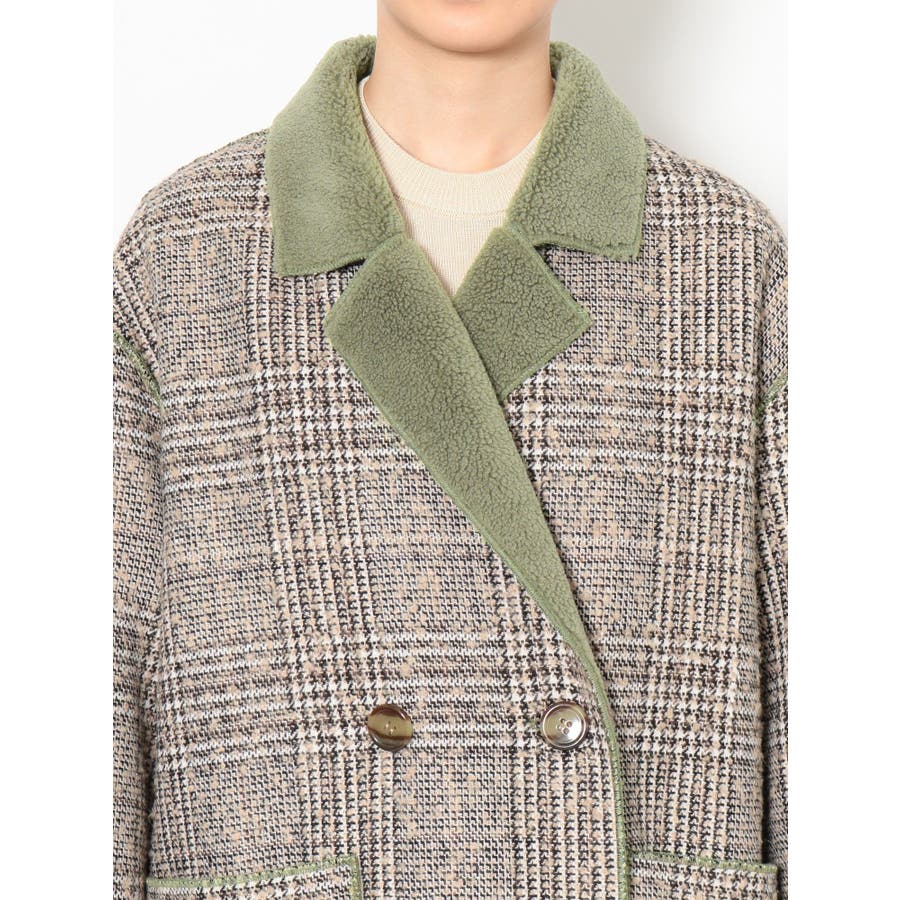 ボアとチェック素材がボンディングされたリバーシブルコート。ボア素材でカジュアルに、チェック素材で少し大人っぽい印象になります。あえてチェック素材面にカジュアルなフーディをレイヤードするなどjouetie定番のミックススタイルがおすすめ。ガーリーなワンピースとも相性が抜群です。【修正コメント】※ピンクが正しい仕様①表側のステッチはBODY同色になるように修正②ブラックのファーはボアになるように変更③ブラックはBODY同色のマーブル釦で修正④後ろベンツの丈が3cm長くなるように修正