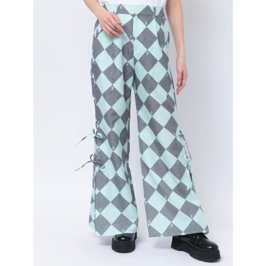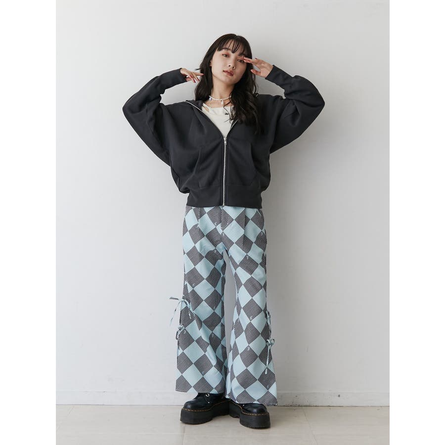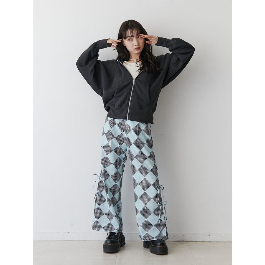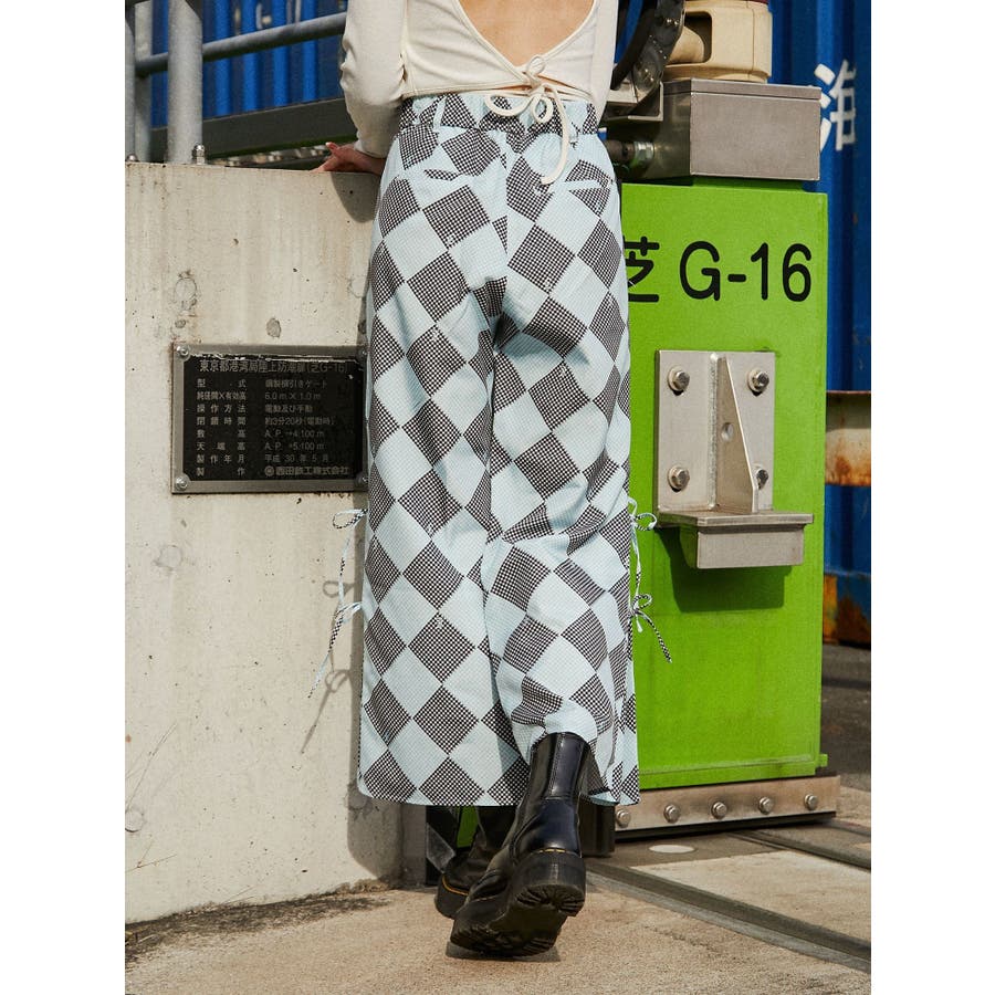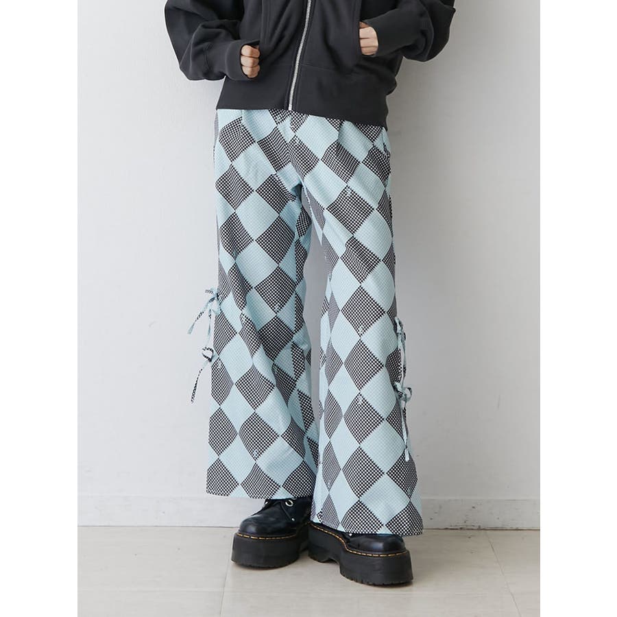 【ブルー】ギンガムパターンサイドリボンパンツ【セットアップ対応】
