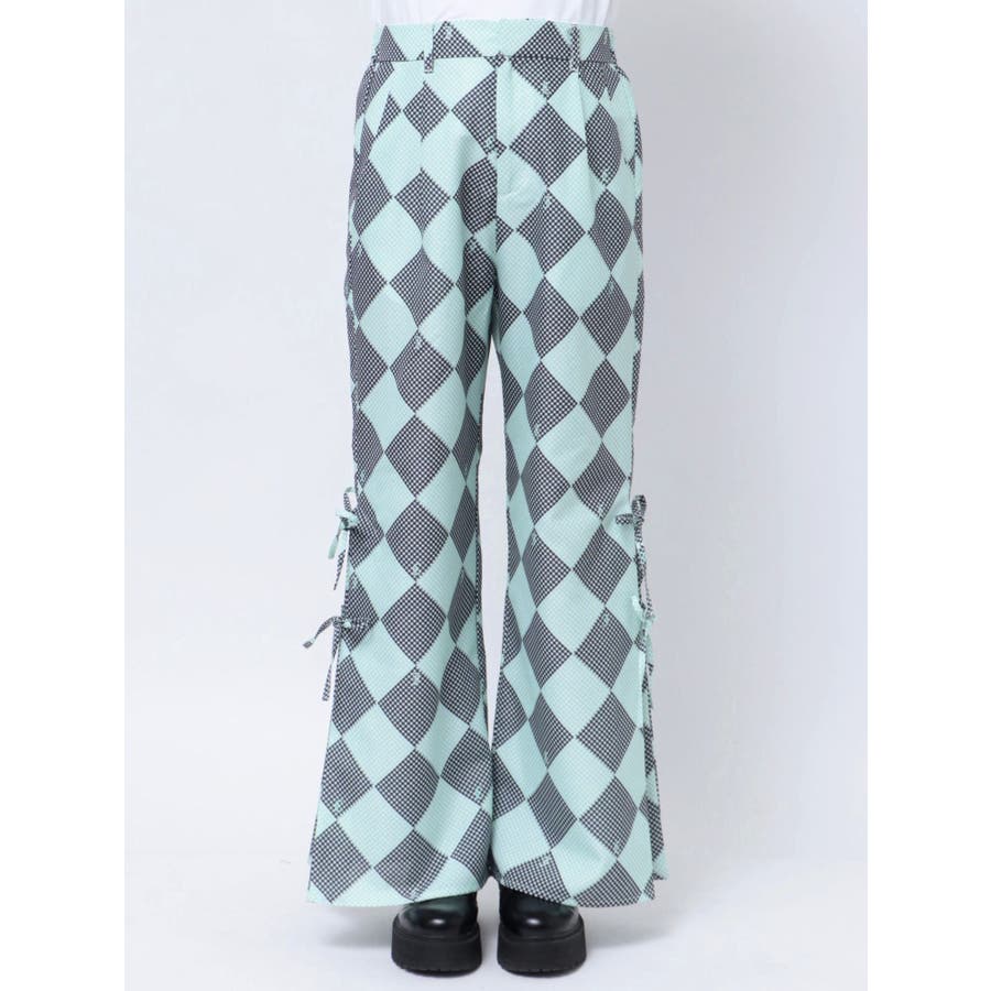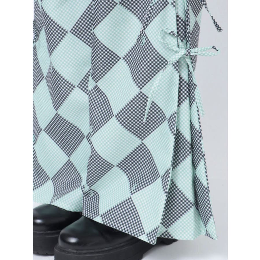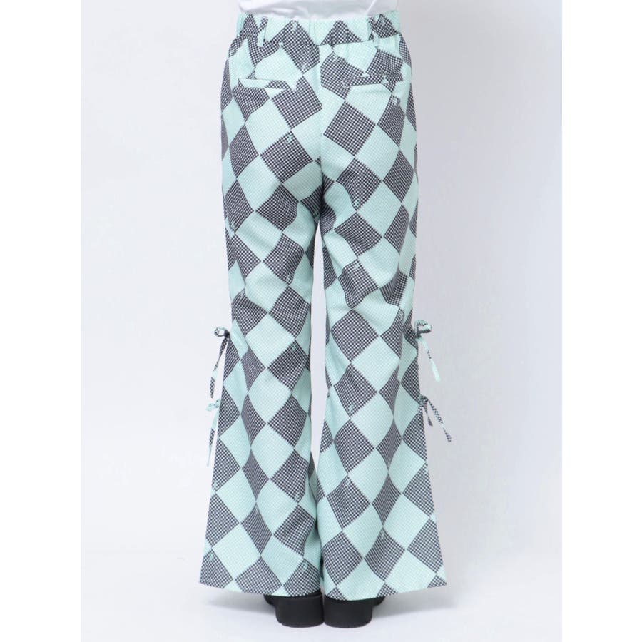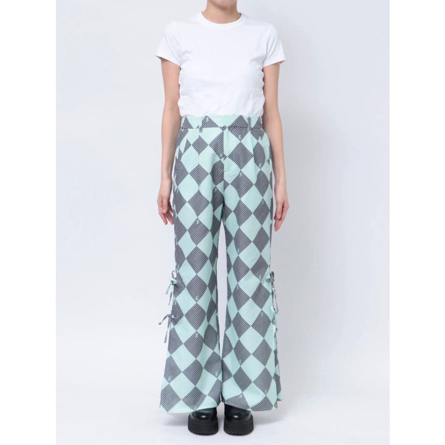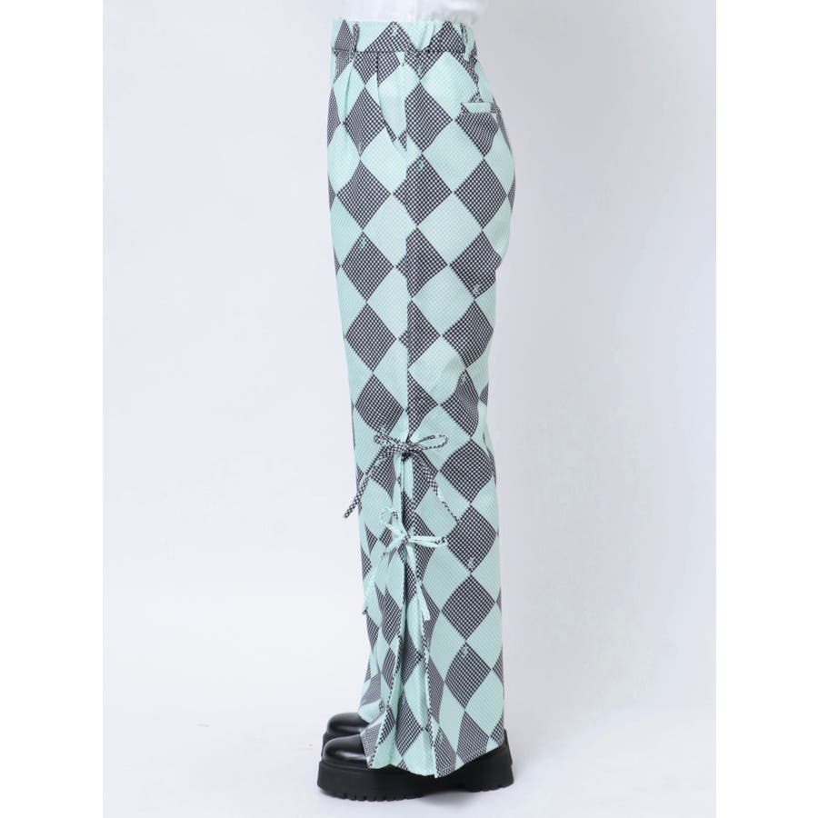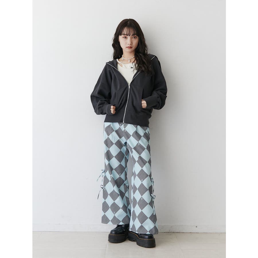 【ブルー】ギンガムパターンサイドリボンパンツ【セットアップ対応】