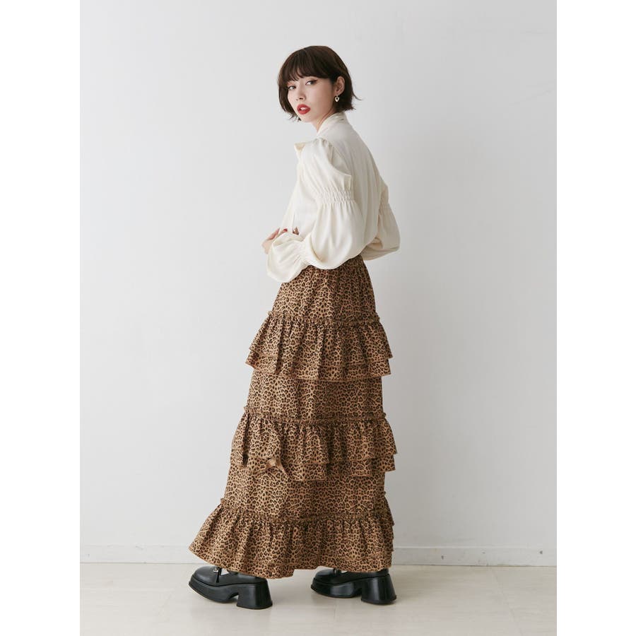 【ブラウン】ティアードフリルスカート【セットアップ対応】