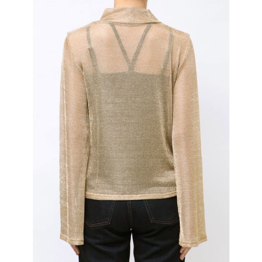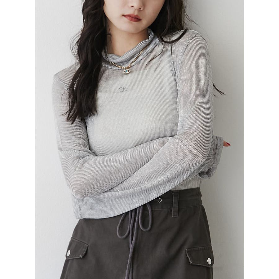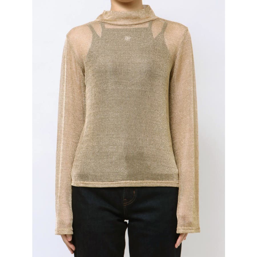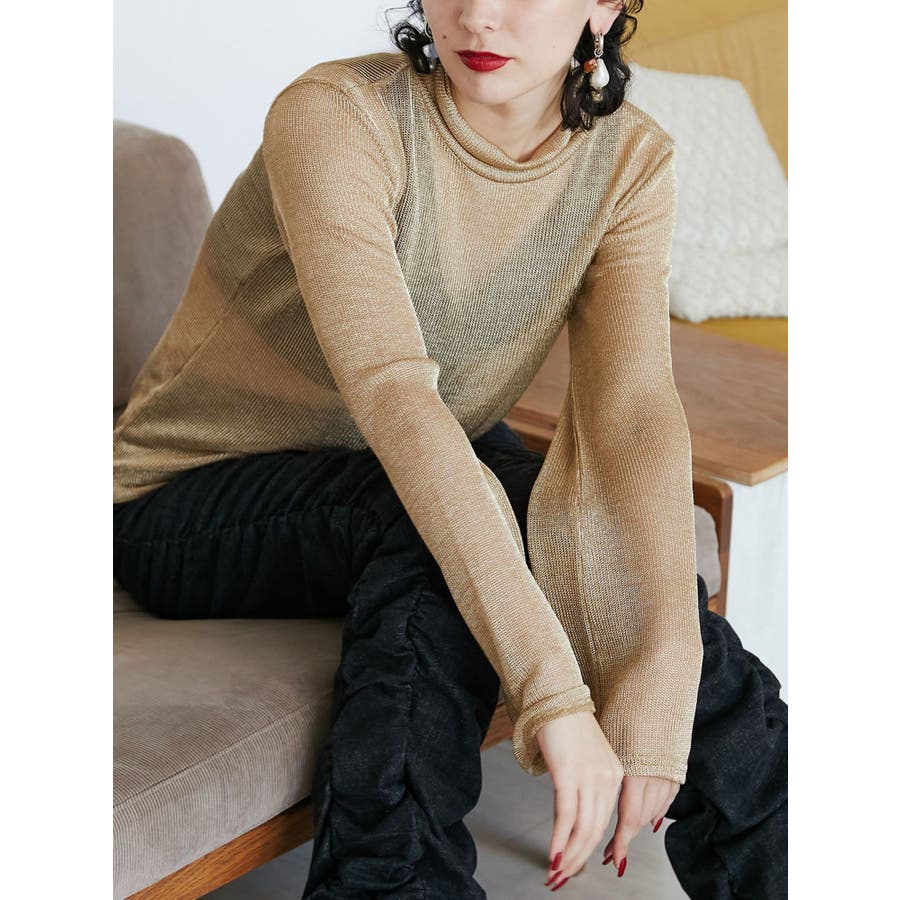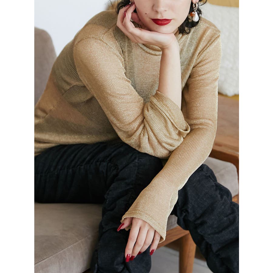 【ポイント】メタリックなメッシュ素材が他には無いシアートップス。体にフィットしすぎない程よいサイズ感とフレアスリーブデザインなのでトップスとしてもインナーとしても活躍するアイテムです。特に今季注目のシルバー、ゴールドは取り入れるだけでトレンド感MAXなコーディネートになります!【スタイリング】キャミワンピースやルーズTシャツとのレイヤードがおすすめです。キラキラとしたハイネックデザインが映えて今っぽくなります!※着用画像はフラッシュの加減で実際の製品と色味等が異なる場合がございますので、生地のズームアップ画像をご確認ください。※ご利用の端末画面の設定により実際の商品と色味が異なる場合がございます。※正しいサイズはアイテムサイズ表をご確認ください。※商品のお取り扱いについては、脇についている洗濯ネーム類をご確認下さい。【商品特徴】透け感:あり伸縮性:あり生地の厚さ:普通サイズ感:普通裏地:なしポケット:なし