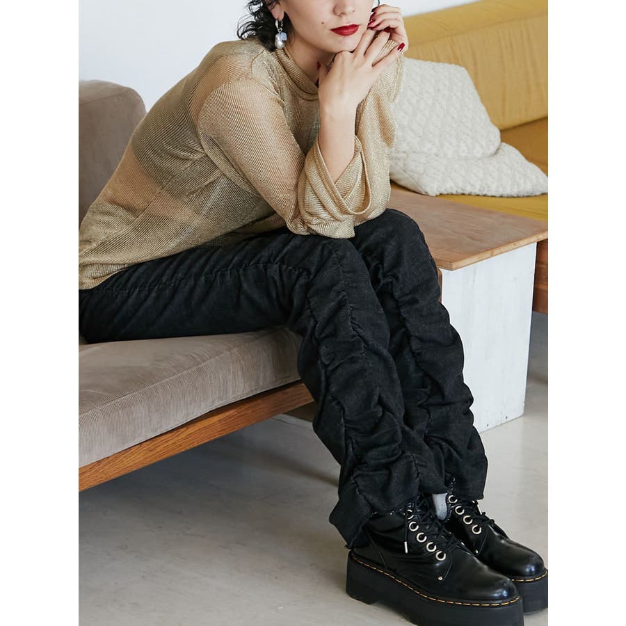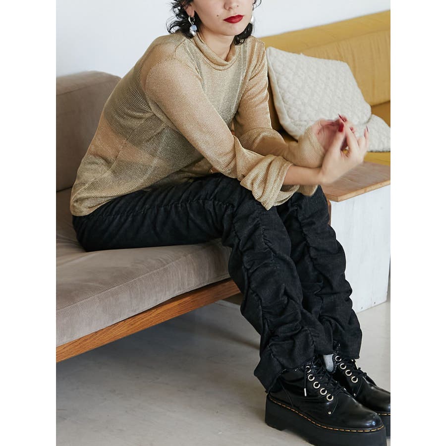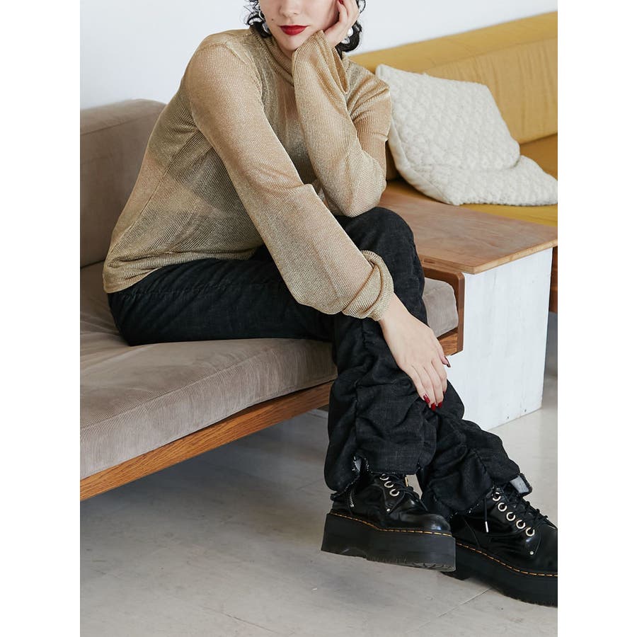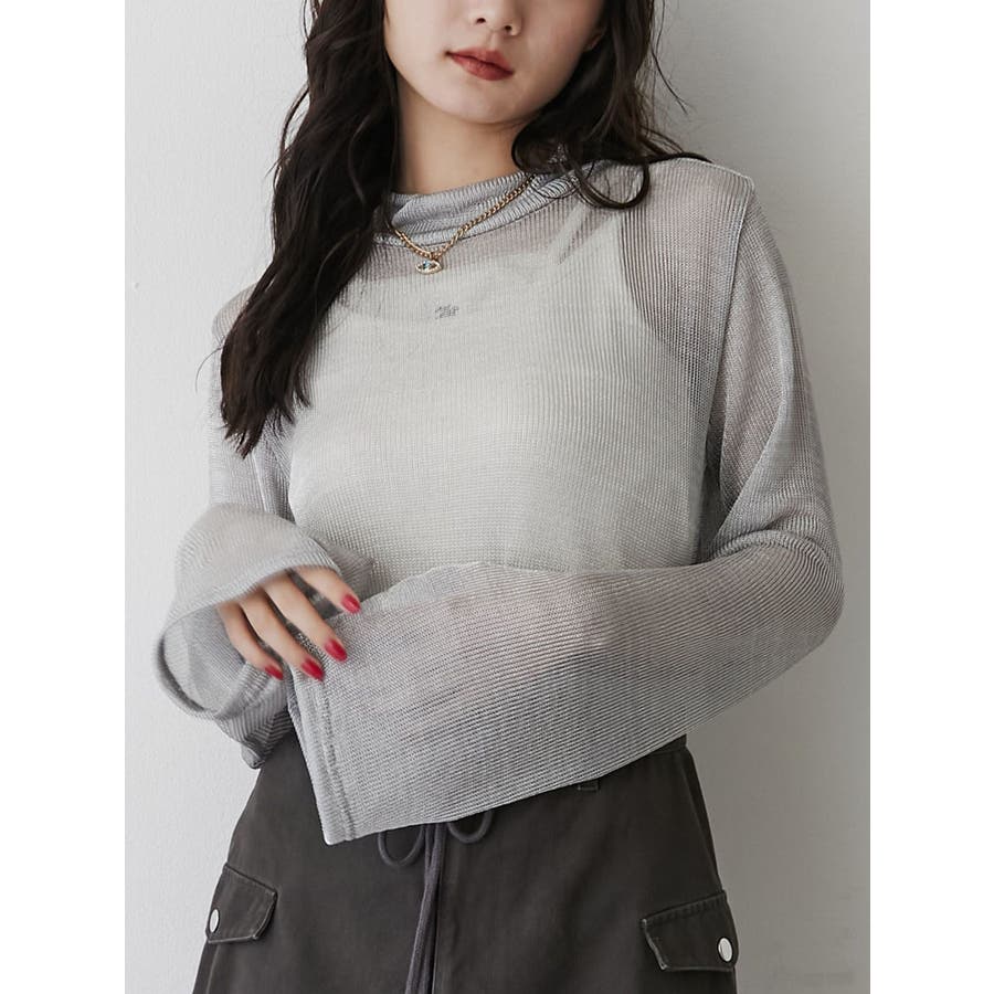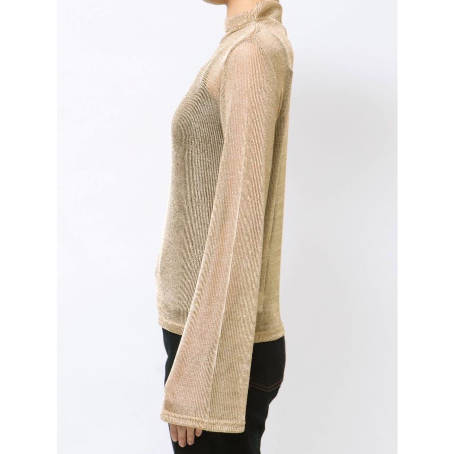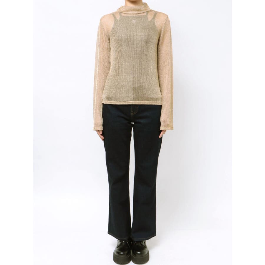 【ポイント】メタリックなメッシュ素材が他には無いシアートップス。体にフィットしすぎない程よいサイズ感とフレアスリーブデザインなのでトップスとしてもインナーとしても活躍するアイテムです。特に今季注目のシルバー、ゴールドは取り入れるだけでトレンド感MAXなコーディネートになります!【スタイリング】キャミワンピースやルーズTシャツとのレイヤードがおすすめです。キラキラとしたハイネックデザインが映えて今っぽくなります!※着用画像はフラッシュの加減で実際の製品と色味等が異なる場合がございますので、生地のズームアップ画像をご確認ください。※ご利用の端末画面の設定により実際の商品と色味が異なる場合がございます。※正しいサイズはアイテムサイズ表をご確認ください。※商品のお取り扱いについては、脇についている洗濯ネーム類をご確認下さい。【商品特徴】透け感:あり伸縮性:あり生地の厚さ:普通サイズ感:普通裏地:なしポケット:なし