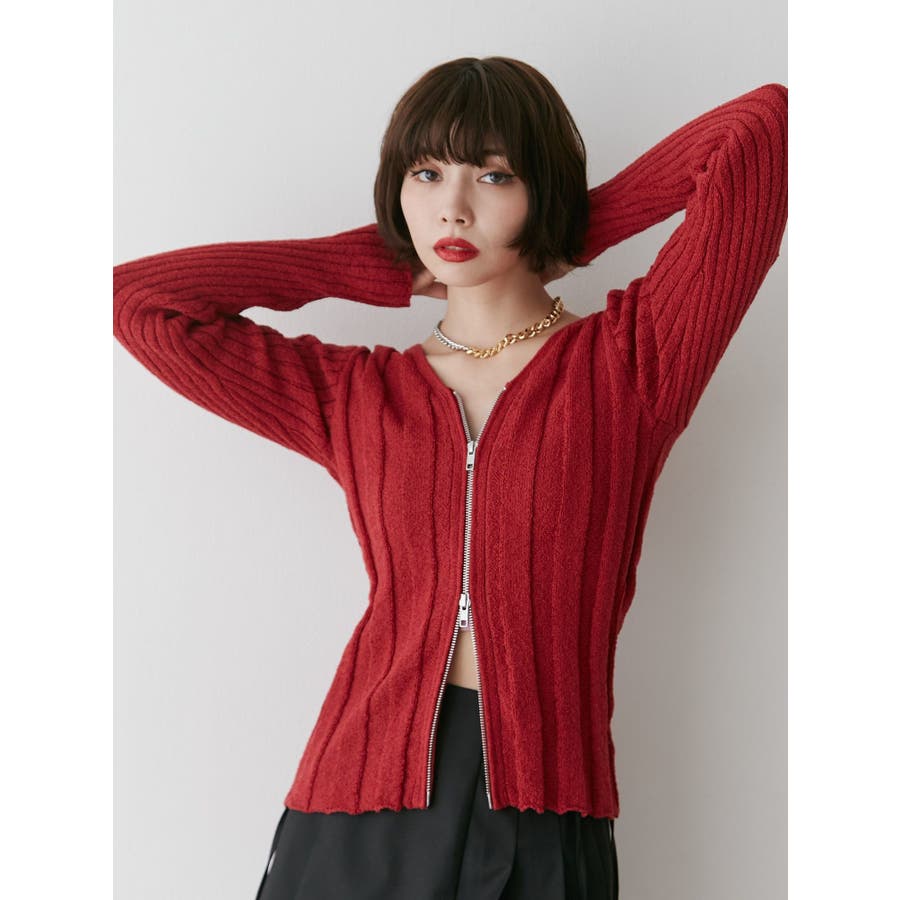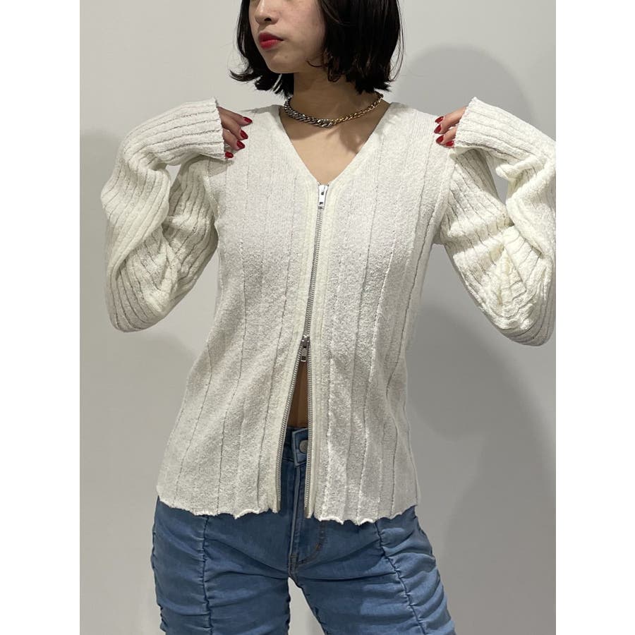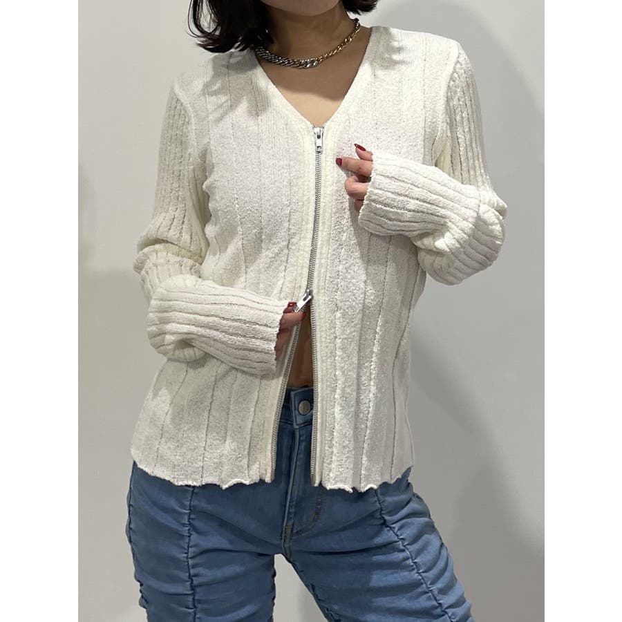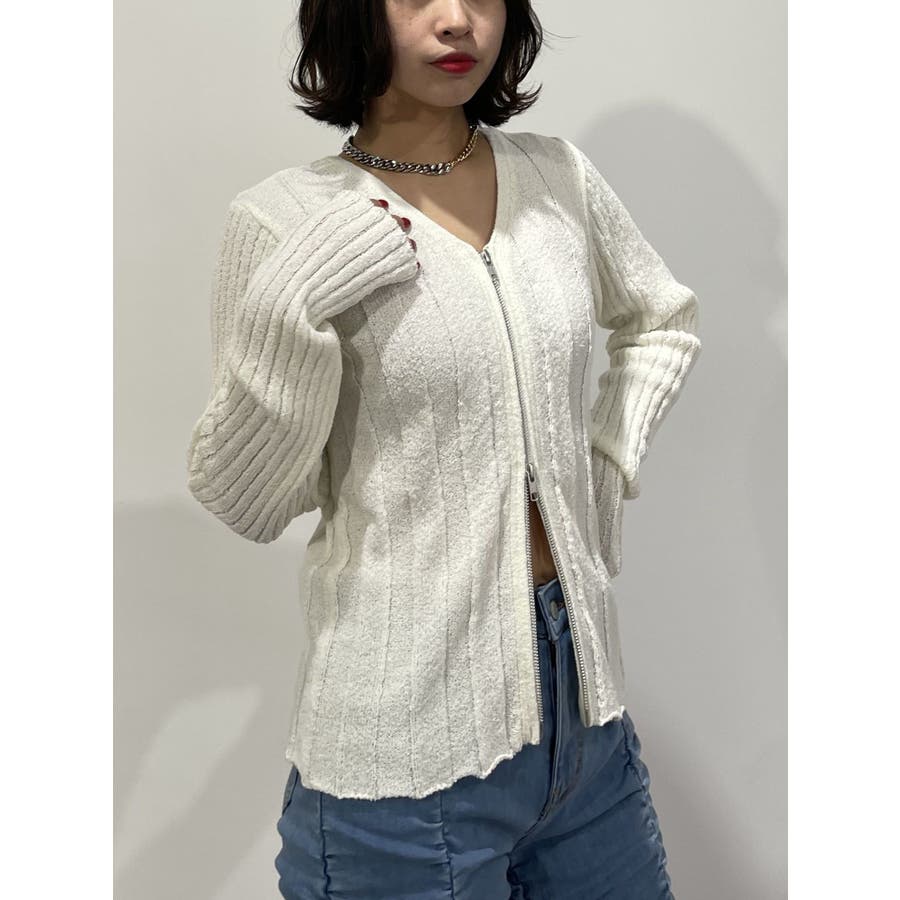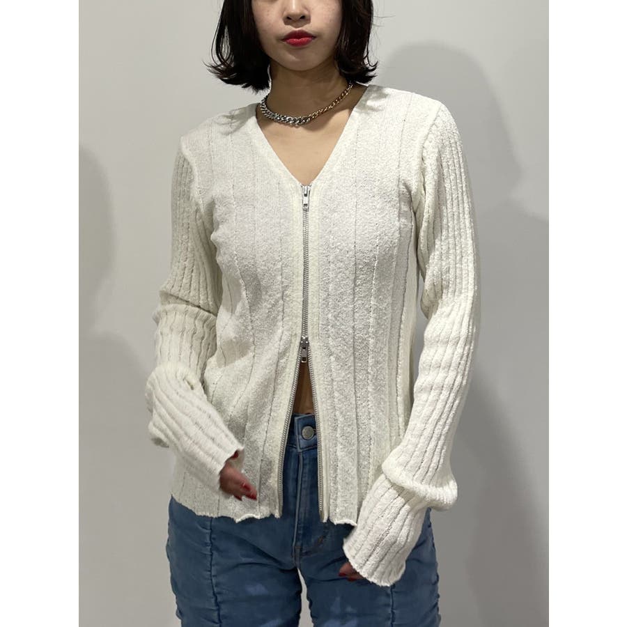 【ポイント】ポコポコとしたブークレ素材で編み立てた、表面感の可愛いニット。柔らかい素材が心地よく、リブ編みで体にフィットするシルエットです。【スタイリング】ジップの開け方次第で、様々なバランスでスタイリングが楽しめます。トップスとしてもカーディガンとしても着られるマルチなアイテムです。※着用画像はフラッシュの加減で実際の製品と色味等が異なる場合がございますので、生地のズームアップ画像をご確認ください。※ご利用の端末画面の設定により実際の商品と色味が異なる場合がございます。※正しいサイズはアイテムサイズ表をご確認ください。※商品のお取り扱いについては、脇についている洗濯ネーム類をご確認下さい。【商品特徴】透け感:なし伸縮性:あり生地の厚さ:普通サイズ感:普通裏地:なしポケット:なし