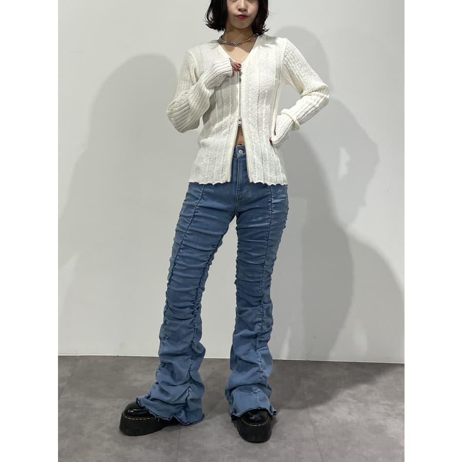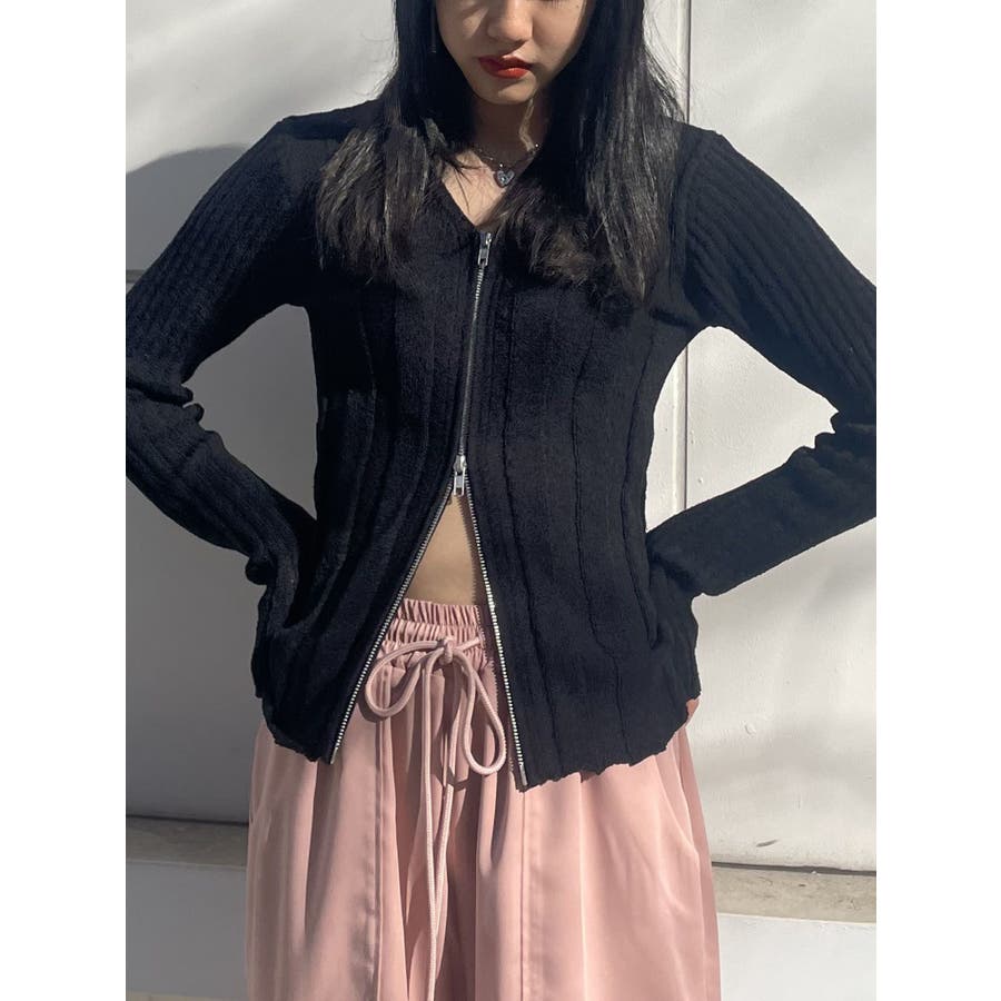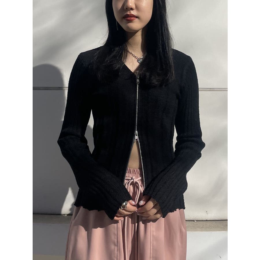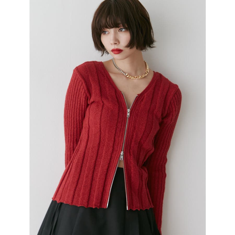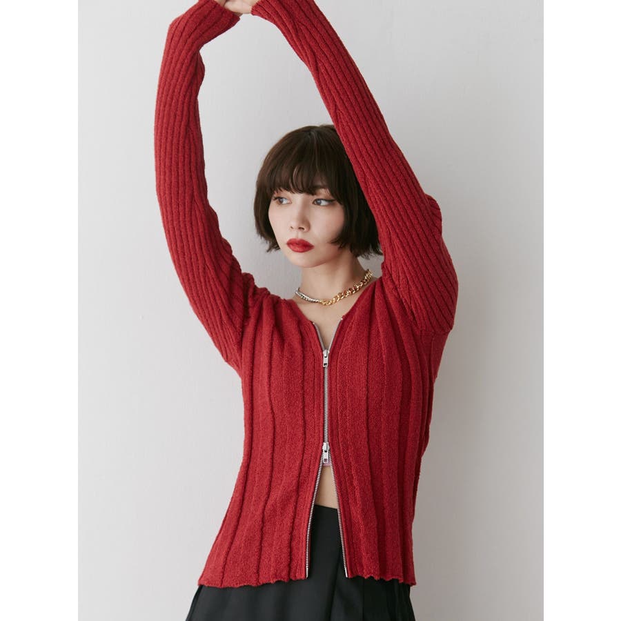 【ポイント】ポコポコとしたブークレ素材で編み立てた、表面感の可愛いニット。柔らかい素材が心地よく、リブ編みで体にフィットするシルエットです。【スタイリング】ジップの開け方次第で、様々なバランスでスタイリングが楽しめます。トップスとしてもカーディガンとしても着られるマルチなアイテムです。※着用画像はフラッシュの加減で実際の製品と色味等が異なる場合がございますので、生地のズームアップ画像をご確認ください。※ご利用の端末画面の設定により実際の商品と色味が異なる場合がございます。※正しいサイズはアイテムサイズ表をご確認ください。※商品のお取り扱いについては、脇についている洗濯ネーム類をご確認下さい。【商品特徴】透け感:なし伸縮性:あり生地の厚さ:普通サイズ感:普通裏地:なしポケット:なし