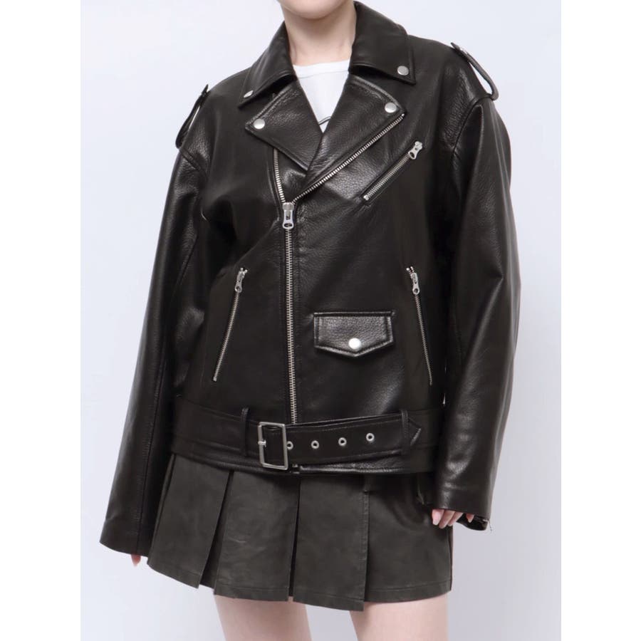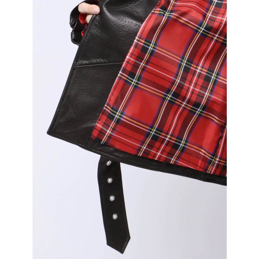 【ポイント】 ユニセックスで着用できる、オーバーサイズのライダースジャケット。 本革を使用したオーセンティックなデザインで、永く着用してもらいたいこだわりの1着。 チェック柄の裏地で、前を開けて着ても裏地がチラッと覗いてポイントになります。 本革を使用しているので、レザー特有の経年変化を楽しんでいただけます。 一生モノのアウターとして愛用できるおすすめのアイテムです。 【スタイリング】 あえてガーリーなアイテムと合わせた甘辛MIXスタイリングがおすすめです。 いつものコーディネートに羽織るだけで一気にオシャレ上級者に! ーーーーーーーーーーーーーーーーーーーーーーーーーーーーーーーー 『POSTOKYO』 新創奏福 ファッションを通して 自分のSTYLEを奏でるように 新しく創造しよう ここから生まれるカルチャー ここから始まるStory 日本の文化、カルチャーを私達のフィルターで融合しオリジナルのスタイルを提案。 日本から世界へ日本のファッションを新しいカルチャーを運んでいく Souvenir shop ーーーーーーーーーーーーーーーーーーーーーーーーーーーーーーーー ※着用画像はフラッシュの加減で実際の製品と色味等が異なる場合がございますので、生地のズームアップ画像をご確認ください。 ※ご利用の端末画面の設定により実際の商品と色味が異なる場合がございます。 ※正しいサイズはアイテムサイズ表をご確認ください。 ※商品のお取り扱いについては、脇についている洗濯ネーム類をご確認下さい。【商品特徴】透け感:なし伸縮性:なし生地の厚さ:厚手サイズ感:ゆったり裏地:ありポケット:あり(前)