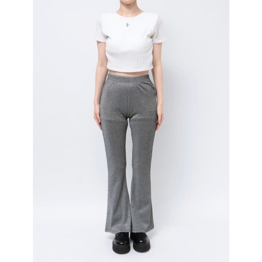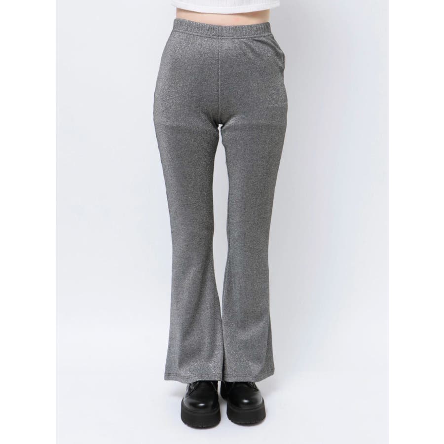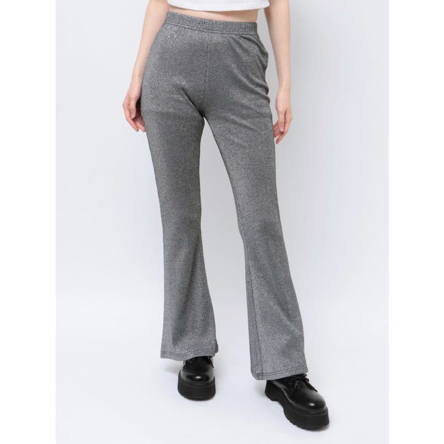 【ポイント】毎回大好評のjouetie定番のイージーフィットフレアパンツは、今季トレンド感のあるラメ素材にで登場。深めの股上と裾にかけて広くなるフィットフレアなシルエットで脚長・着痩せ効果も抜群です!【スタイリング】ルーズシルエットのTシャツやシャツブラウスなどに合わせたスタイリングがおすすめです。ミニ丈のボトムスやワンピースにレイヤードすると今っぽくこなれ感のある着こなしに◎※着用画像はフラッシュの加減で実際の製品と色味等が異なる場合がございますので、生地のズームアップ画像をご確認ください。※ご利用の端末画面の設定により実際の商品と色味が異なる場合がございます。※正しいサイズはアイテムサイズ表をご確認ください。※商品のお取り扱いについては、脇についている洗濯ネーム類をご確認下さい。【商品特徴】透け感:なし伸縮性:あり生地の厚さ:普通サイズ感:普通裏地:なしポケット:あり(後)