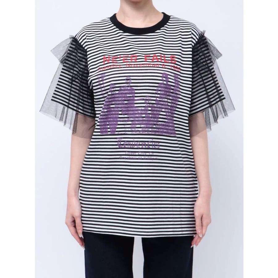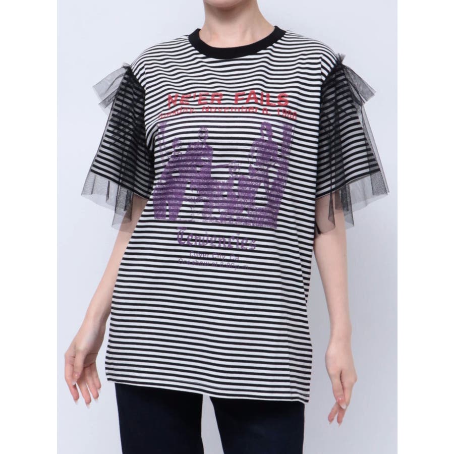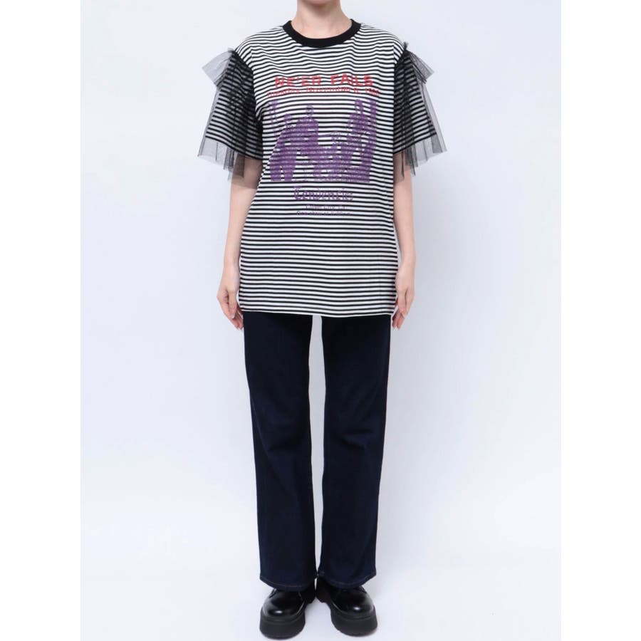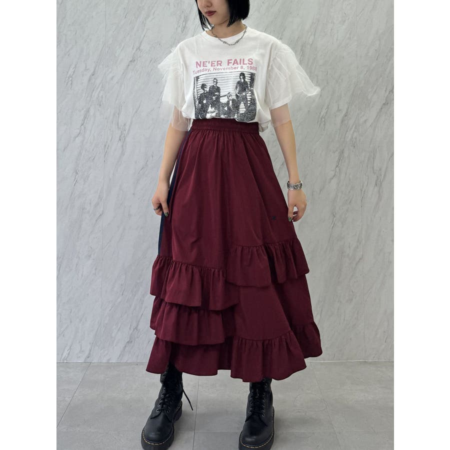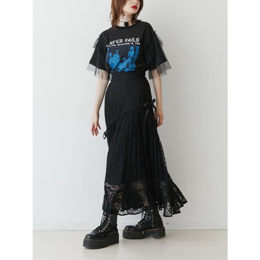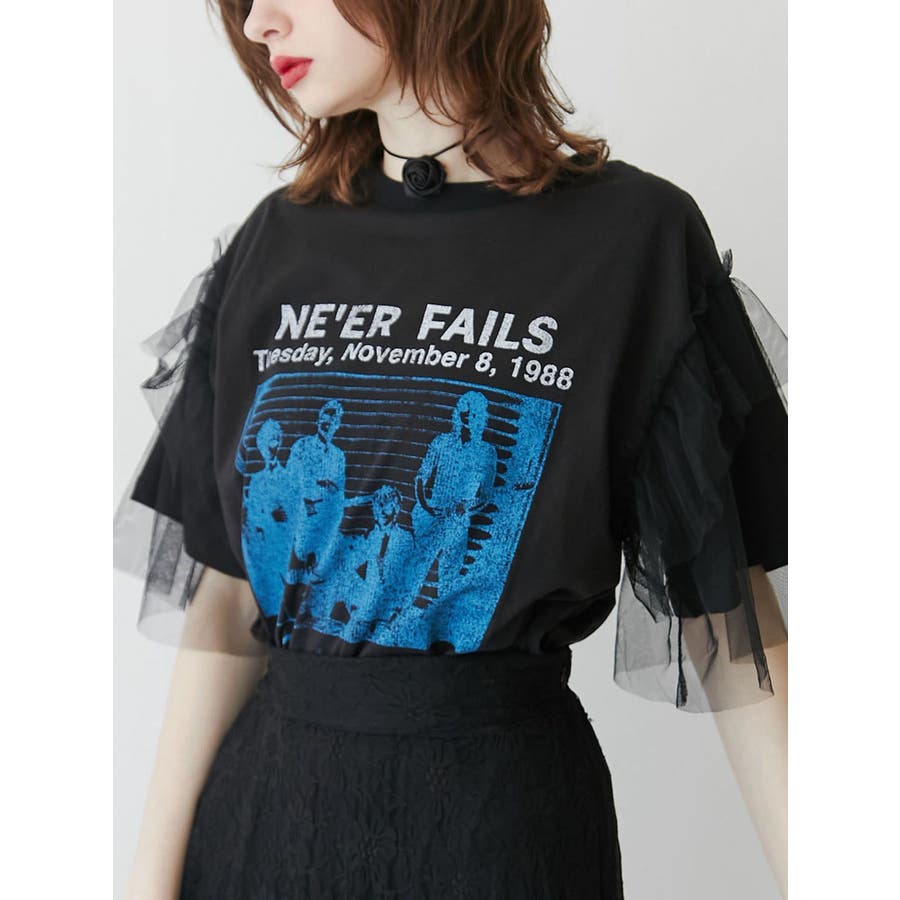 チュールレイヤードロックTシャツ
