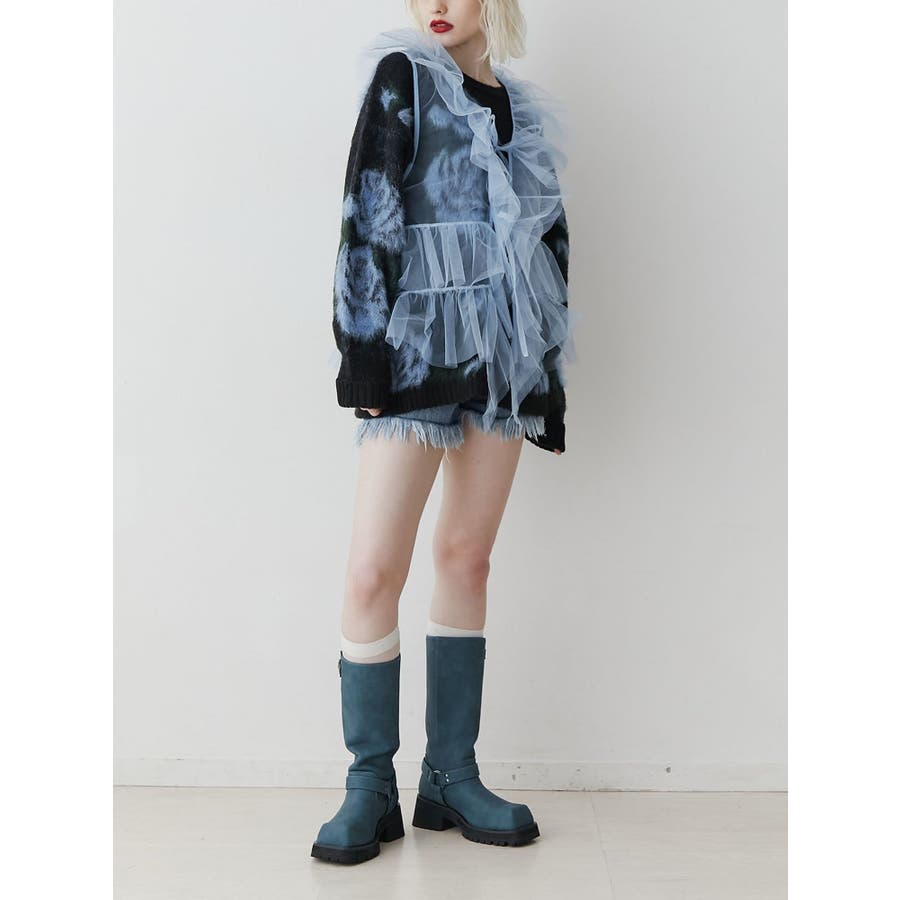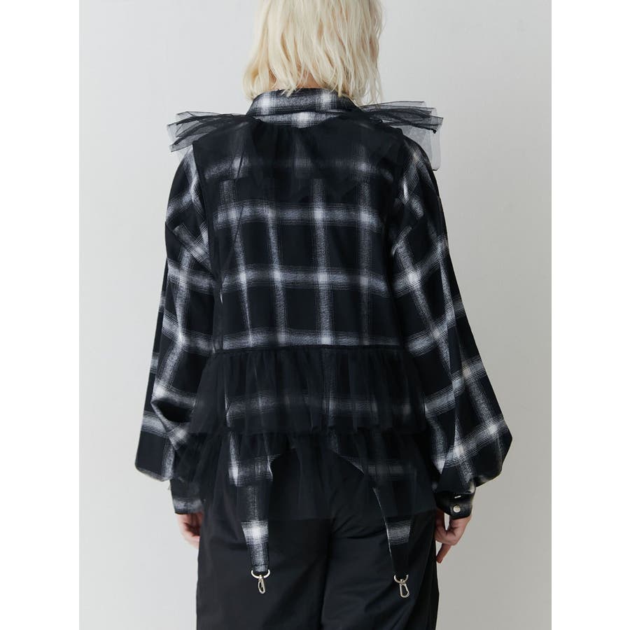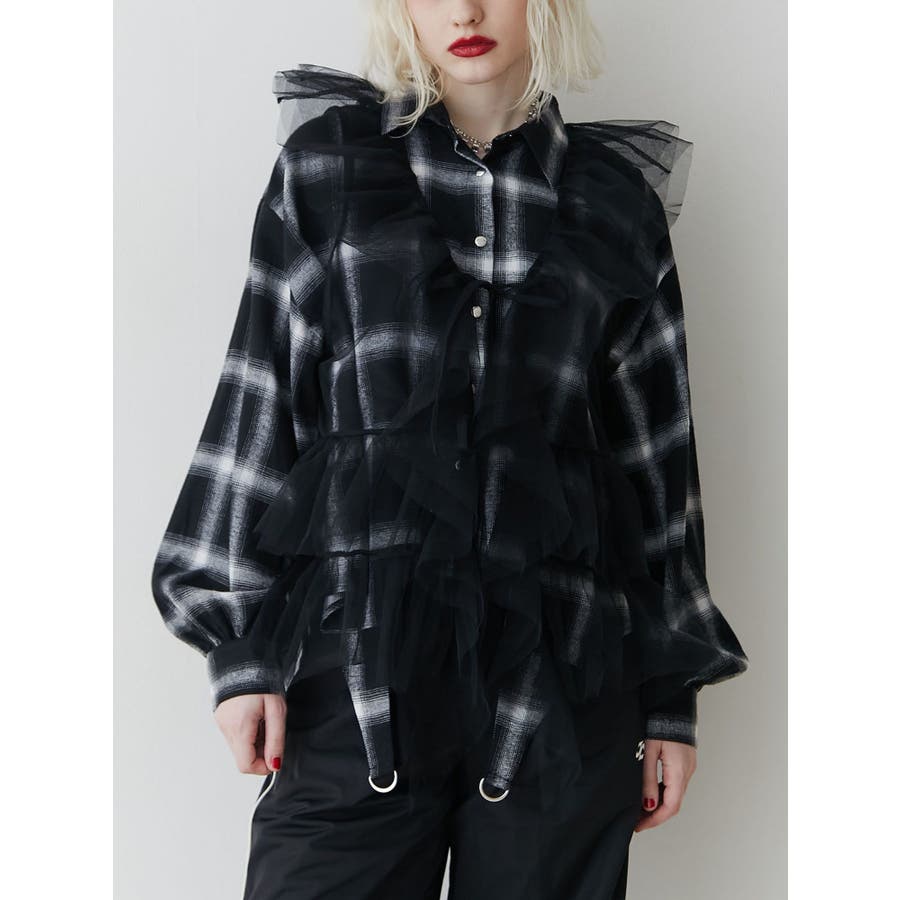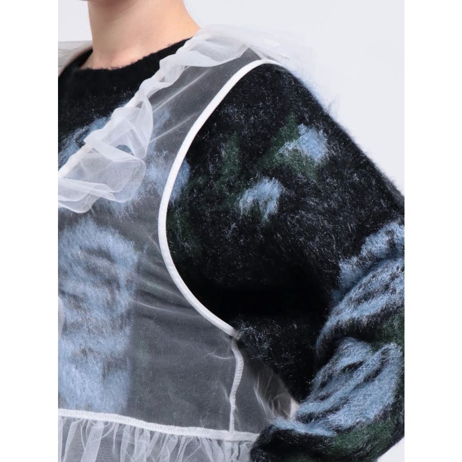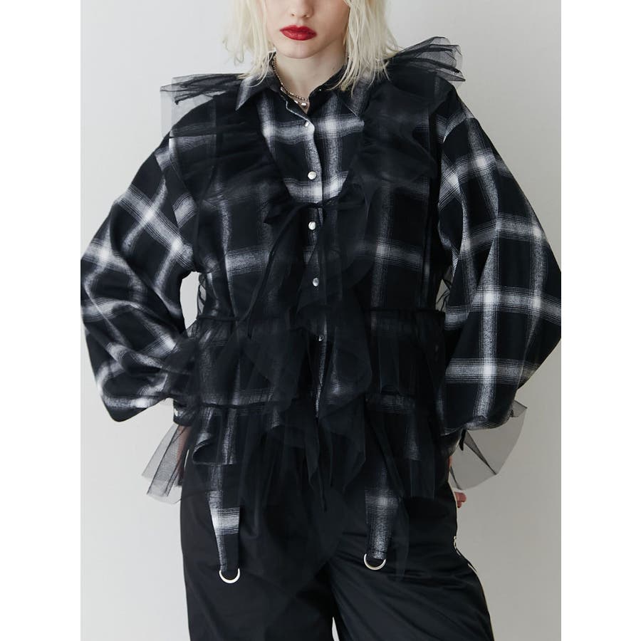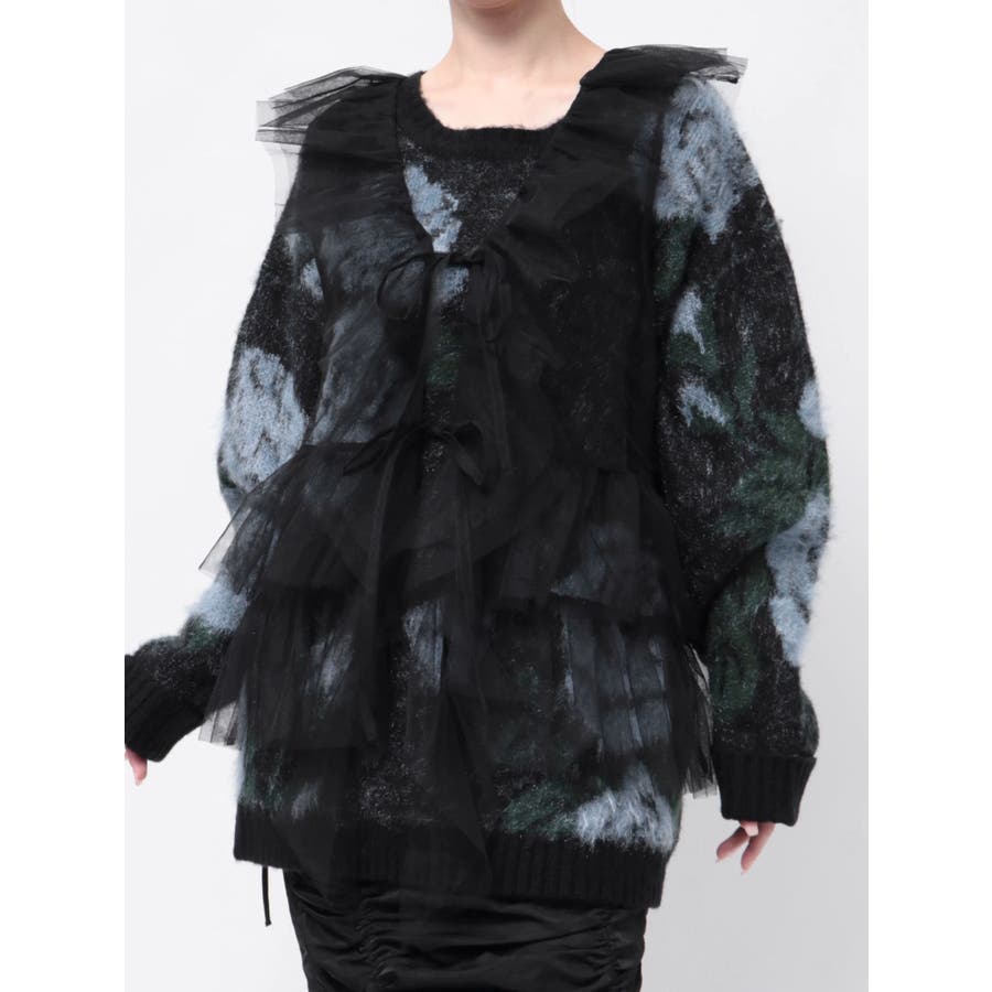 【ポイント】 ハリ感のあるチュール素材を使用し、ボリューム感のあるフォルムにこだわったベスト。 ドレープフリルとリボンでトレンド感がプラスされ、いつものコーディネートを華やかに見せてくれます。 【スタイリング】 ゆったりとした身幅で仕上げているので、秋冬のテーラードジャケットやルーズなサイジングのスウェット、 ニットプルオーバーなどにもレイヤード出来るのが他には無いおすすめポイント。 取り入れるだけでトレンドのバレエコアスタイルに!アウターや羽織の中からちらりとフリルを見せるのもおすすめで、どんなアイテムにも手軽に合わせられるオールシーズン大活躍の万能アイテムです! ※着丈、フリル襟が2cm長くなります。 ※着用画像はフラッシュの加減で実際の製品と色味等が異なる場合がございますので、生地のズームアップ画像をご確認ください。 ※ご利用の端末画面の設定により実際の商品と色味が異なる場合がございます。 ※正しいサイズはアイテムサイズ表をご確認ください。 ※商品のお取り扱いについては、脇についている洗濯ネーム類をご確認下さい。