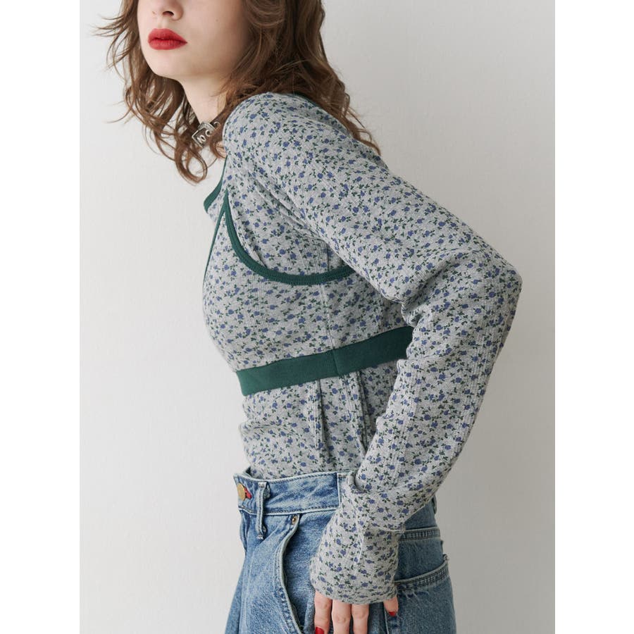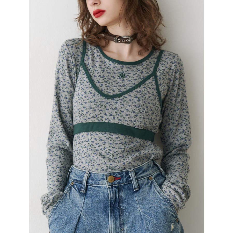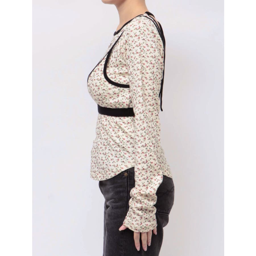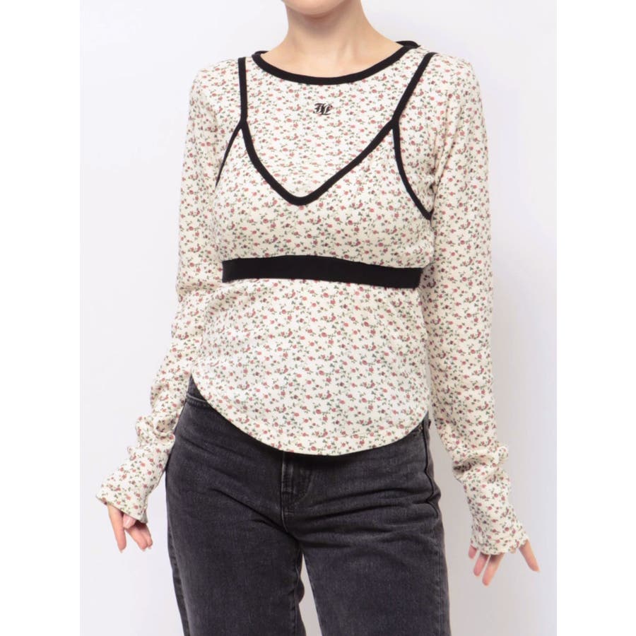 【Robert P.Miller(ロバート ピー・ミラー)】1937年に、Roberat P.Millerによって、アメリカのアーカンソー州でアンダーウェアブランドとして創業しました。Miller独自の針抜き仕様の「PANEL RIB」は、画期的な技術力により1940年代から60年代にかけて現在にも続くブランド地位を確立しました。着るたびに馴染んでくる着心地の良さで、アウターとしてもインナーとしても使い勝手の良いアイテムを目指し展開。【パネルリブ素材】パネルリブとは針抜きのリブを使用した生地になっており、フィット感・伸縮性に優れた素材でストレスフリーな着心地を提案。綿100%なので肌にも優しい素材です。【ポイント】ビスチェと長袖トップスのセットアイテム!!小花のオリジナルプリントがjouetieならではです。花のグラフィックは形のイメージから配色までこだわってつくりました。ボディのカラーに合うように、リブやロゴ刺繍がバイカラー配色になっており、更にjouetieらしく仕上がっています。後ろが大きく開いているデザインとビスチェレイヤードのデザインがトレンド感MAXです!【スタイリング】ビスチェとトップスを合わせて着るのが今季のムードにピッタリ!!レーススカートやバルーンのミニスカートなど甘めアイテムとのMIXがおすすめです。\別々でも着用できるので着回し力抜群です!/長袖トップス→バックオープン×リボンデザインで一枚でもオシャレに決まります。ビスチェ→夏はTシャツやノースリーブに合わせて、冬はロンTやニットに合わせてオールシーズンで着ていただきます。※着用画像はフラッシュの加減で実際の製品と色味等が異なる場合がございますので、生地のズームアップ画像をご確認ください。※ご利用の端末画面の設定により実際の商品と色味が異なる場合がございます。※正しいサイズはアイテムサイズ表をご確認ください。※商品のお取り扱いについては、脇についている洗濯ネーム類をご確認下さい。【商品特徴】透け感:なし伸縮性:あり生地の厚さ:普通サイズ感:細身裏地:なしポケット:なし