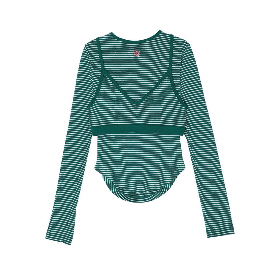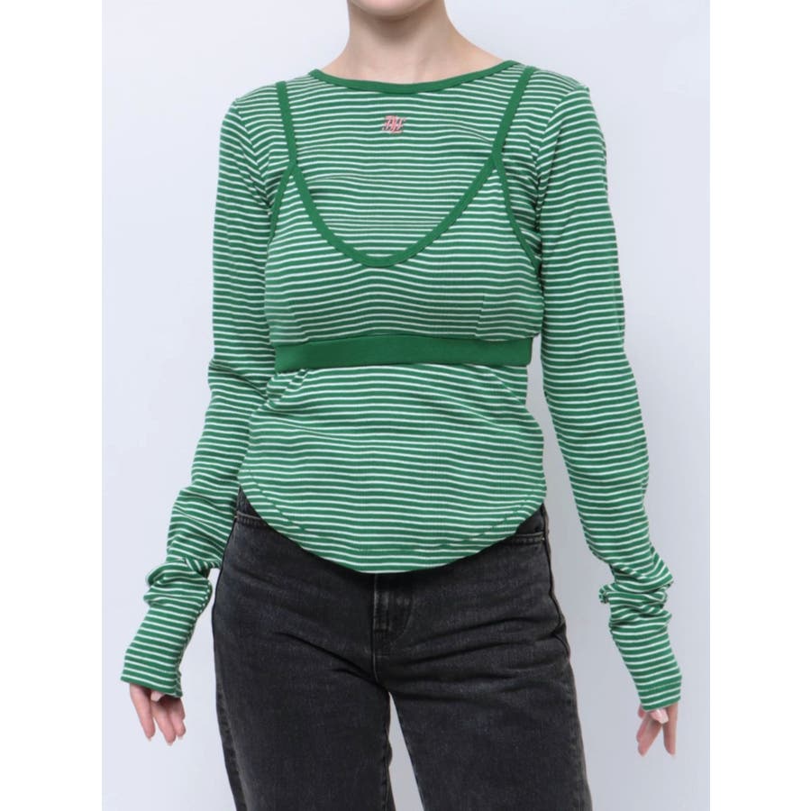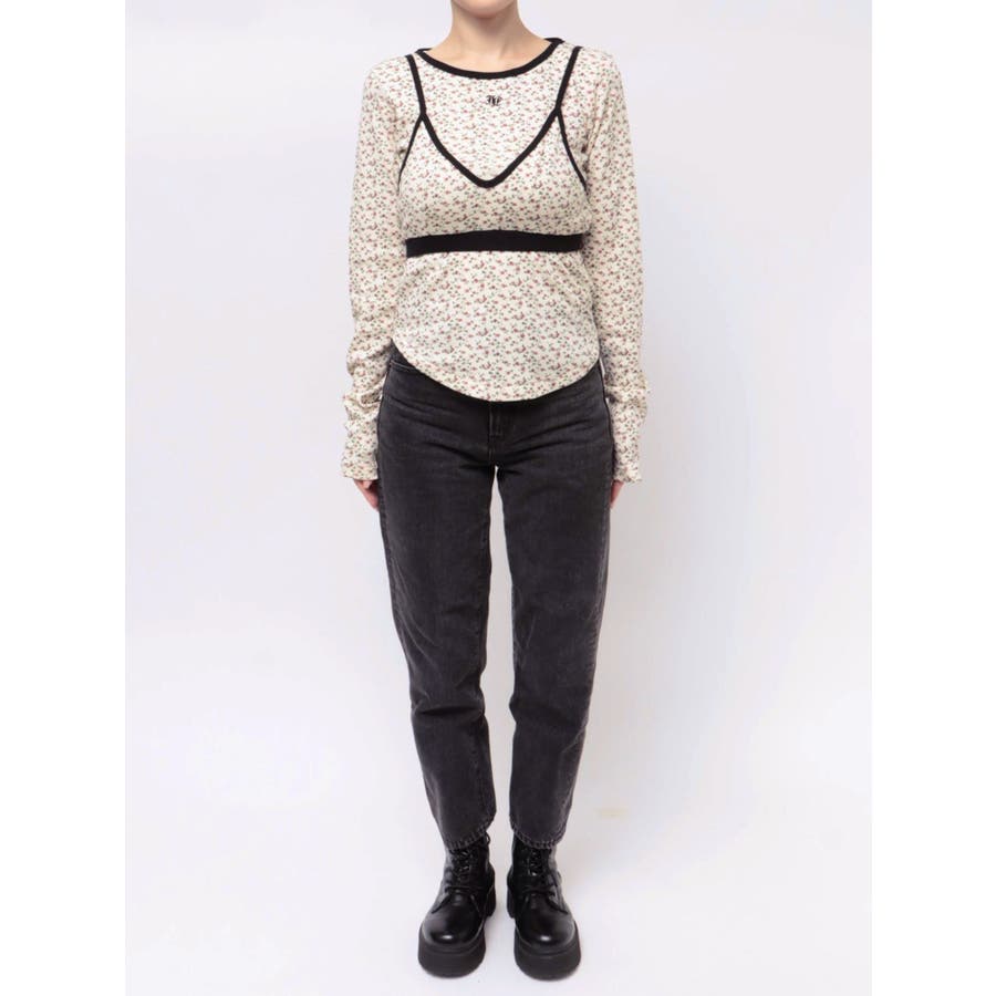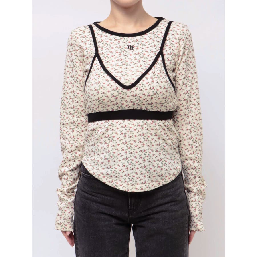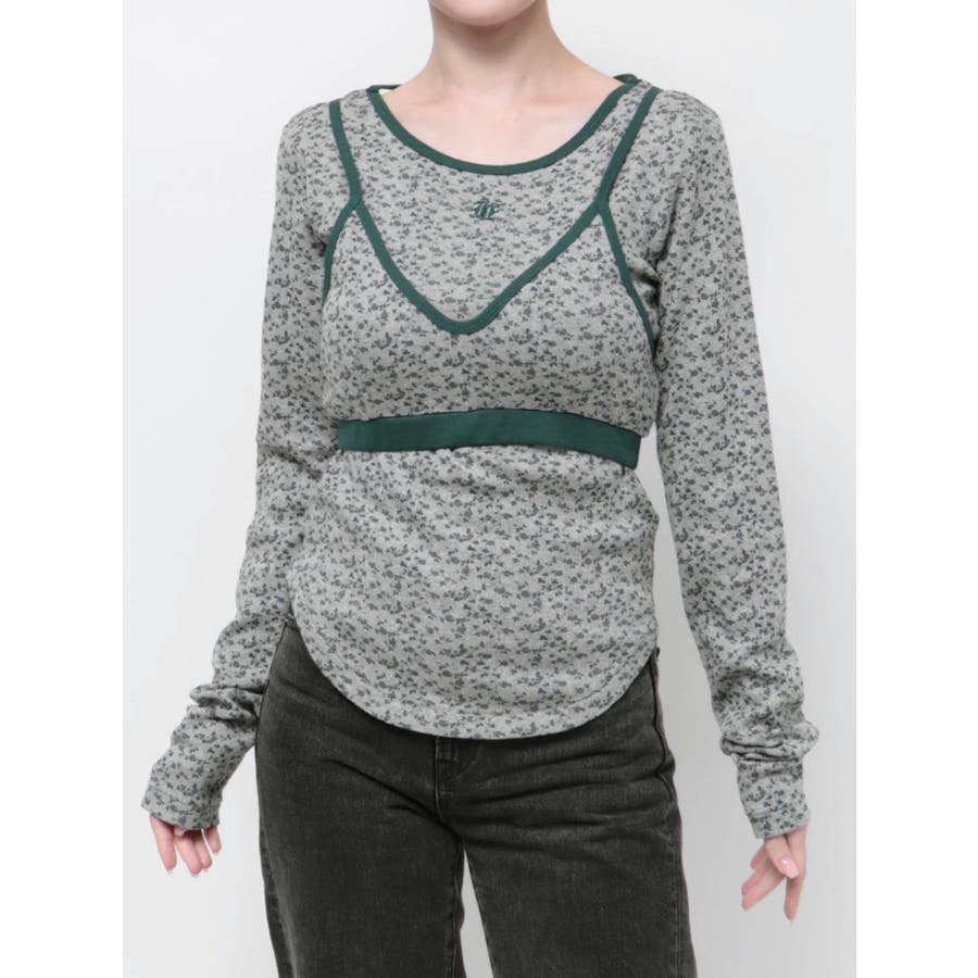 【Robert P.Miller(ロバート ピー・ミラー)】1937年に、Roberat P.Millerによって、アメリカのアーカンソー州でアンダーウェアブランドとして創業しました。Miller独自の針抜き仕様の「PANEL RIB」は、画期的な技術力により1940年代から60年代にかけて現在にも続くブランド地位を確立しました。着るたびに馴染んでくる着心地の良さで、アウターとしてもインナーとしても使い勝手の良いアイテムを目指し展開。【パネルリブ素材】パネルリブとは針抜きのリブを使用した生地になっており、フィット感・伸縮性に優れた素材でストレスフリーな着心地を提案。綿100%なので肌にも優しい素材です。【ポイント】ビスチェと長袖トップスのセットアイテム!!小花のオリジナルプリントがjouetieならではです。花のグラフィックは形のイメージから配色までこだわってつくりました。ボディのカラーに合うように、リブやロゴ刺繍がバイカラー配色になっており、更にjouetieらしく仕上がっています。後ろが大きく開いているデザインとビスチェレイヤードのデザインがトレンド感MAXです!【スタイリング】ビスチェとトップスを合わせて着るのが今季のムードにピッタリ!!レーススカートやバルーンのミニスカートなど甘めアイテムとのMIXがおすすめです。\別々でも着用できるので着回し力抜群です!/長袖トップス→バックオープン×リボンデザインで一枚でもオシャレに決まります。ビスチェ→夏はTシャツやノースリーブに合わせて、冬はロンTやニットに合わせてオールシーズンで着ていただきます。※着用画像はフラッシュの加減で実際の製品と色味等が異なる場合がございますので、生地のズームアップ画像をご確認ください。※ご利用の端末画面の設定により実際の商品と色味が異なる場合がございます。※正しいサイズはアイテムサイズ表をご確認ください。※商品のお取り扱いについては、脇についている洗濯ネーム類をご確認下さい。【商品特徴】透け感:なし伸縮性:あり生地の厚さ:普通サイズ感:細身裏地:なしポケット:なし