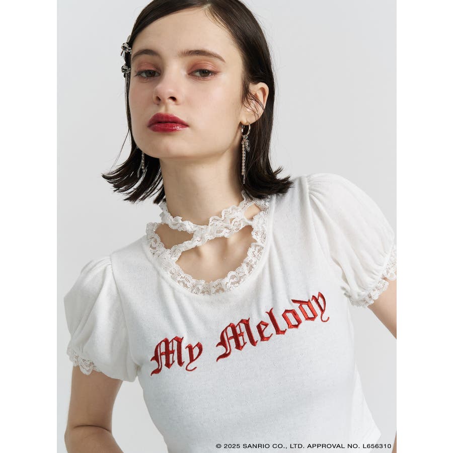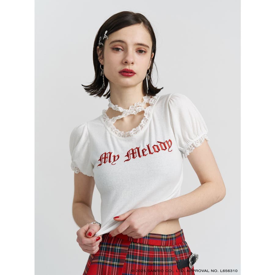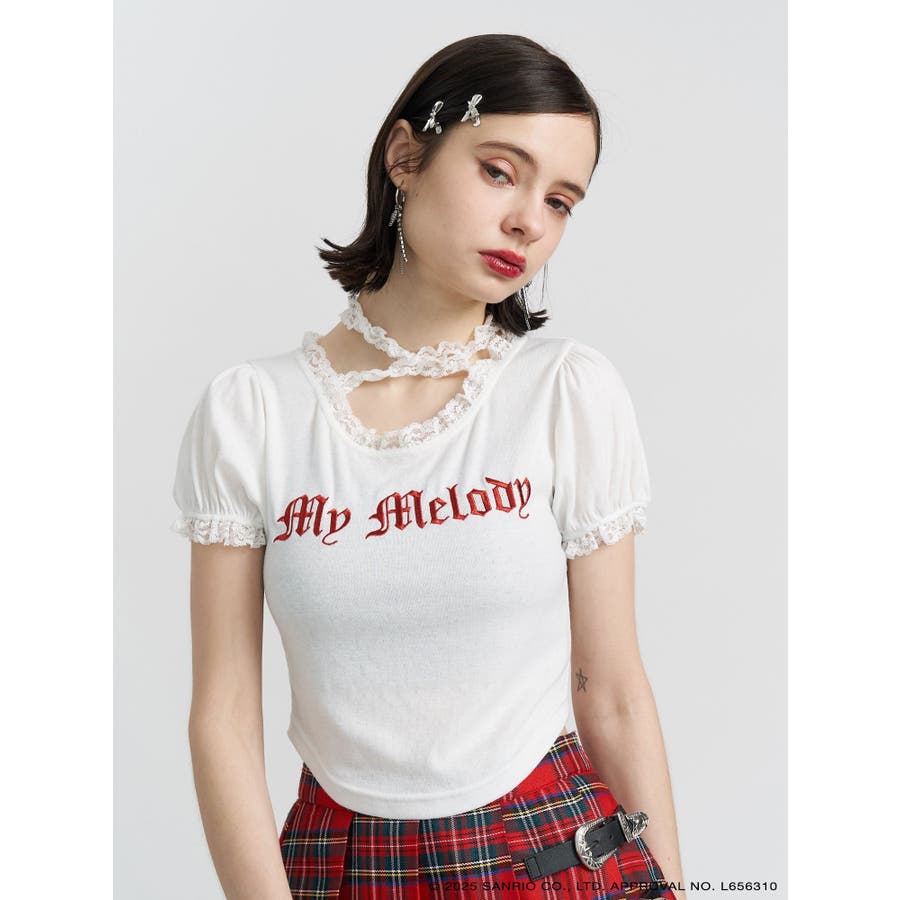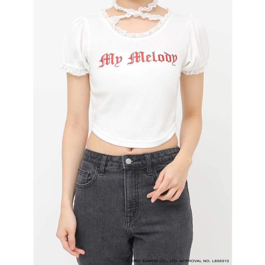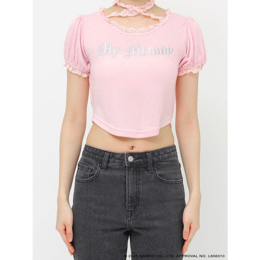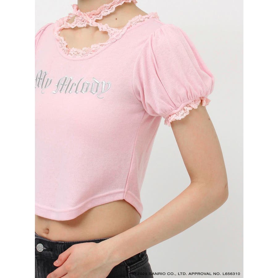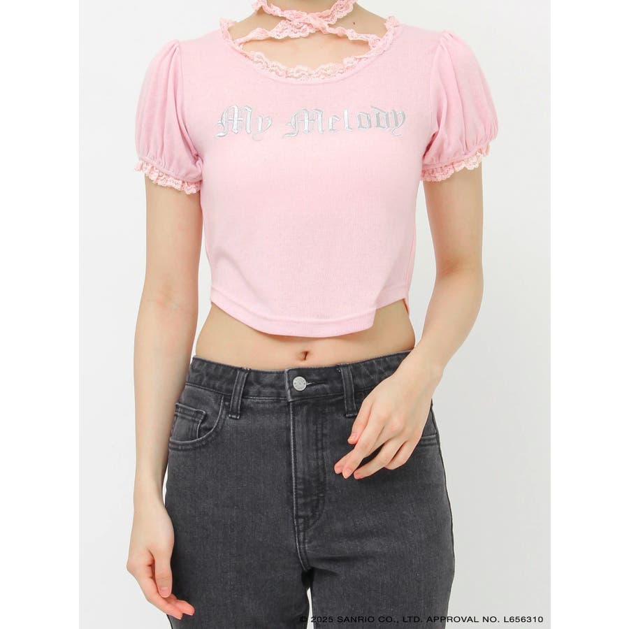 【メロクロコラボ】My Melodyフリルチョーカーリボントップス