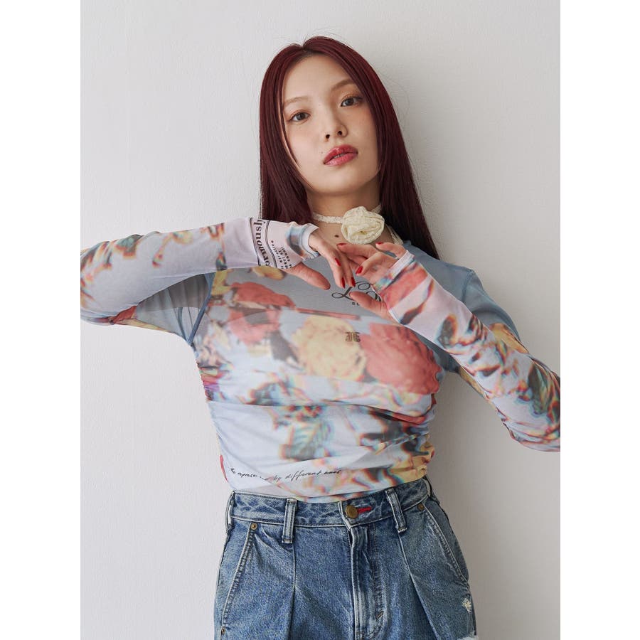 フラワーパターンシアートップス