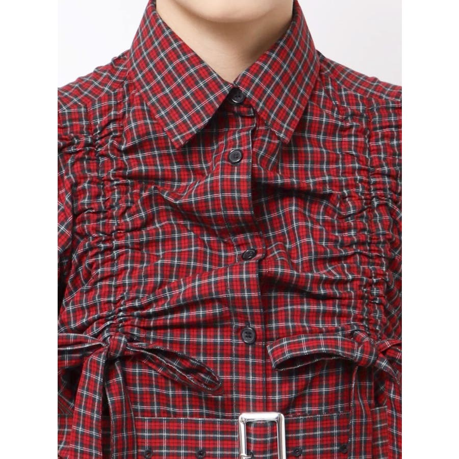 【ポイント】 トレンドのリボンギャザーデザインがかわいいシャツワンピース。 裾のフリルまで抜かりないデザインです! ベルトがSETになっているのでウエストマークできるのも嬉しいポイントです。 ブルー、ピンクはストライプ柄、レッドはチェック柄でカラーごとに違った雰囲気で着ていただけます。 明るめのカラーもシャツ生地なので甘くなりすぎず、大人っぽく着ていただけます。 【スタイリング】 こだわりの詰まったデザインで、これ1枚でコーディネートが完成します! 前開きになっているので羽織りとしても使えます! デニムジャケットと合わせると春らしいスタイリングになるのでおすすめです! ※付属のベルトに芯が入ります。 ※肩幅が2cm小さくなります。 ※詳細画像が正規の商品となります。 ※着用画像はフラッシュの加減で実際の製品と色味等が異なる場合がございますので、生地のズームアップ画像をご確認ください。 ※ご利用の端末画面の設定により実際の商品と色味が異なる場合がございます。 ※正しいサイズはアイテムサイズ表をご確認ください。 ※商品のお取り扱いについては、脇についている洗濯ネーム類をご確認下さい。 【商品特徴】 透け感:なし 伸縮性:なし 生地の厚さ:普通 サイズ感:普通 裏地:なし ポケット:なし ファスナー:なし