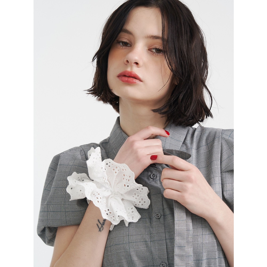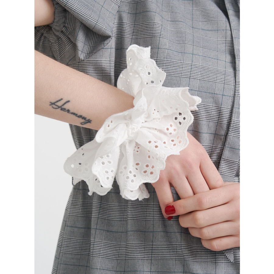 取り入れるだけでアップスタイルを華やかにアップデートしてくれるトレンドのBIGシュシュ。 パンチングレースを使用した立体感のあるデザインで、腕やBAGにつけてもかわいいです! ※着用画像はフラッシュの加減で実際の製品と色味等が異なる場合がございます。詳細画像をご参照ください。 ※ご利用の端末画面の設定により実際の商品と色味が異なる場合がございます。 ※正しいサイズはアイテムサイズ表をご確認ください。