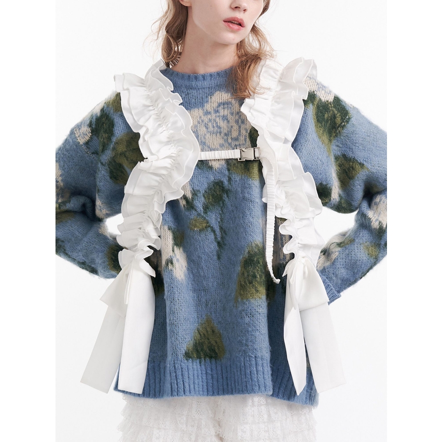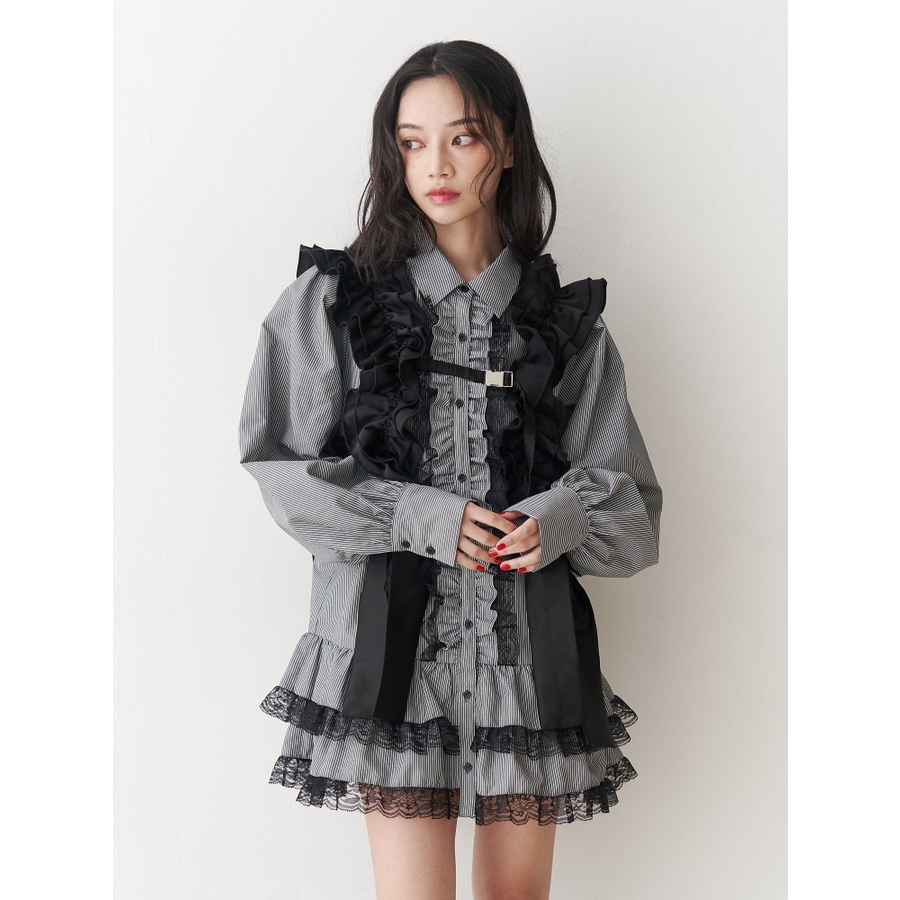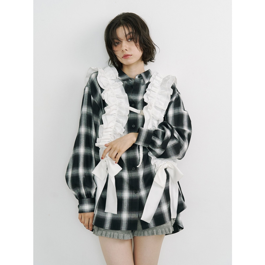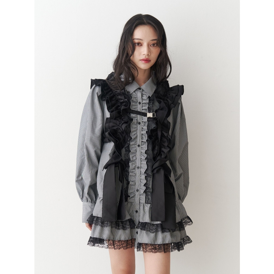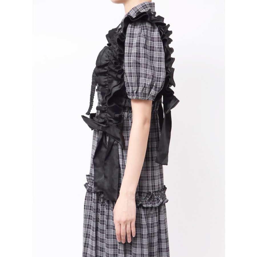 上品な光沢感のあるサテン素材を使用したフリルとリボンがロマンティックなハーネス。 かっちりとしたジャケットやワンピース、カジュアルなカットソーなどにレイヤードするだけでバレエコアな雰囲気を演出し、 華やかにトレンド感をプラスしてくれます! ベルトで身幅を調節できるので、レイヤードするアイテムを選ばないのも嬉しいポイント。 オールシーズンご着用いただけるアイテムです。 ※後ろのベルト丈が8cm短くなります。 ※リボンが垂れないようにステッチが入ります。※詳細画像が正しい仕様となります。 ※着用画像はフラッシュの加減で実際の製品と色味等が異なる場合がございますので、生地のズームアップ画像をご確認ください。 ※正しいサイズはアイテムサイズ表をご確認ください。 ※ご利用の端末画面の設定により実際の商品と色味が異なる場合がございます。 ※商品のお取り扱いについては、脇についている洗濯ネーム類をご確認下さい。【商品特徴】透け感:なし伸縮性:なし生地の厚さ:普通サイズ感:普通裏地:なしポケット:なし