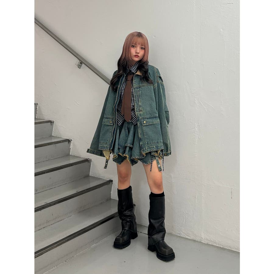 【ポイント】jouetie(ジュエティ)大人気のアシメヘムスカートがデニム素材で登場!ハードな加工感とハトメディテール×ガーリーなボリュームフレアシルエットで他には無いエッジの効いた印象に。【スタイリング】今シーズンは総レースやフリルなどガーリーなディテールのトップス合わせがトレンド感MAX!丈の長いアイテムの裾から少し覗かせるスタイリングもおすすめです。足元は重ためブーツがjouetieの鉄板!ハイソックスやレースタイツなどを合わせて今っぽくアレンジ♪【セットアップ対応アイテム】0825402002 ルーズワークジャケット※着用画像はフラッシュの加減で実際の製品と色味等が異なる場合がございますので、生地のズームアップ画像をご確認ください。※ご利用の端末画面の設定により実際の商品と色味が異なる場合がございます。※正しいサイズはアイテムサイズ表をご確認ください。※商品のお取り扱いについては、脇についている洗濯ネーム類をご確認下さい。【商品特徴】透け感:なし伸縮性:なし生地の厚さ:普通サイズ感:ゆったり裏地:ありポケット:なし