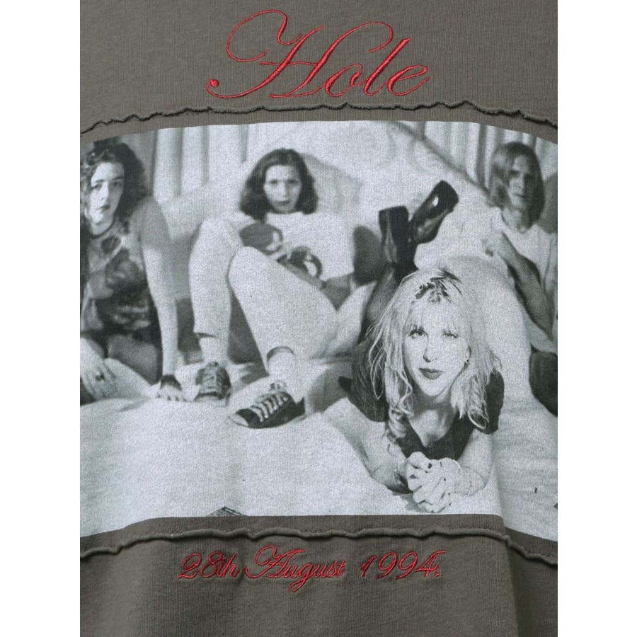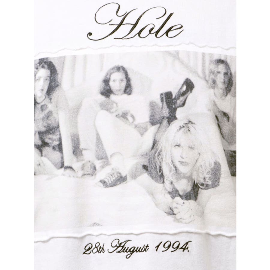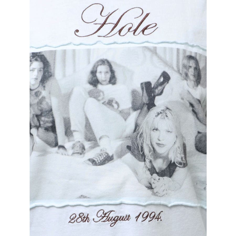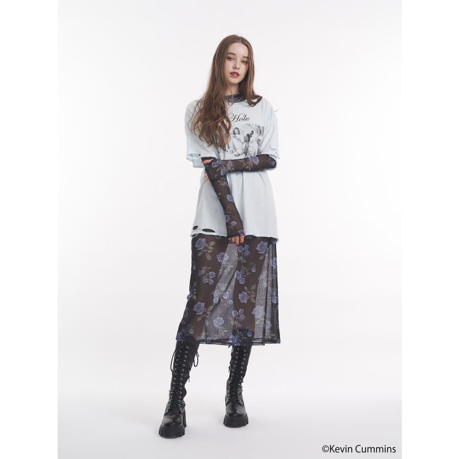 数多くのミュージシャンを撮りつづけた、音楽写真家Kevin Cummins(ケヴィン・カミンズ)とのコラボレーションアイテムが登場。1953年、マンチェスター生まれ。当時急成長をとげたマンチェスターのパンク・シーンに深くかかわりを持った伝説のフォトグラファー。""Joy Division""や""New Order""といった伝説のロック・アーティストのそのままの姿をリアルに撮り続け、その頃からドキュメンタリー・フォトグラファーとしての評価を得る。その後、UKのロック・ウィークリー紙『NME』にて10年間チーフ・フォトグラファーを務めた。【ポイント】フロントにはアメリカのロックグループ、HOLEをフォトプリント。叩き付けと刺繍ロゴで仕上げ、バックには26AWのjouetieのシーズンコンセプトの一部をロゴプリントで落とし込みました。BIGシルエットT×ダメージ加工でスタイリングが決まるjouetie(ジュエティ)定番のBIGTシャツです。ハイネックインナーやシアーアイテムとのレイヤードも映えます!【スタイリング】ルーズシルエットに仕上げたBIGTシャツは、ショートボトムを合わせたチュニック風スタイルが今っぽい!裾のダメージが抜け感と軽さを出してくれるのでバランスが良く、幅広いコーディネートをお楽しみいただけます。レースアイテムとの甘辛MIXなスタイリングが特におすすめです。※着用画像はフラッシュの加減で実際の製品と色味等が異なる場合がございますので、生地のズームアップ画像をご確認ください。※ご利用の端末画面の設定により実際の商品と色味が異なる場合がございます。※正しいサイズはアイテムサイズ表をご確認ください。※商品のお取り扱いについては、脇についている洗濯ネーム類をご確認下さい。【商品特徴】透け感:なし伸縮性:ややあり生地の厚さ:薄手サイズ感:ゆったり裏地:なしポケット:なし