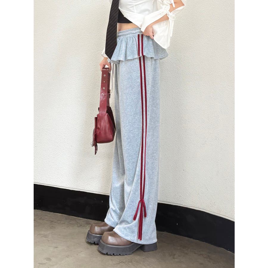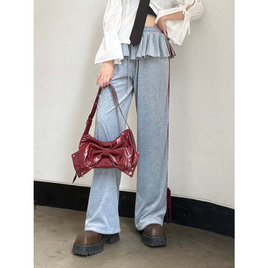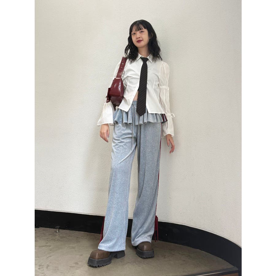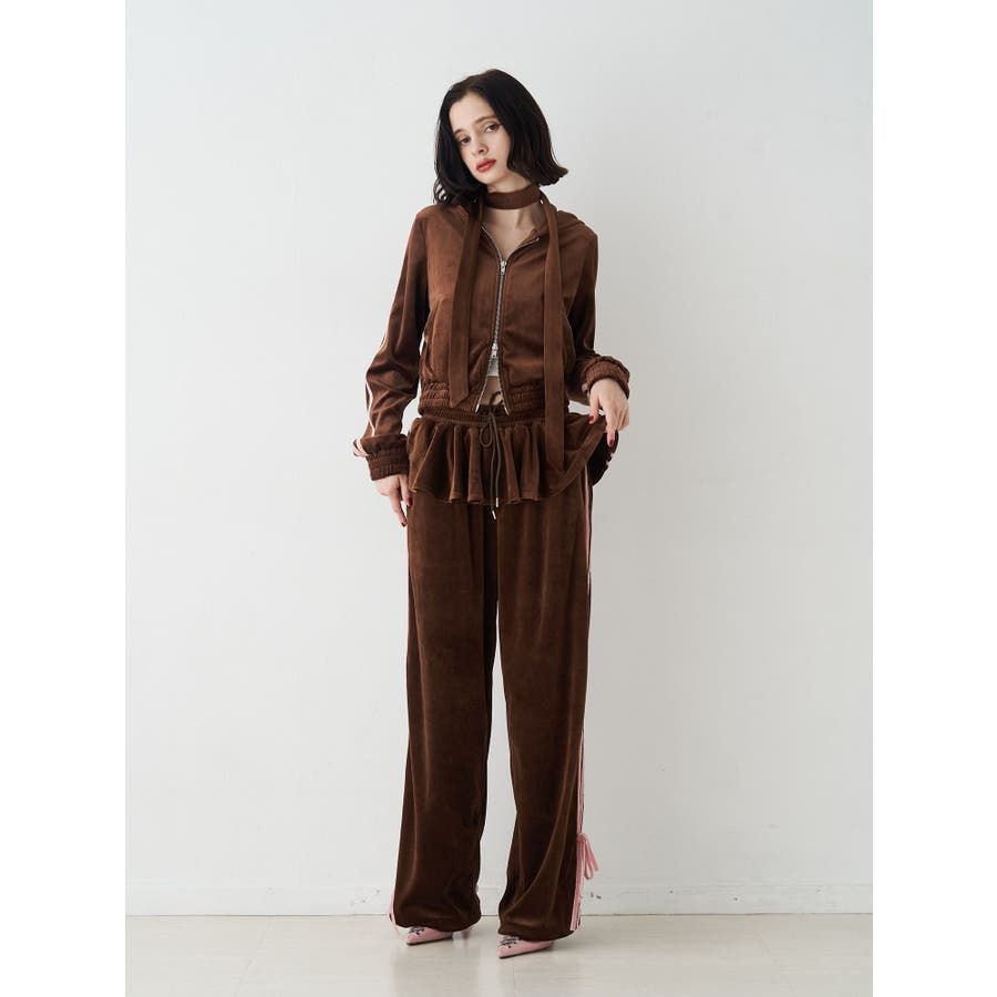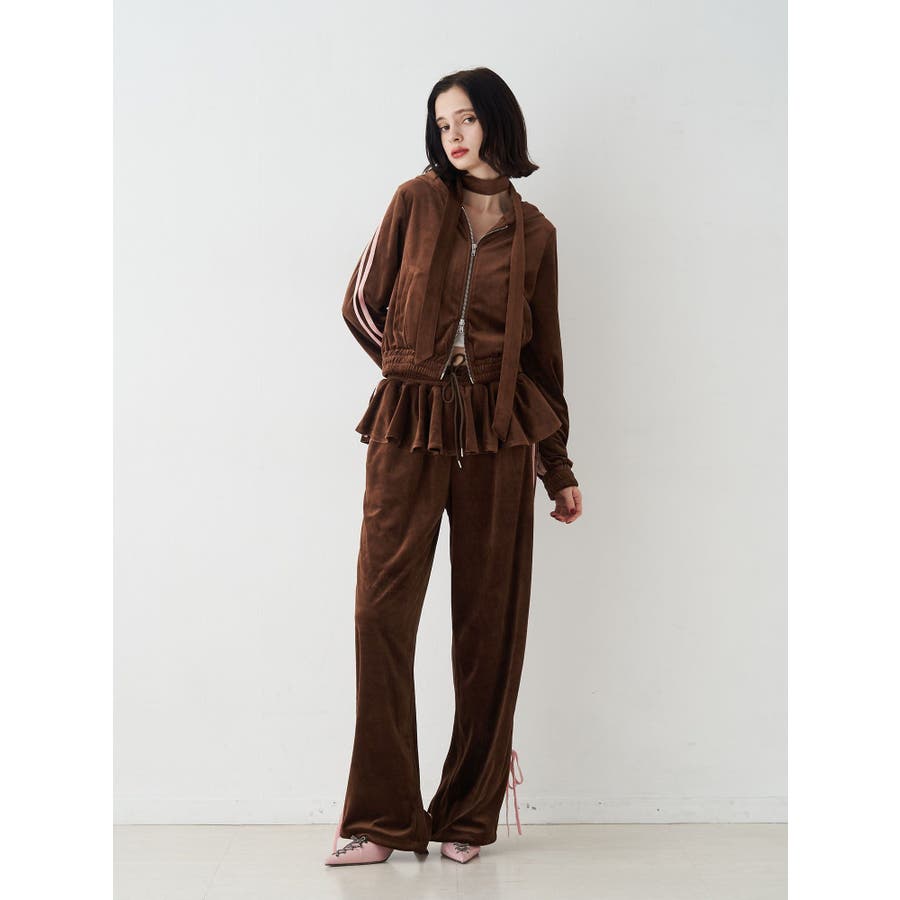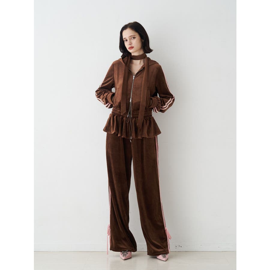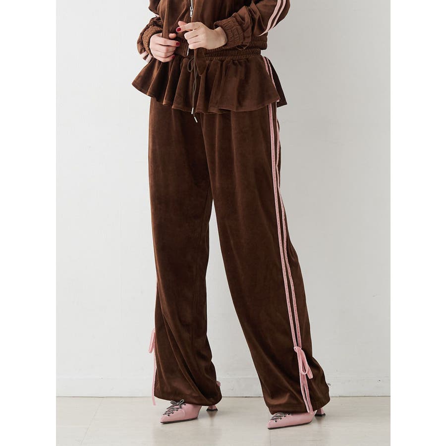【ポイント】 秋ムードを高めてくれるベロア素材のアイテムからパンツも登場!! スカートがレイヤードされているデザインで1枚でかわいく決まるのも嬉しいポイント! リボンデザインが程良い甘さをプラスしてくれます。 裾がドローコードで絞れるので、お好みのシルエットに調節して着用していただけます! 【スタイリング】 同素材のベロアコンパクトラインZIPフーディとセットで着るのがおすすめ! シャツやブラウスなどきれいめな大人っぽいアイテムと合わせるスタイルも◎ パンプスを合わせたカジュアル過ぎないスタイリングが今年っぽいです! 【ベロアアイテムシリーズ】 0825529001 ベロアコンパクトラインZIPフーディ 0825427020 ベロアチョーカートップス 0825508002 ベロアラインティアードミニスカート ※着用画像はフラッシュの加減で実際の製品と色味等が異なる場合がございますので、生地のズームアップ画像をご確認ください。 ※ご利用の端末画面の設定により実際の商品と色味が異なる場合がございます。 ※正しいサイズはアイテムサイズ表をご確認ください。 ※商品のお取り扱いについては、脇についている洗濯ネーム類をご確認下さい。【商品特徴】透け感:なし伸縮性:あり生地の厚さ:普通サイズ感:普通裏地:なしポケット:あり(横)