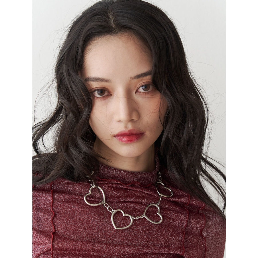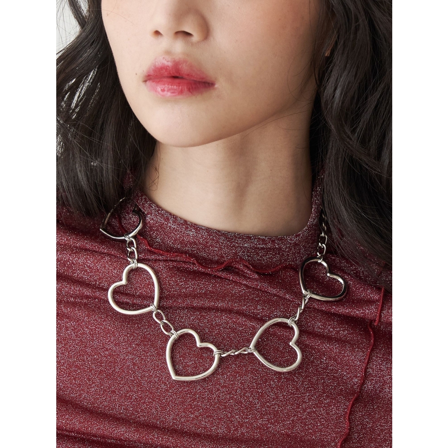 大胆なハートモチーフがかわいいネックレス。 シンプルなコーディネートに合わせるだけで存在感抜群です! ※着用画像はフラッシュの加減で実際の製品と色味等が異なる場合がございます。詳細画像をご参照ください。 ※ご利用の端末画面の設定により実際の商品と色味が異なる場合がございます。 ※正しいサイズはアイテムサイズ表をご確認ください。