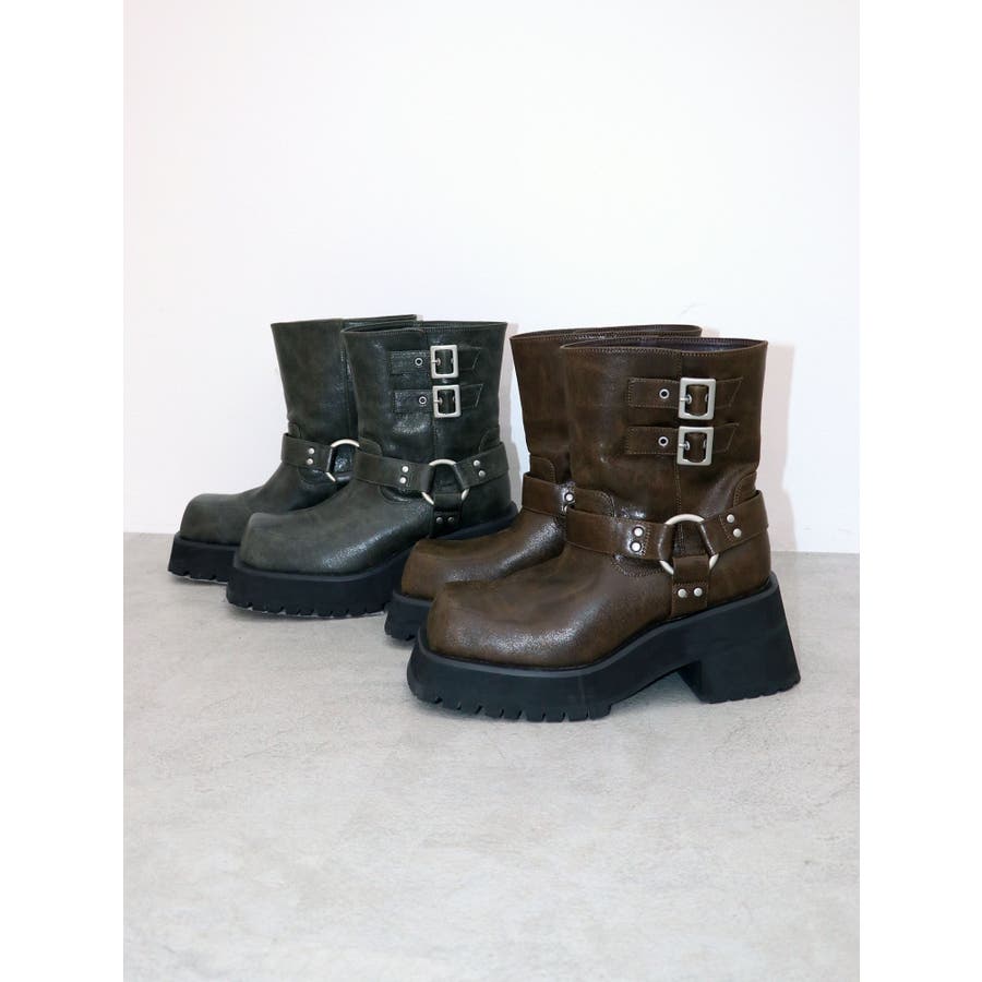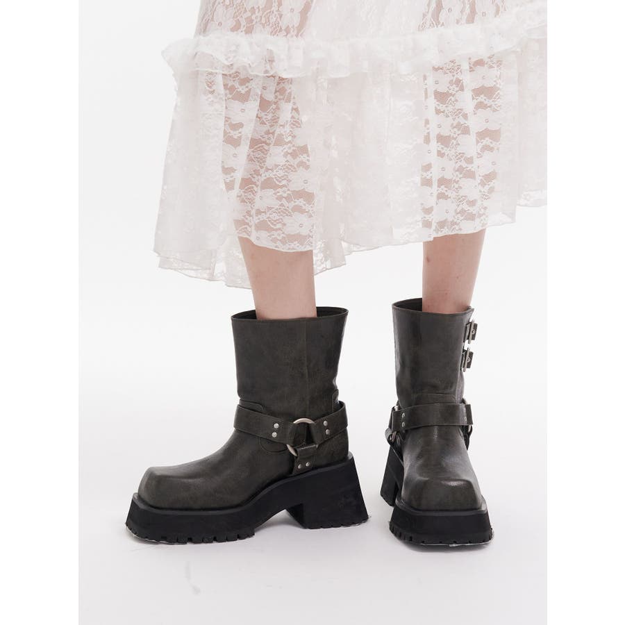 プラットフォームショートエンジニアブーツ