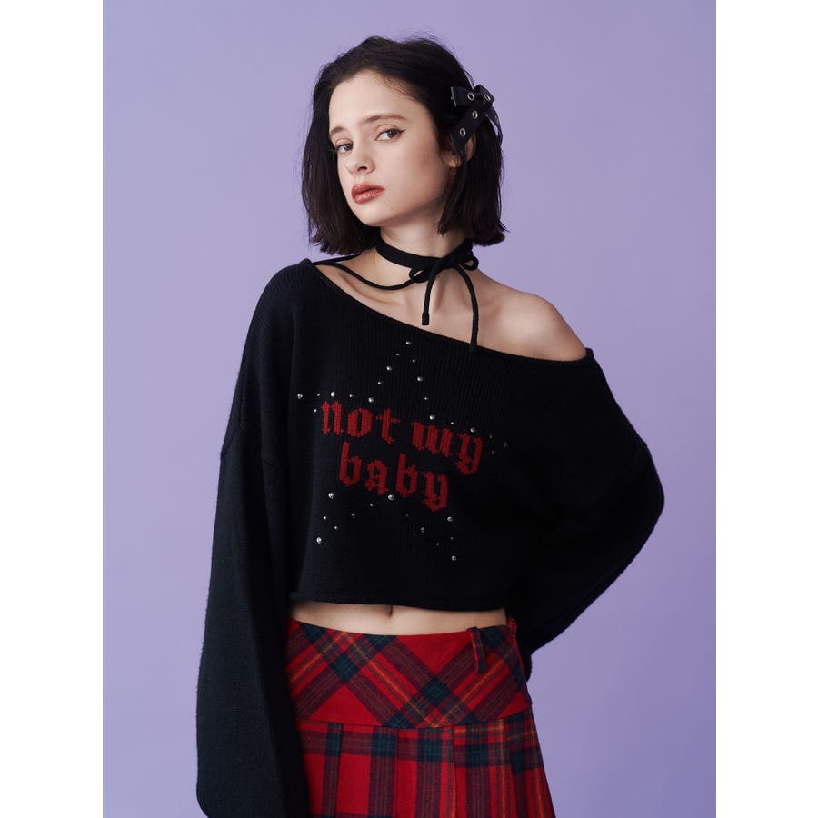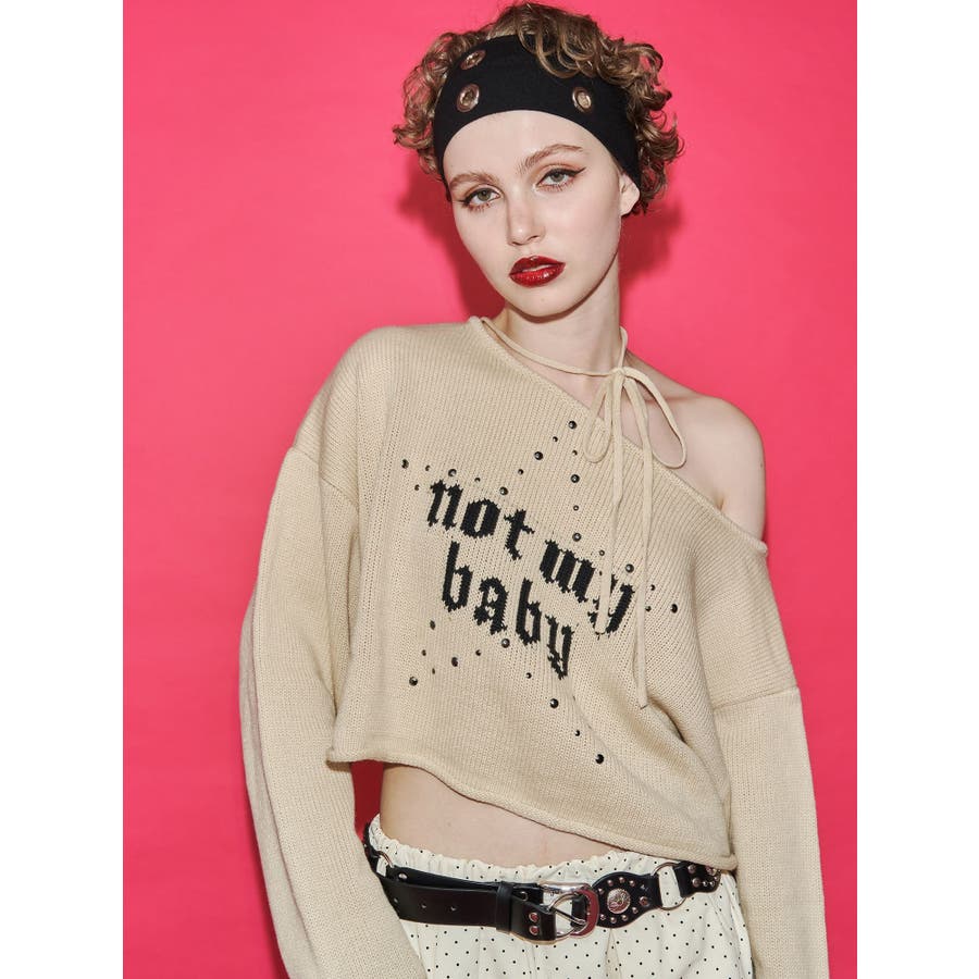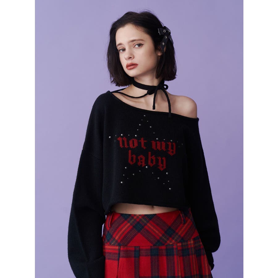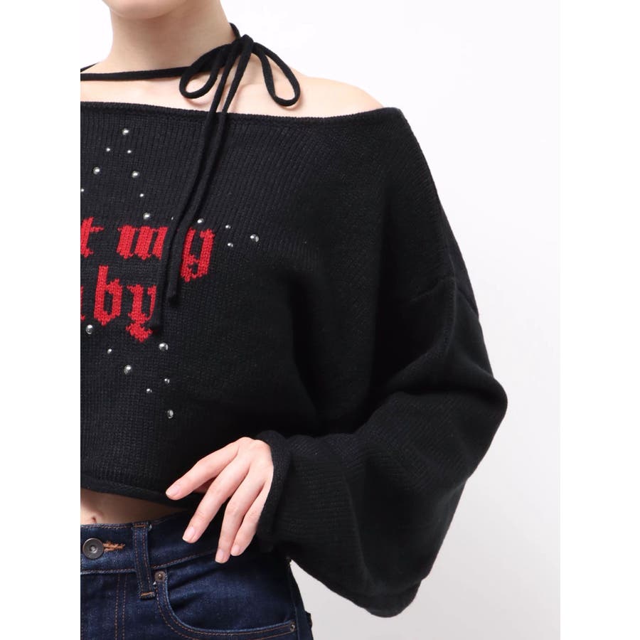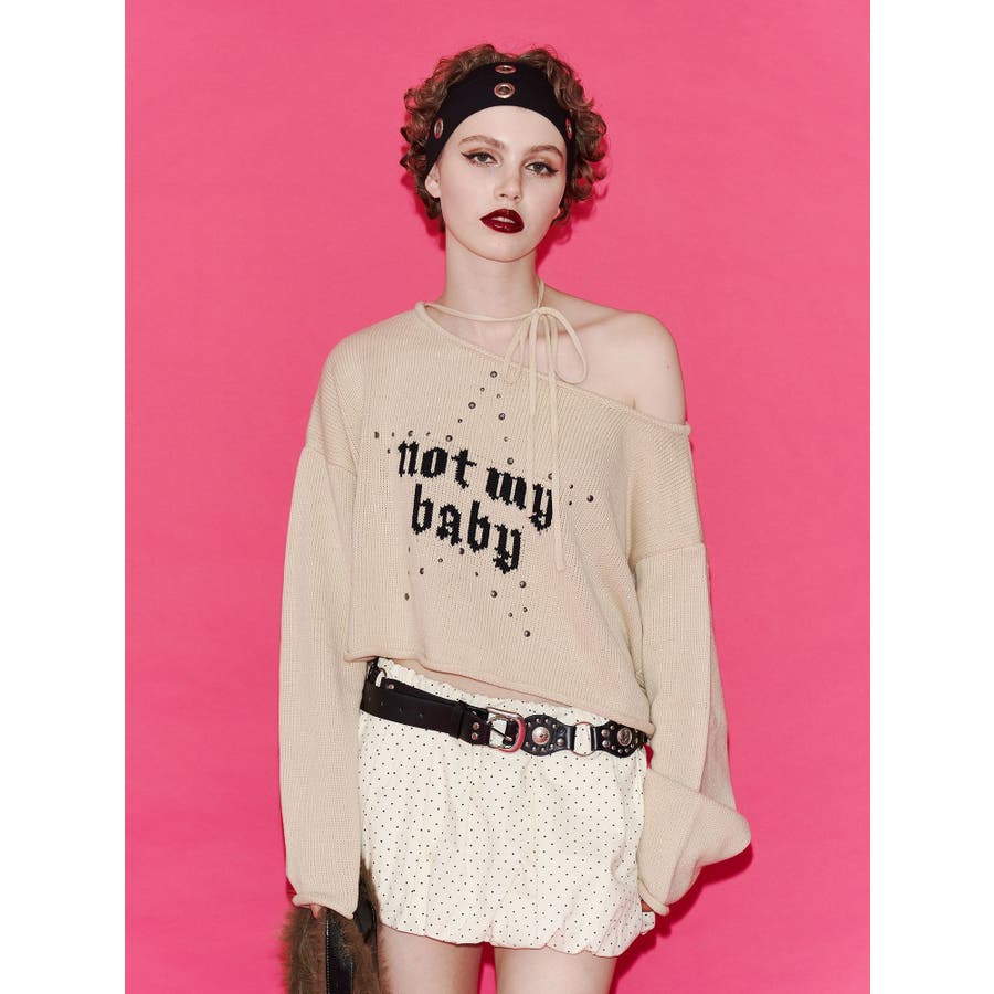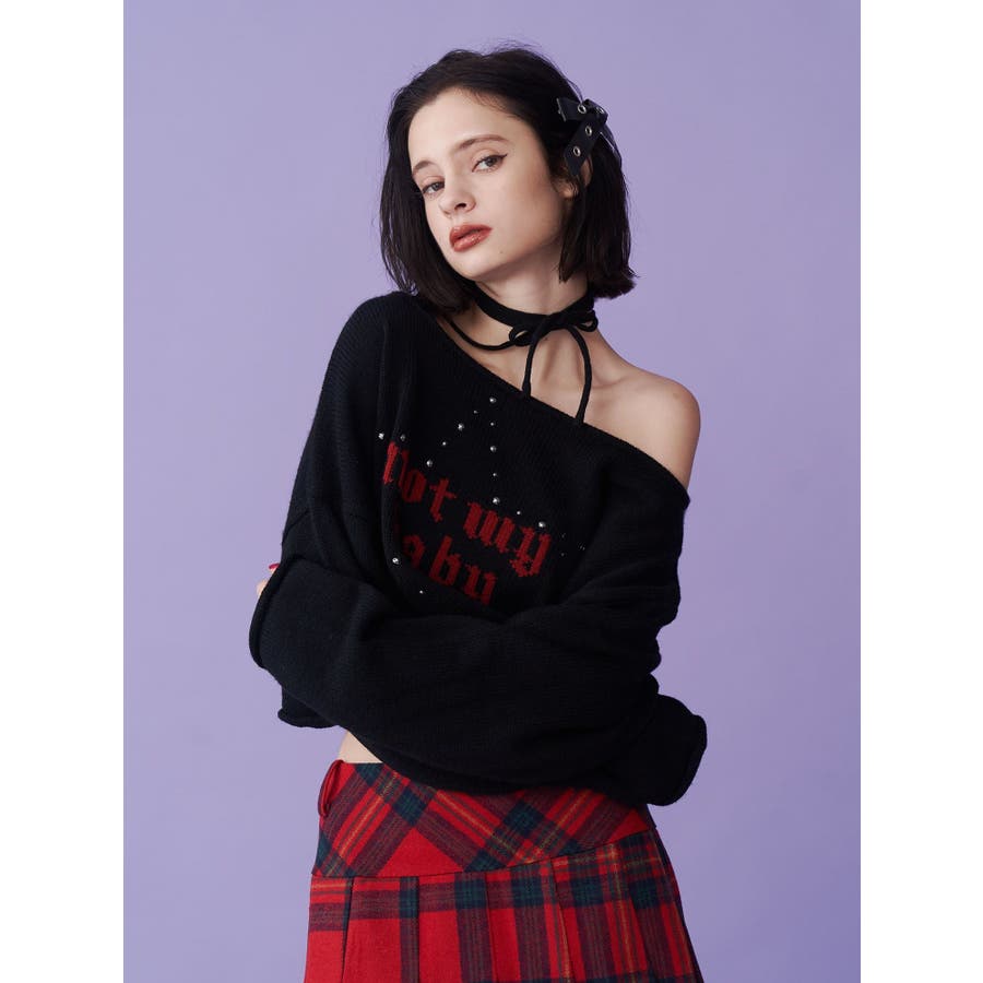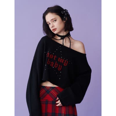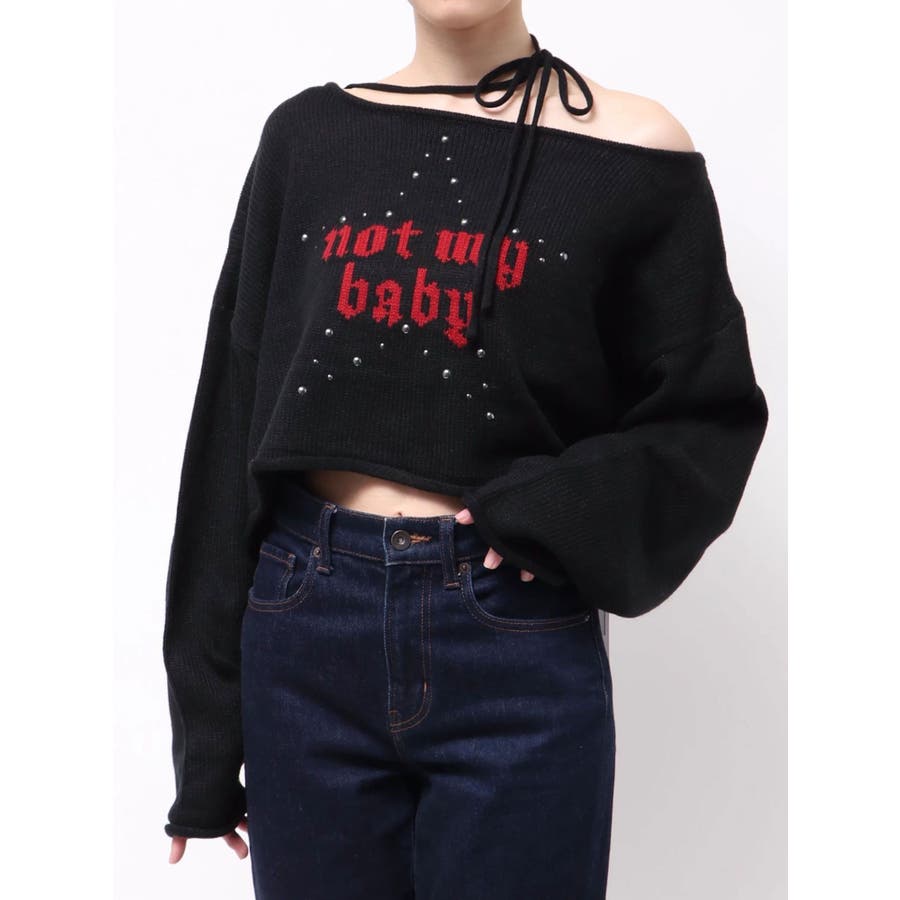 ワンショルスタッズショートニット