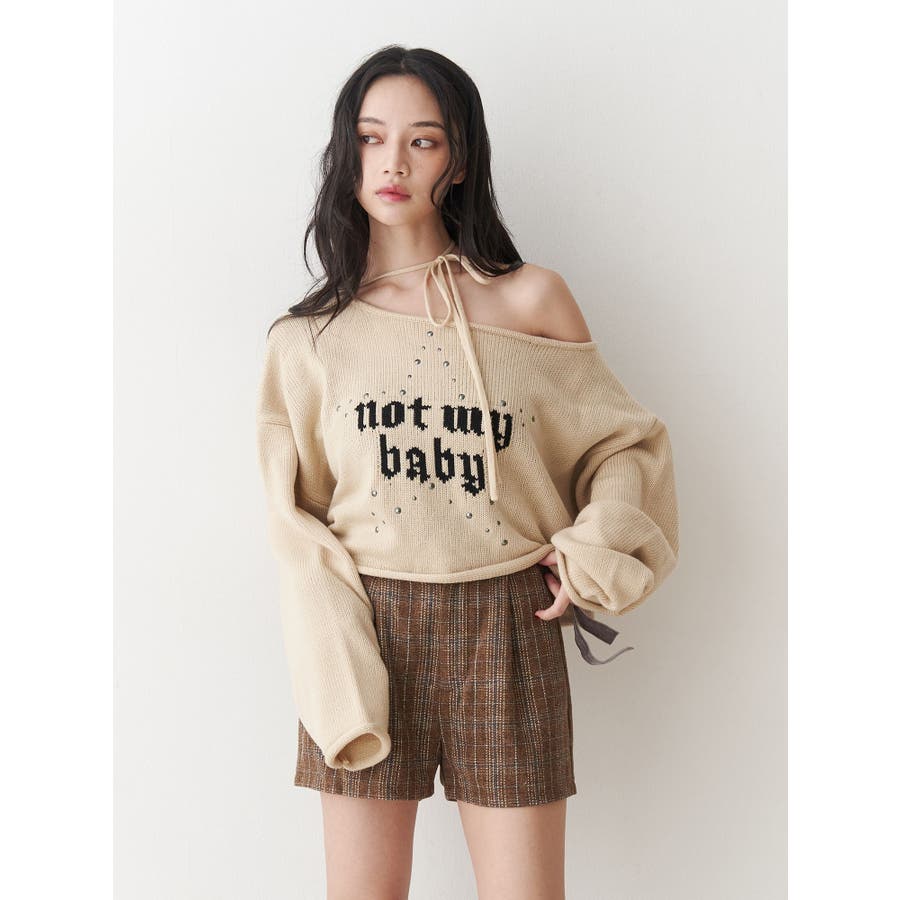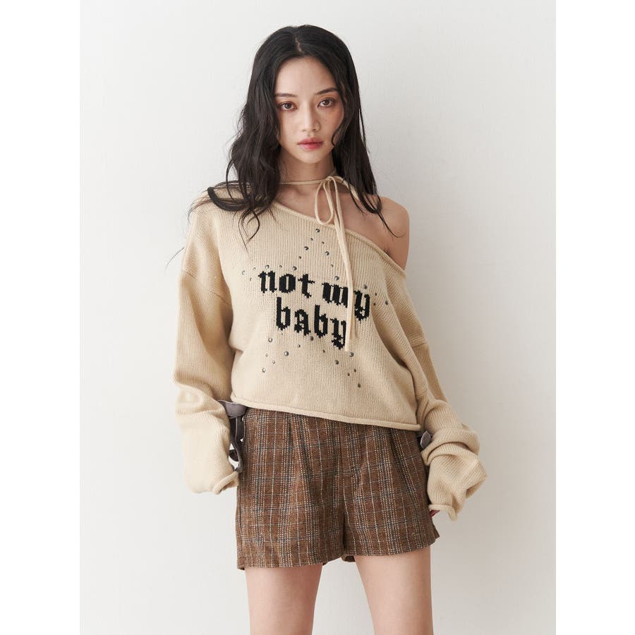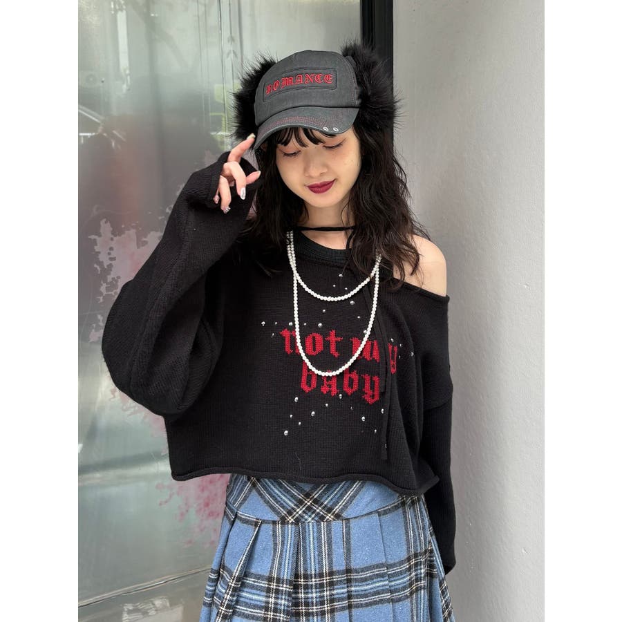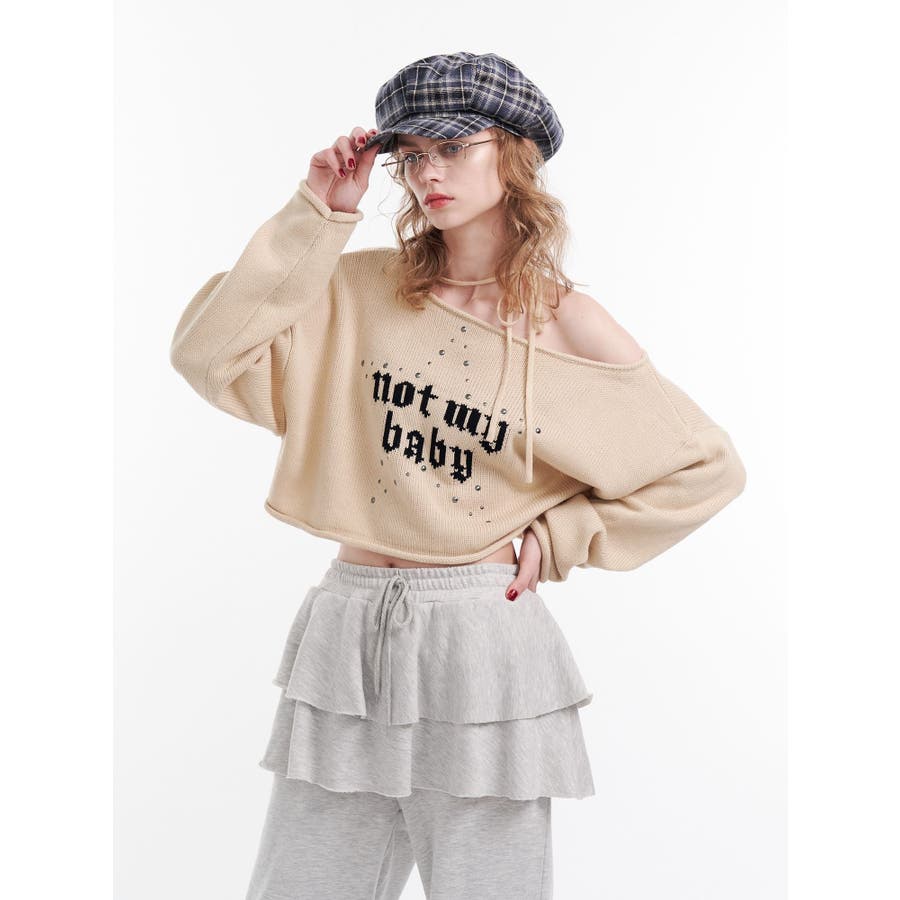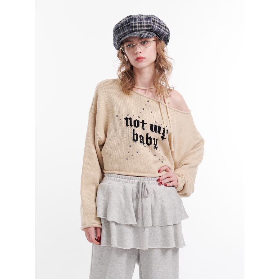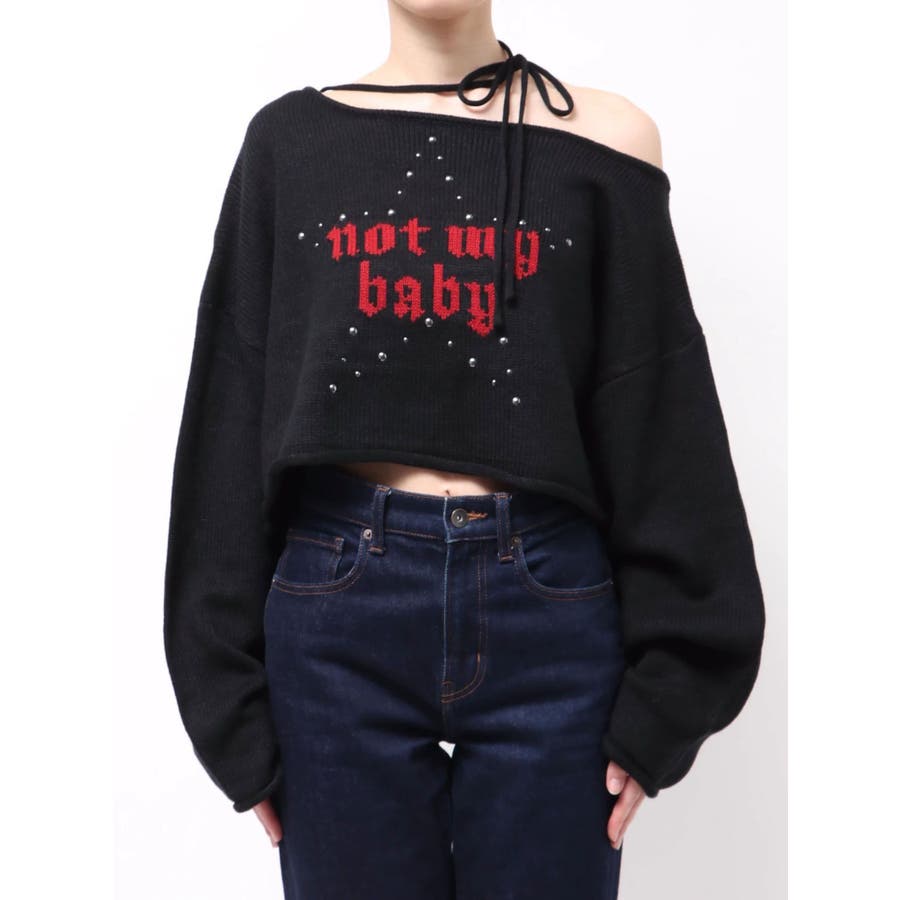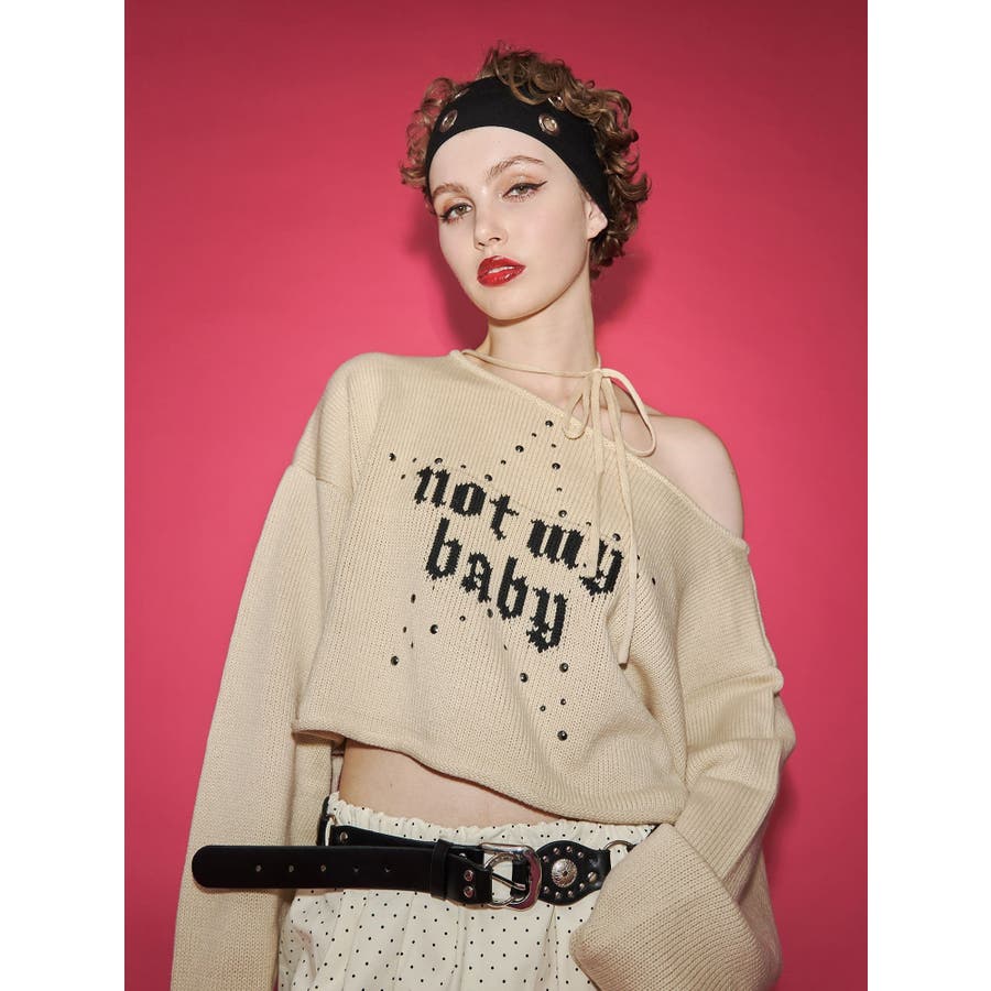 ワンショルスタッズショートニット