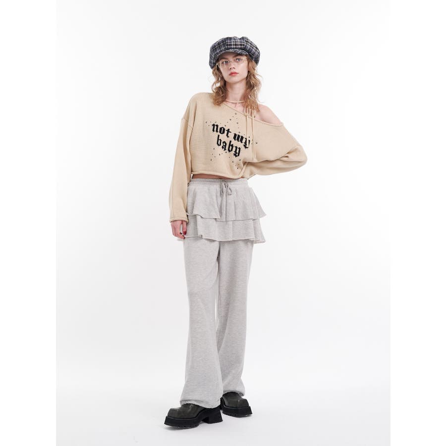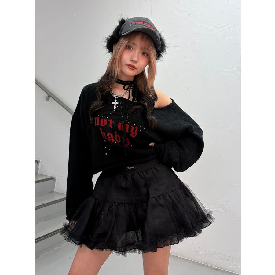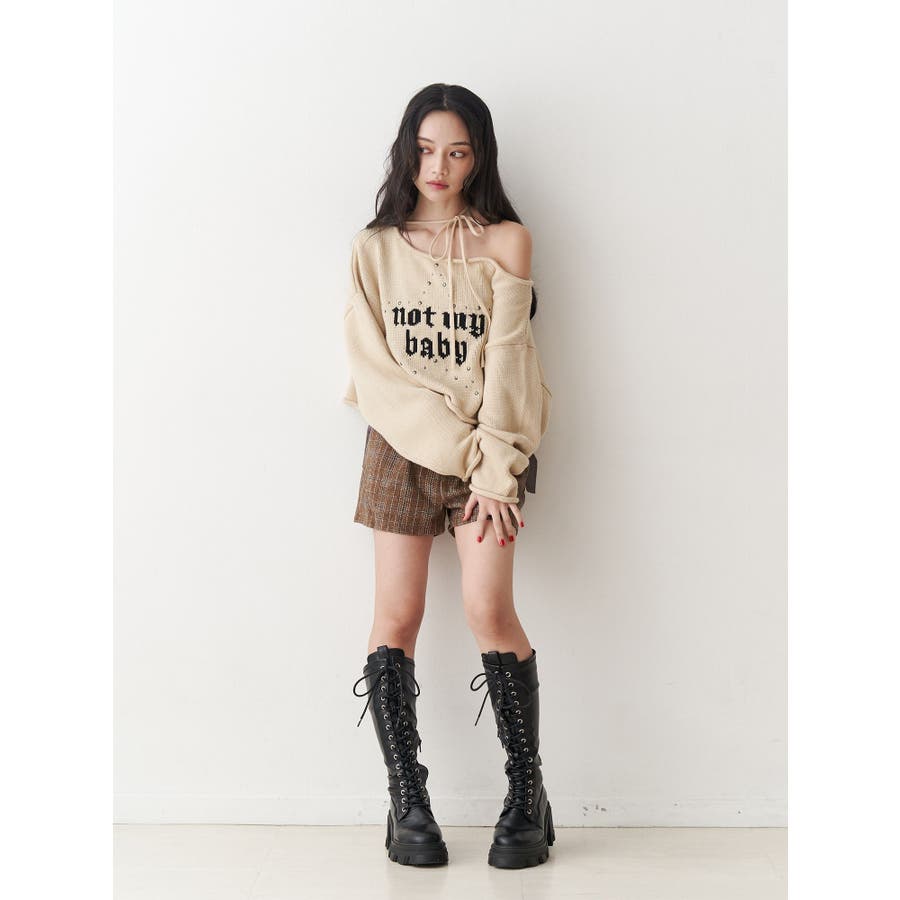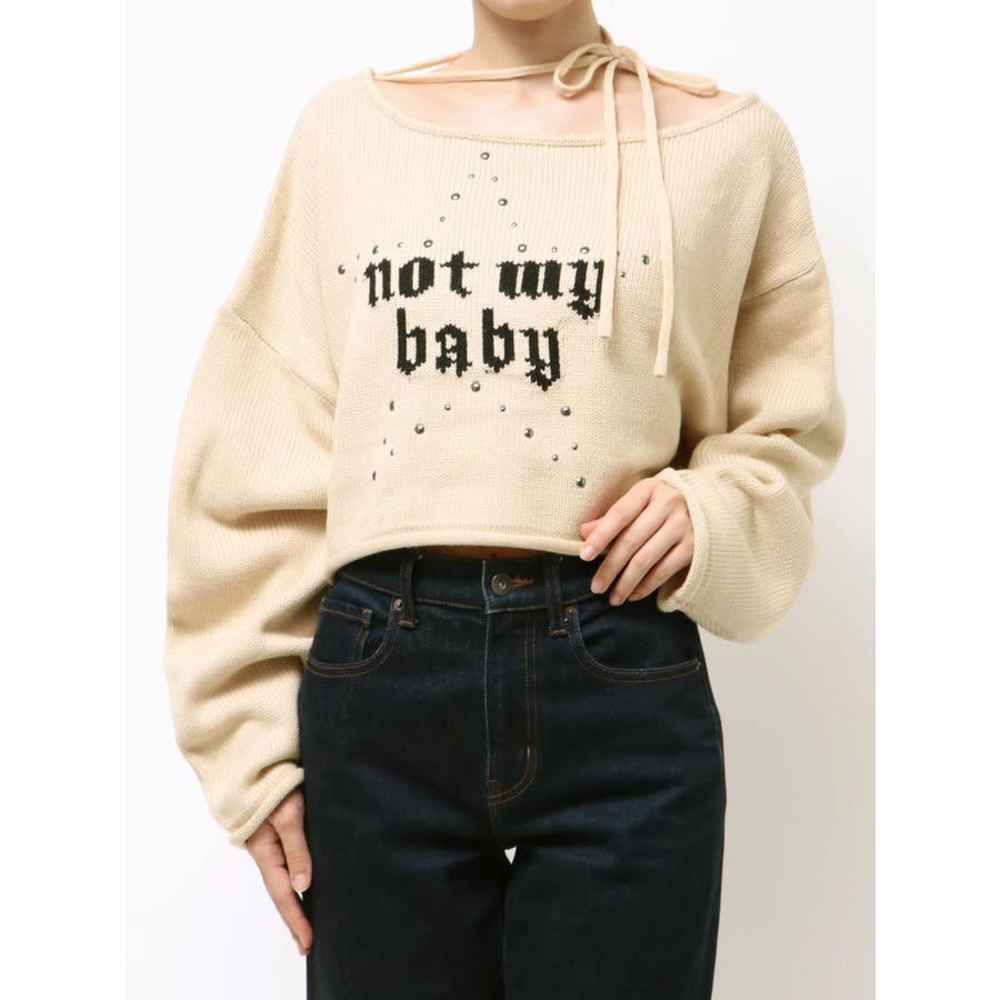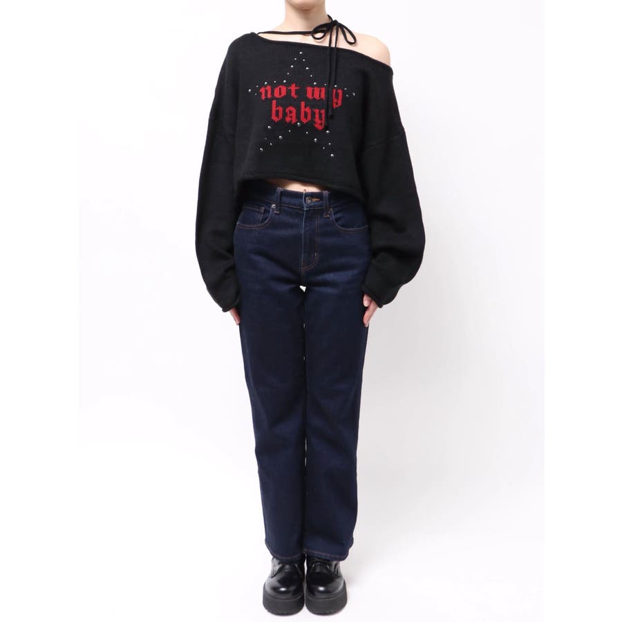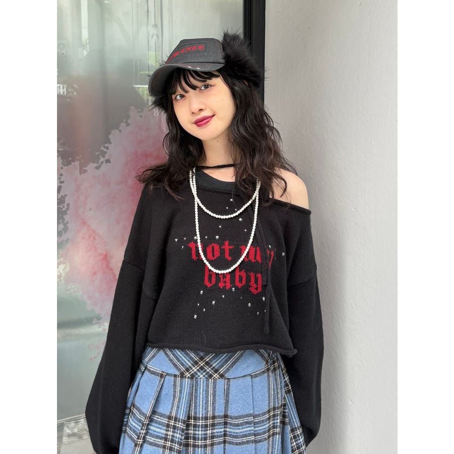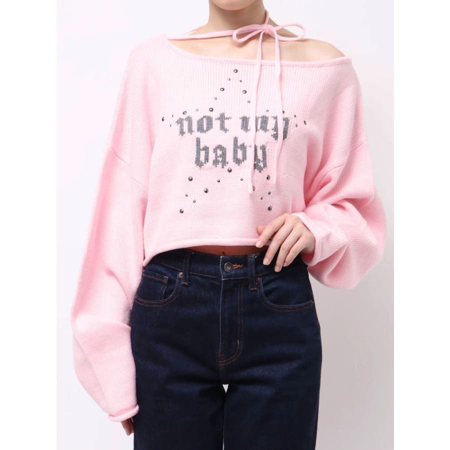 ワンショルスタッズショートニット