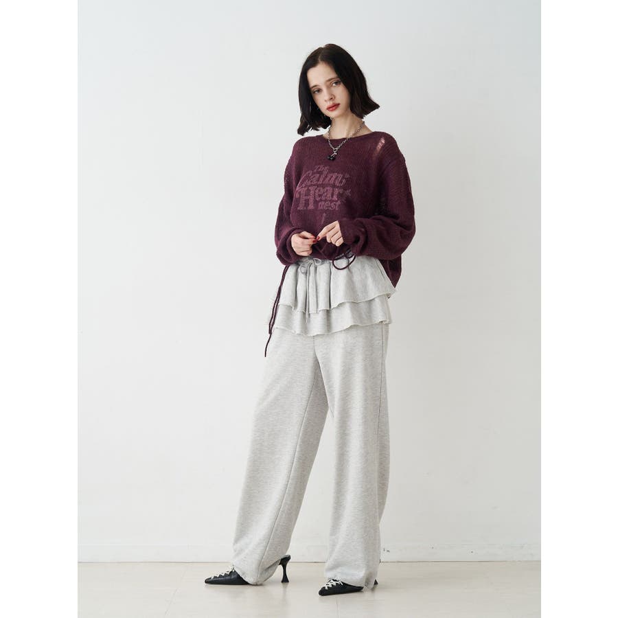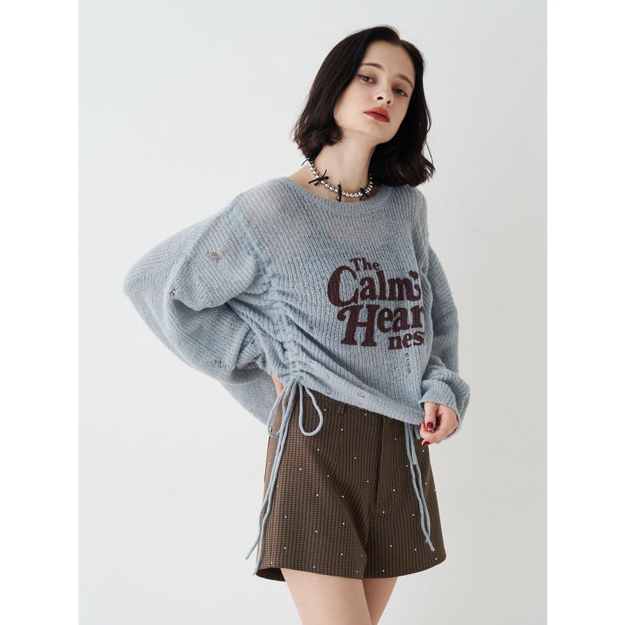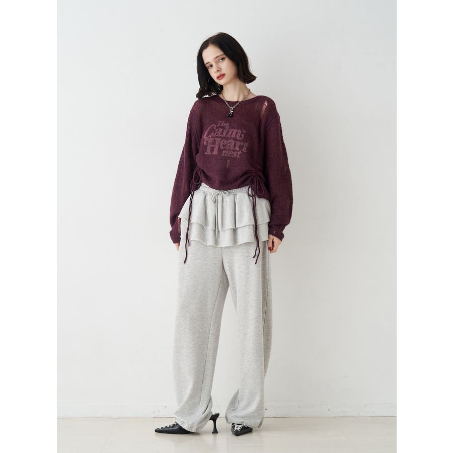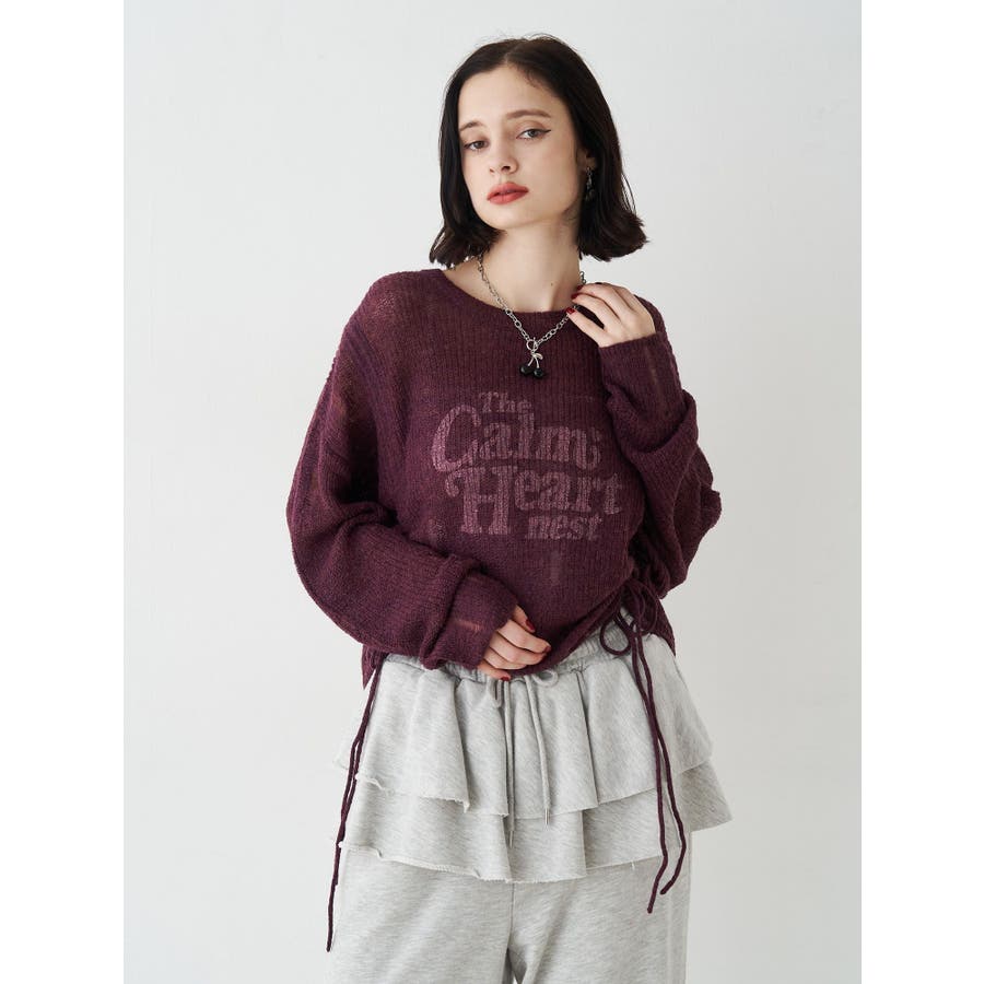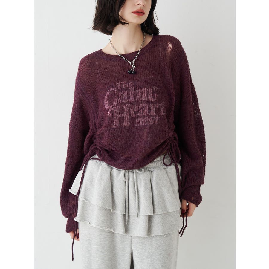 【ポイント】 ダメージ加工がjouetieならではのシアーニット。 フロントのギャザーリボンデザインで長さ調節できるのも嬉しいポイントです。 薄手のシアーニットなのでインナー次第でロングシーズン着回しできます! 【スタイリング】 ちょうどいいクロップド丈なのでどんなボトムスにも相性抜群です。 寒くなってきたら、シャツをレイヤードするスタイリングもおすすめです! フロントのギャザーを伸ばしてゆるっと着るのもかわいいです。 ※着用画像はフラッシュの加減で実際の製品と色味等が異なる場合がございますので、生地のズームアップ画像をご確認ください。 ※ご利用の端末画面の設定により実際の商品と色味が異なる場合がございます。 ※正しいサイズはアイテムサイズ表をご確認ください。 ※商品のお取り扱いについては、脇についている洗濯ネーム類をご確認下さい。