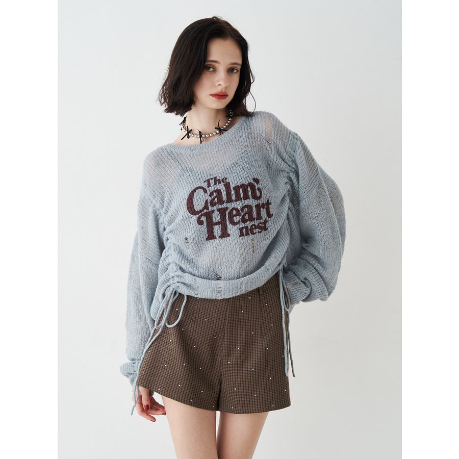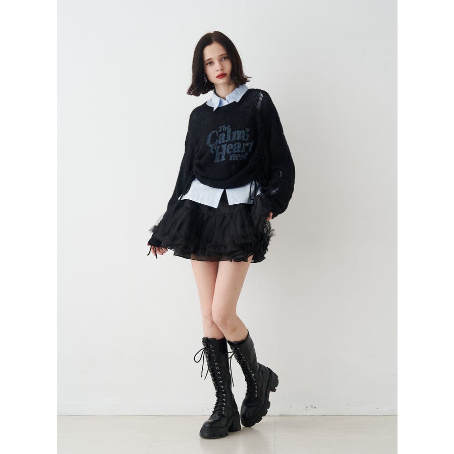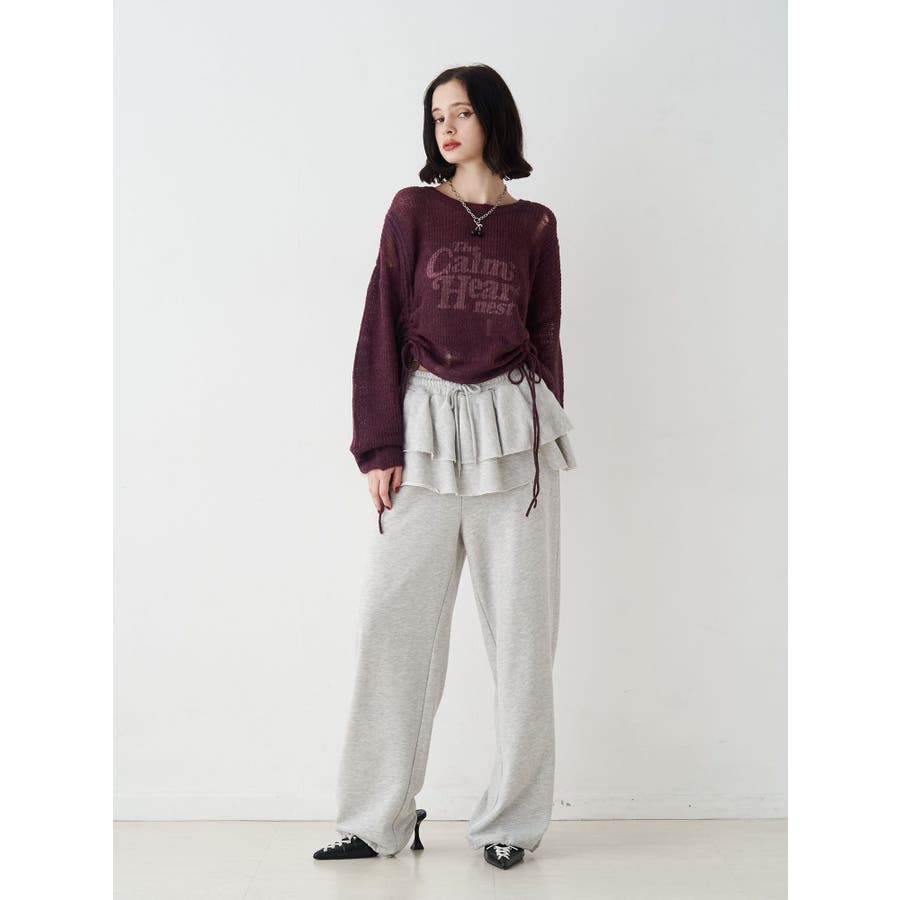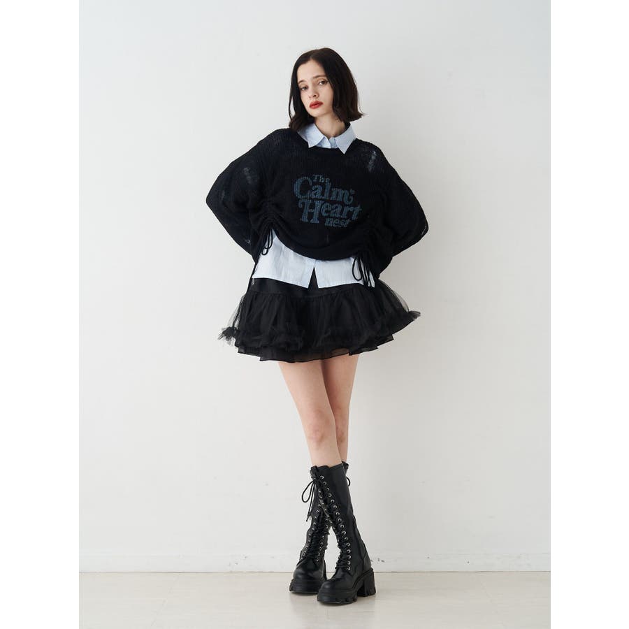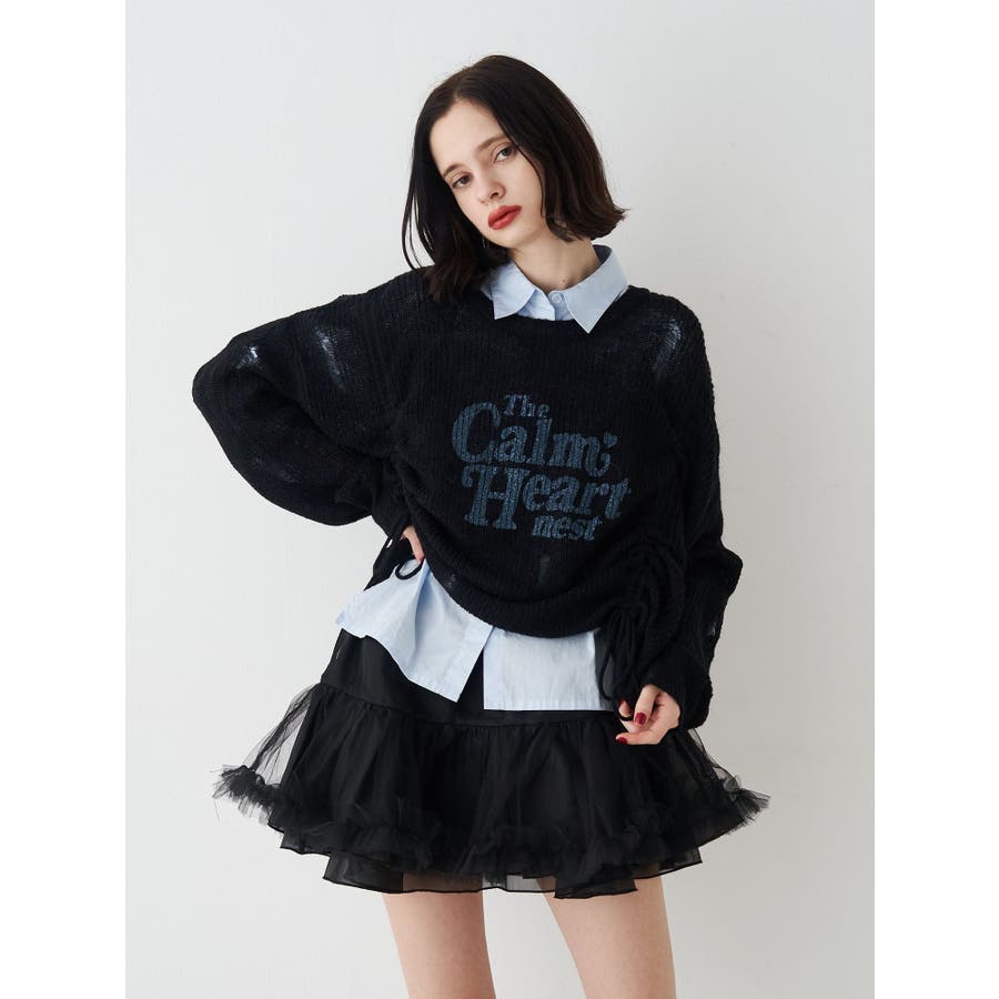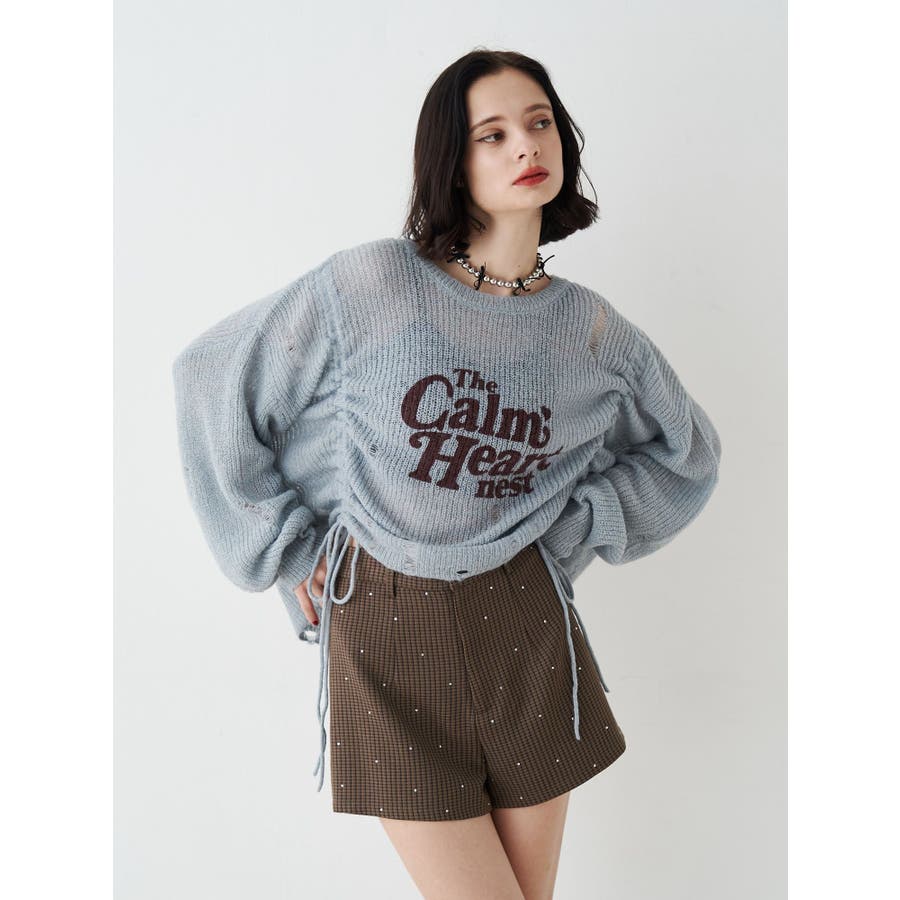 【ポイント】 ダメージ加工がjouetieならではのシアーニット。 フロントのギャザーリボンデザインで長さ調節できるのも嬉しいポイントです。 薄手のシアーニットなのでインナー次第でロングシーズン着回しできます! 【スタイリング】 ちょうどいいクロップド丈なのでどんなボトムスにも相性抜群です。 寒くなってきたら、シャツをレイヤードするスタイリングもおすすめです! フロントのギャザーを伸ばしてゆるっと着るのもかわいいです。 ※着用画像はフラッシュの加減で実際の製品と色味等が異なる場合がございますので、生地のズームアップ画像をご確認ください。 ※ご利用の端末画面の設定により実際の商品と色味が異なる場合がございます。 ※正しいサイズはアイテムサイズ表をご確認ください。 ※商品のお取り扱いについては、脇についている洗濯ネーム類をご確認下さい。