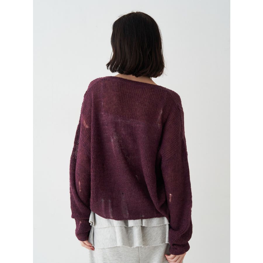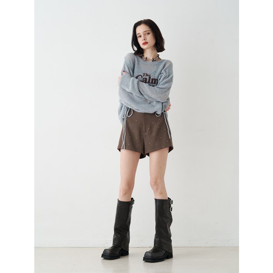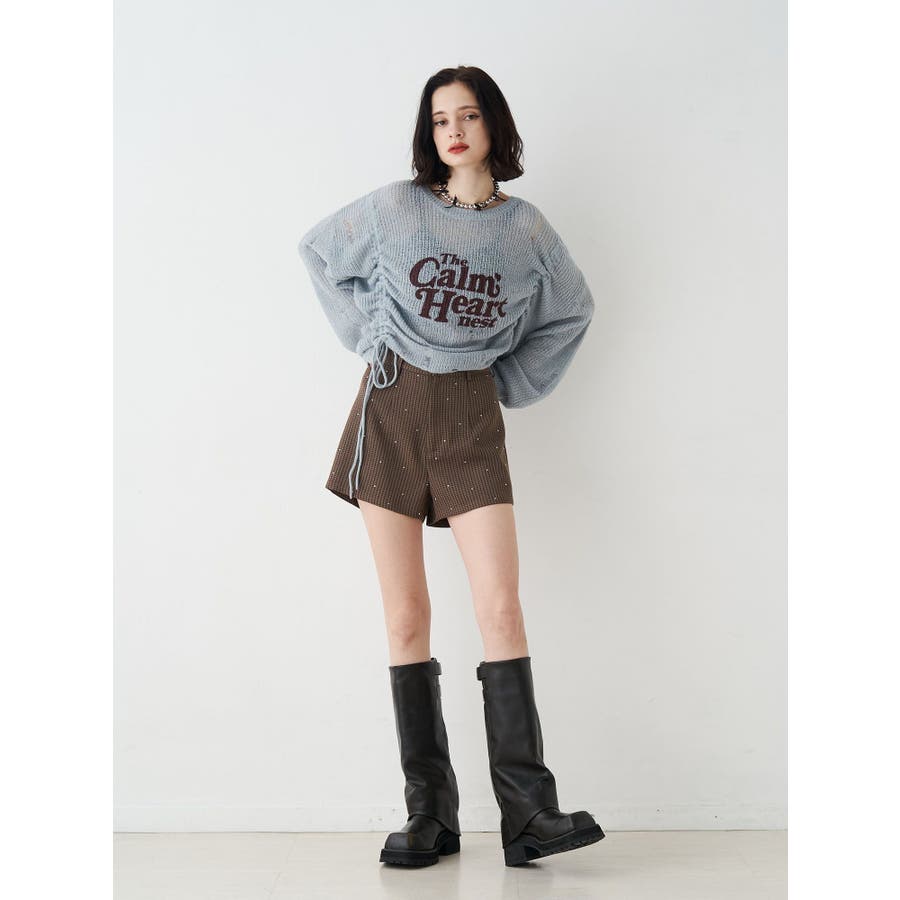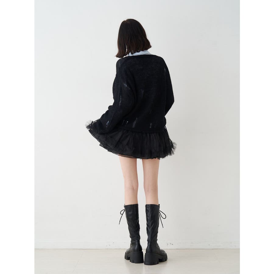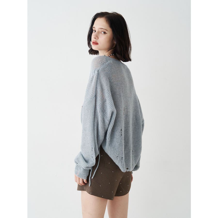 【ポイント】 ダメージ加工がjouetieならではのシアーニット。 フロントのギャザーリボンデザインで長さ調節できるのも嬉しいポイントです。 薄手のシアーニットなのでインナー次第でロングシーズン着回しできます! 【スタイリング】 ちょうどいいクロップド丈なのでどんなボトムスにも相性抜群です。 寒くなってきたら、シャツをレイヤードするスタイリングもおすすめです! フロントのギャザーを伸ばしてゆるっと着るのもかわいいです。 ※着用画像はフラッシュの加減で実際の製品と色味等が異なる場合がございますので、生地のズームアップ画像をご確認ください。 ※ご利用の端末画面の設定により実際の商品と色味が異なる場合がございます。 ※正しいサイズはアイテムサイズ表をご確認ください。 ※商品のお取り扱いについては、脇についている洗濯ネーム類をご確認下さい。