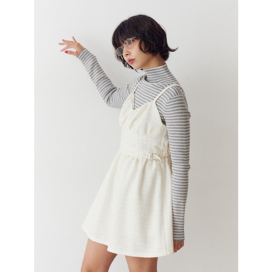 【ポイント】 キラキラのラメツイード素材がかわいいキャミワンピース? サイドのベルトがエッジィなポイントに! この1枚でjouetie(ジュエティ)らしい甘辛MIXなスタイルが完成します。 後ろがゴムになっているので着心地も抜群です。 【スタイリング】 シアートップスやレーストップスと合わせてガーリーに着るのがかわいいです! デニム合わせでカジュアルダウンするのもおすすめ。 インナーやアウター次第でロングシーズン着回しできる優秀アイテムです。 ※着用画像はフラッシュの加減で実際の製品と色味等が異なる場合がございますので、生地のズームアップ画像をご確認ください。 ※ご利用の端末画面の設定により実際の商品と色味が異なる場合がございます。 ※正しいサイズはアイテムサイズ表をご確認ください。 ※商品のお取り扱いについては、脇についている洗濯ネーム類をご確認下さい。【商品特徴】透け感:なし伸縮性:なし生地の厚さ:普通手サイズ感:普通裏地:ありポケット:なしファスナー:なし