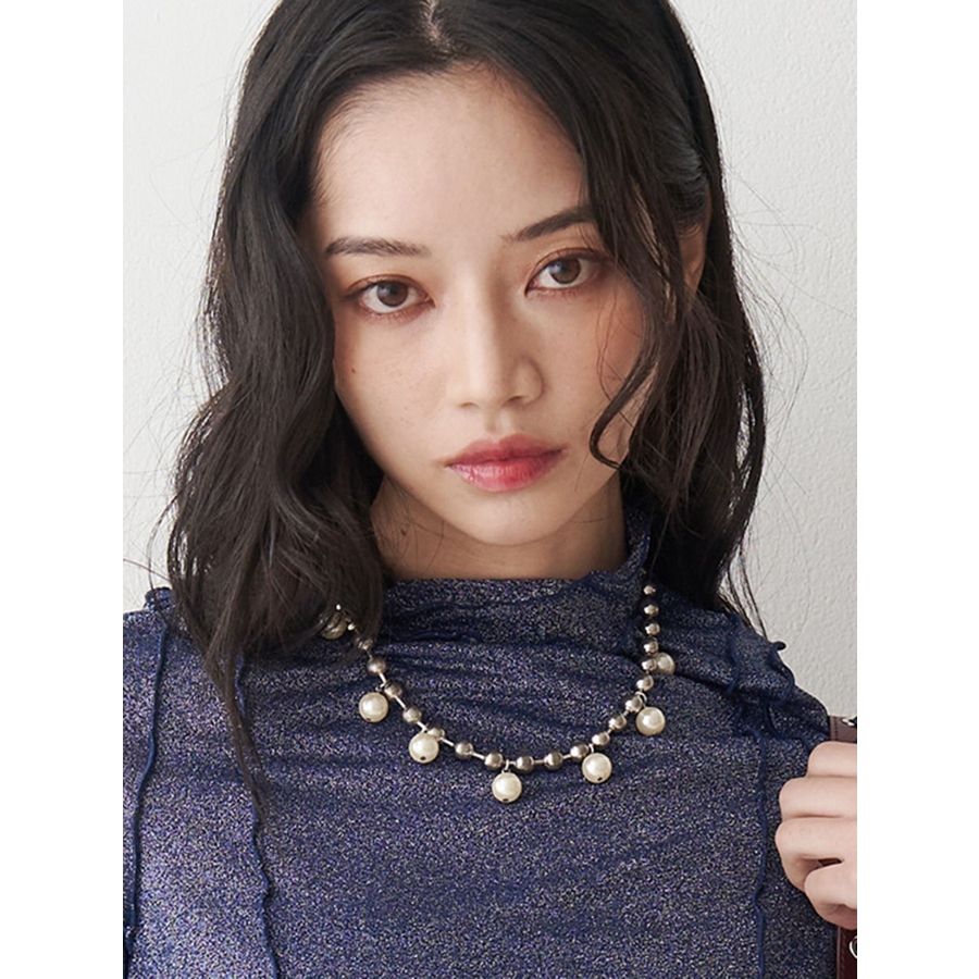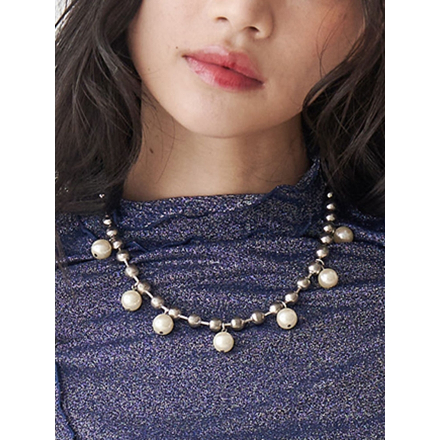 パール×チェーンデザインがかわいいネックレス。いつものコーデにプラスするだけでアクセントになるアイテムです!パールアイテムはコーデのテイストを選ばないのも嬉しいポイント!【修正コメント】(1)ボールチェーンの大きさが0.4cmから0.8cmのものに変更になります。