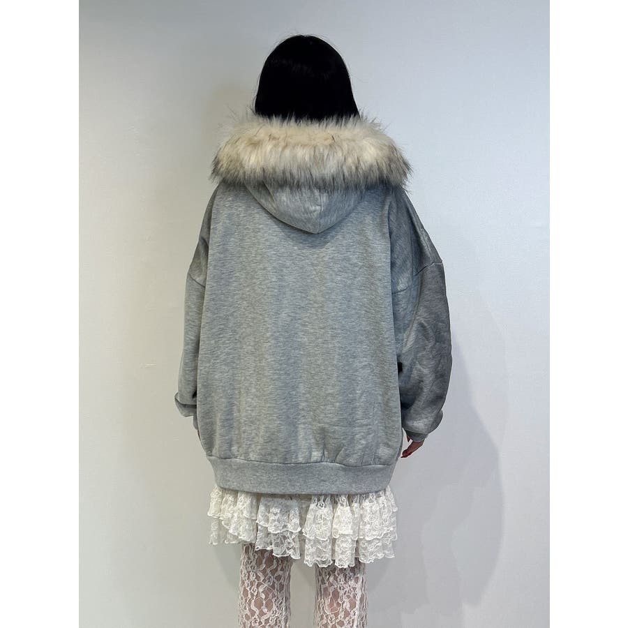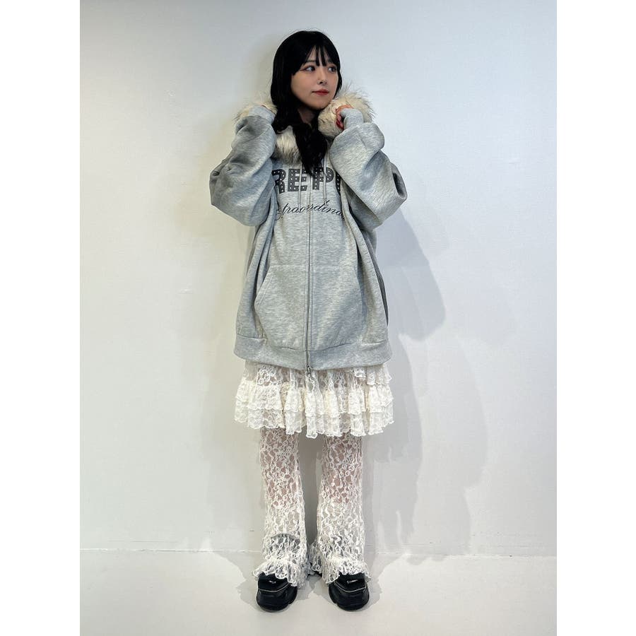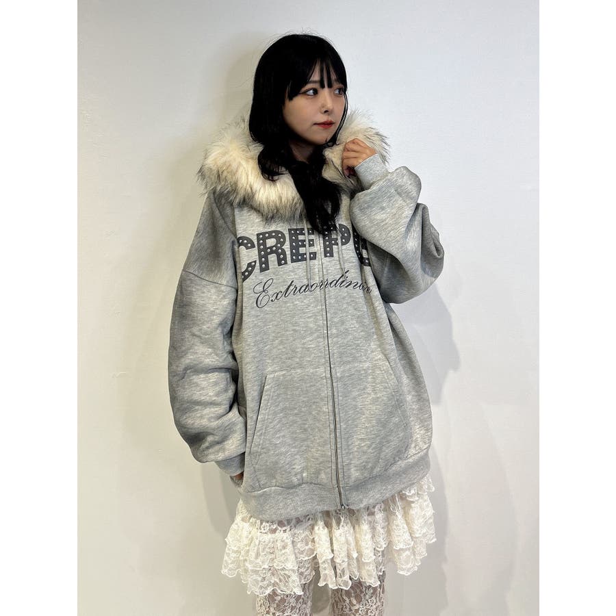 【ポイント】 スタッズ付きのロゴがポイントオーバーサイズのフーディー。 スプレープリントがおしゃれ見えするアイテムです! フードのファーは取り外しできるので気分や気温に合わせて変えられるのも嬉しいポイント! 【スタイリング】 おしりが隠れるくらいのサイズ感なのでミニボトム合わせが◎ ダブルジップを開けてインナーを見せるスタイリングもかわいいです! ロングブーツやレッグウォーマーを合わせるのがjouetieらしい! ※着用画像はフラッシュの加減で実際の製品と色味等が異なる場合がございますので、生地のズームアップ画像をご確認ください。 ※ご利用の端末画面の設定により実際の商品と色味が異なる場合がございます。 ※正しいサイズはアイテムサイズ表をご確認ください。 ※商品のお取り扱いについては、脇についている洗濯ネーム類をご確認下さい。