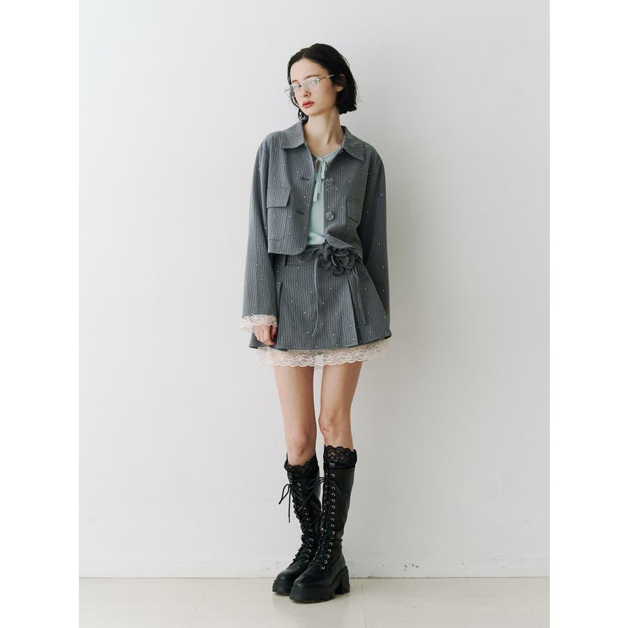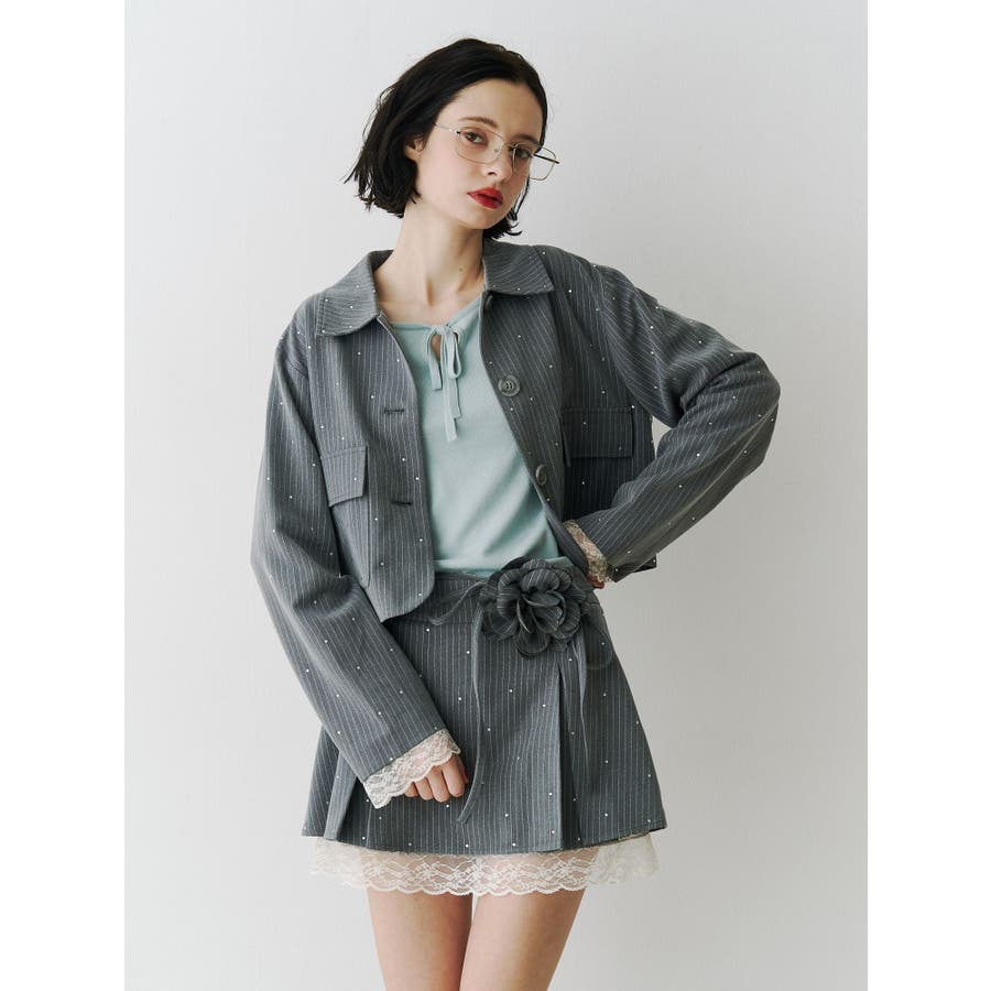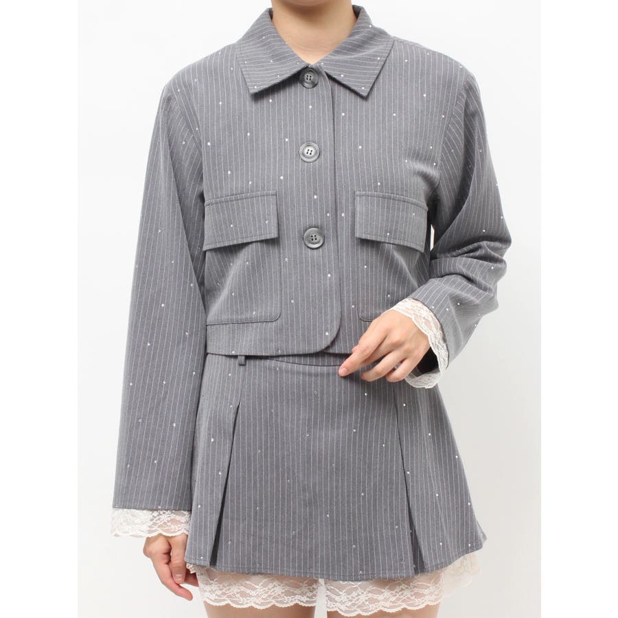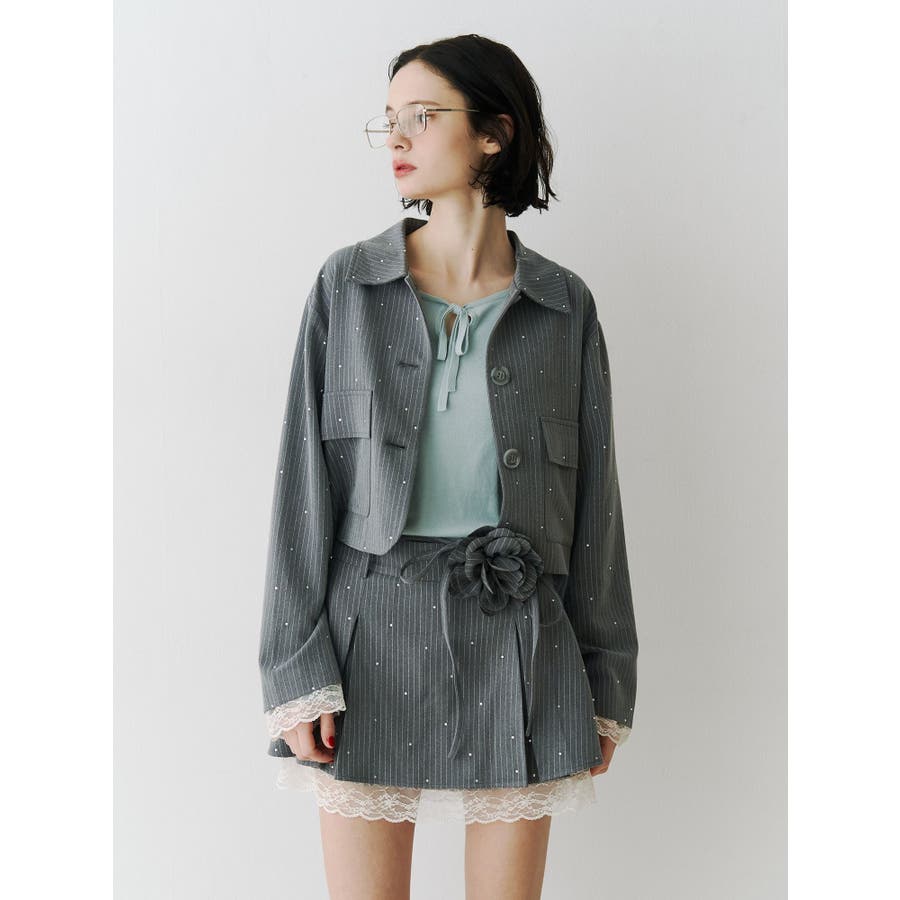 ステンカラーラインストーンショートジャケット【セットアップ対応】