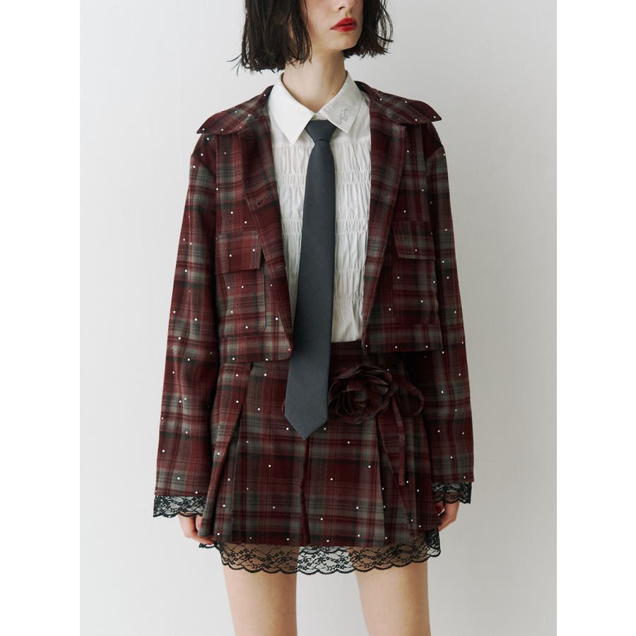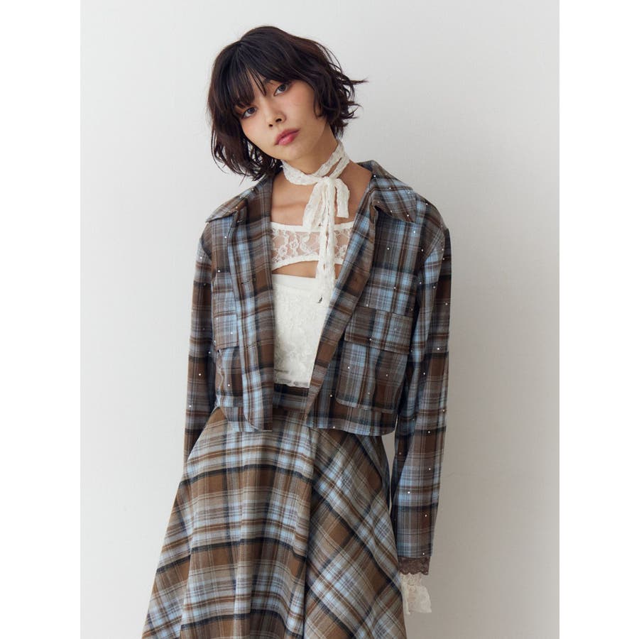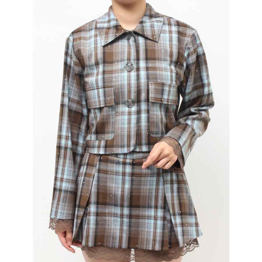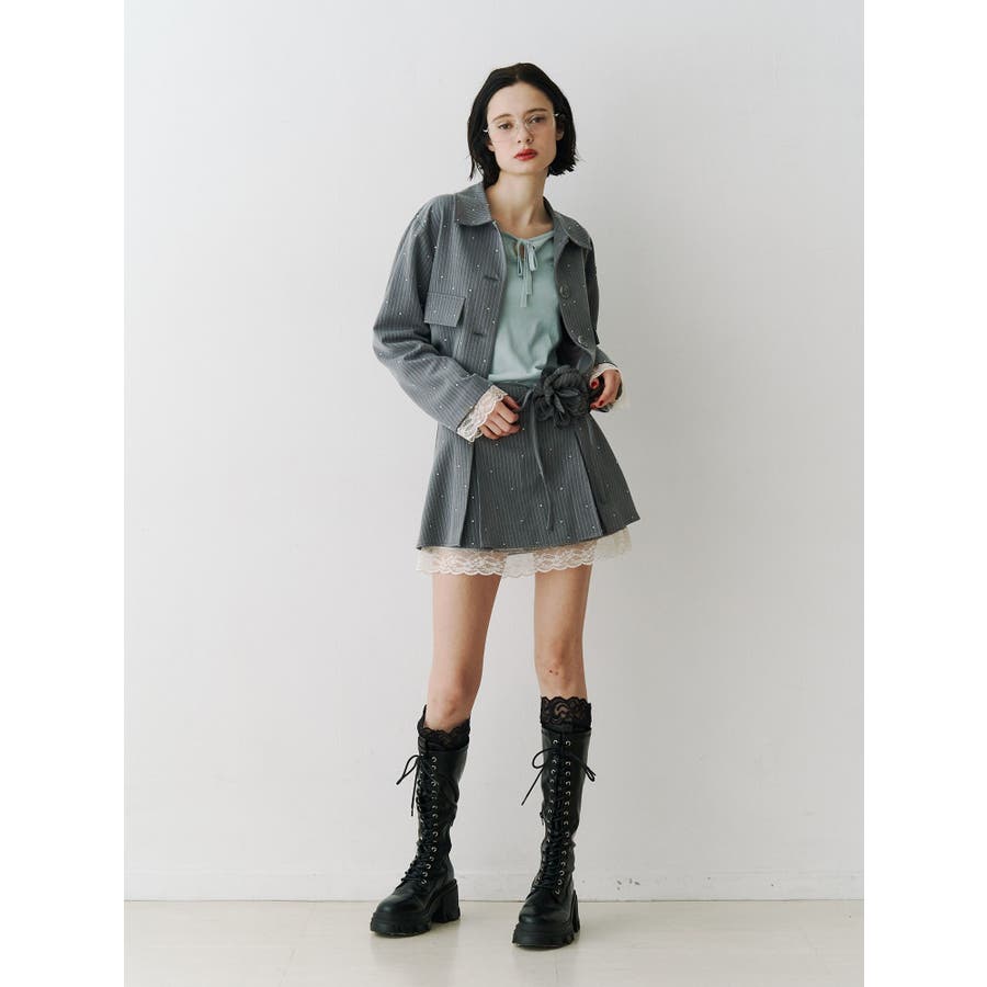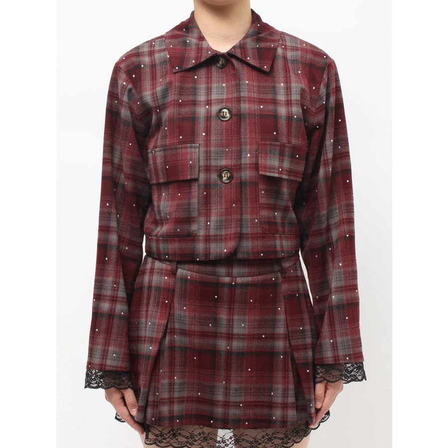 ステンカラーラインストーンショートジャケット【セットアップ対応】