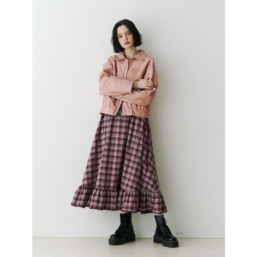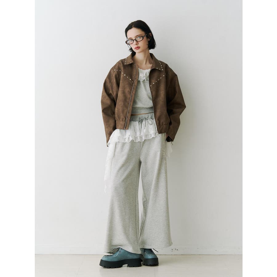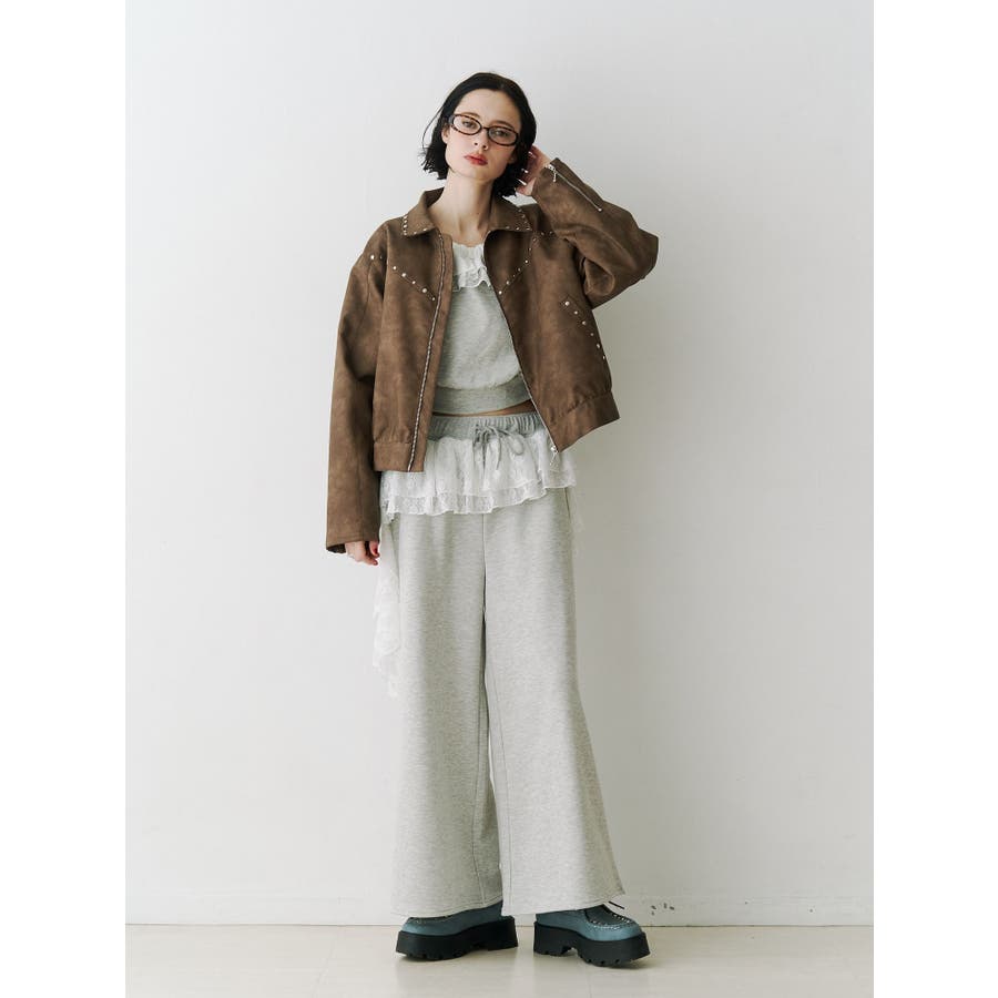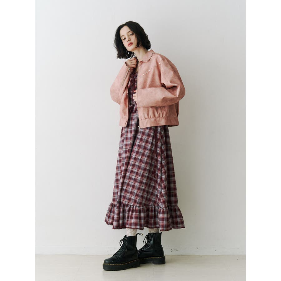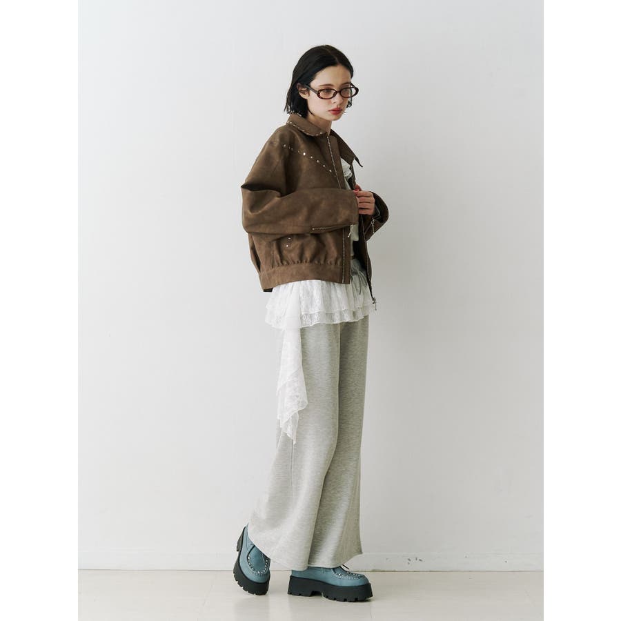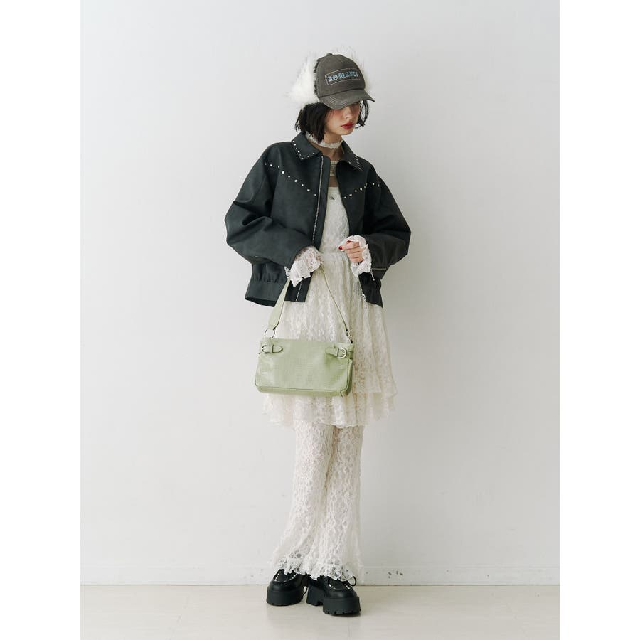 【ポイント】 スタッズ使いがハード×ヴィンテージライクなjouetie(ジュエティ)らしいブルゾン。 特にブラウンとピンクはウォッシュ加工風の生地でよりこなれた印象に。 オーバーサイズ過ぎず、ちょうど良い丈感なのでミニ丈やロング丈ワンピースなど様々なコーディネートに合わせやすいです。 【スタイリング】 レースワンピースなど、ガーリーなアイテムと合わせた甘辛バランスのコーディネートがjouetieっぽい! スウェットパンツなどラフなアイテムと合わせるとコーディネートがグッと引き締まります。 ※着用画像はフラッシュの加減で実際の製品と色味等が異なる場合がございますので、生地のズームアップ画像をご確認ください。 ※ご利用の端末画面の設定により実際の商品と色味が異なる場合がございます。 ※正しいサイズはアイテムサイズ表をご確認ください。 ※商品のお取り扱いについては、脇についている洗濯ネーム類をご確認下さい。【商品特徴】透け感:なし伸縮性:なし生地の厚さ:普通サイズ感:普通裏地: ありポケット:あり(前)
