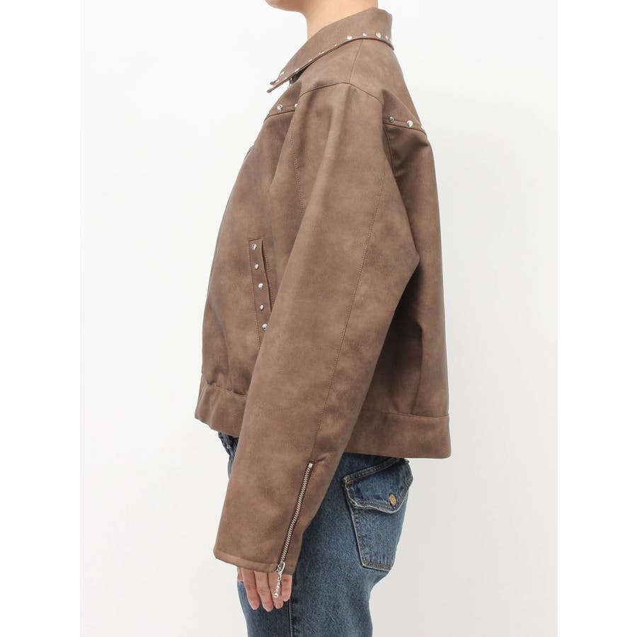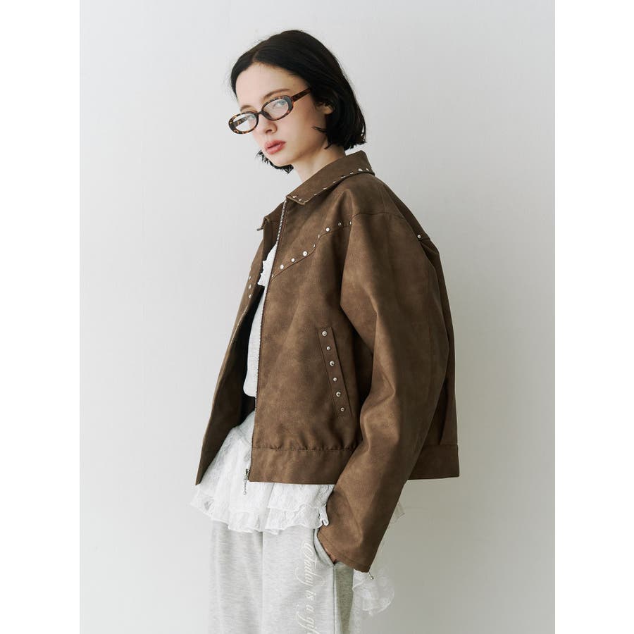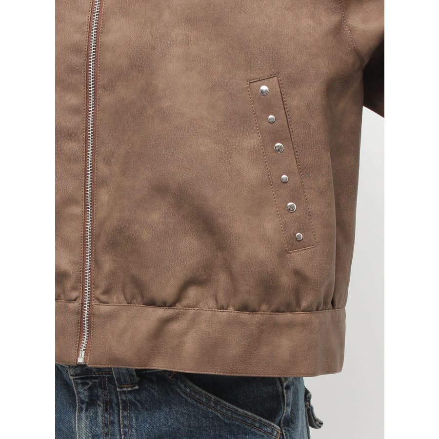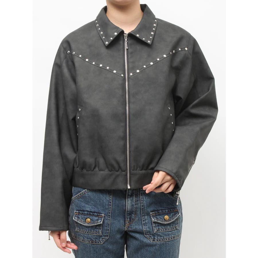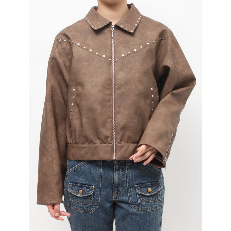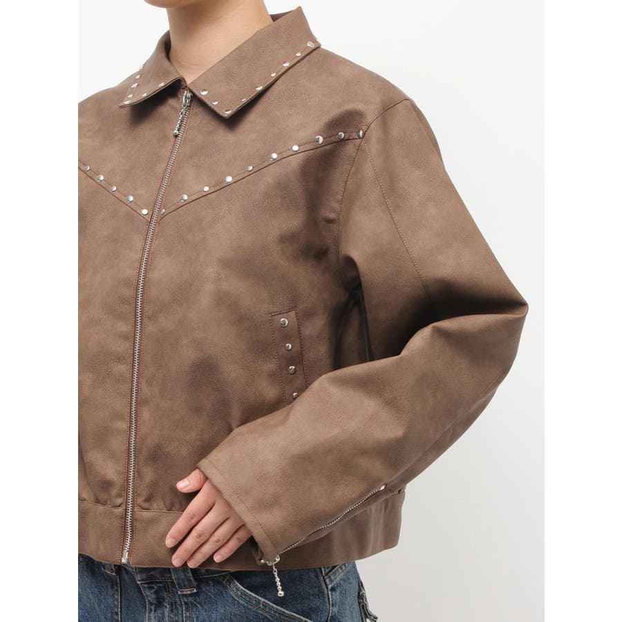 フェイクレザースタッズブルゾン
