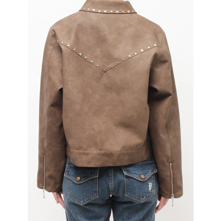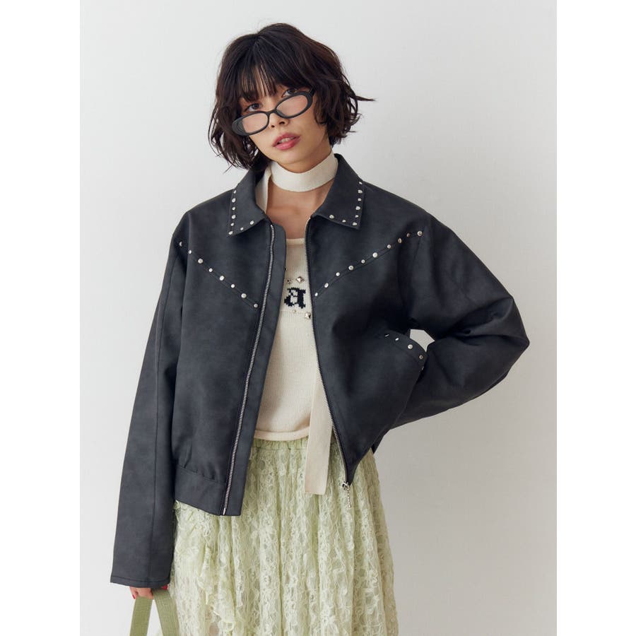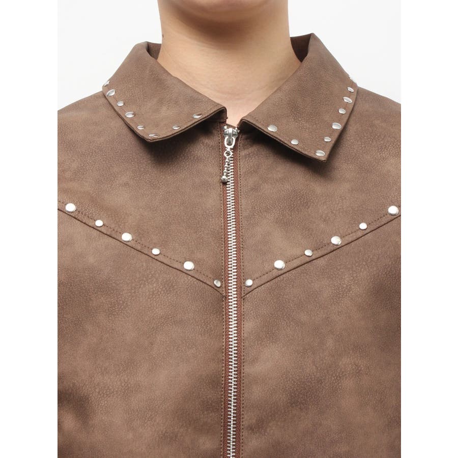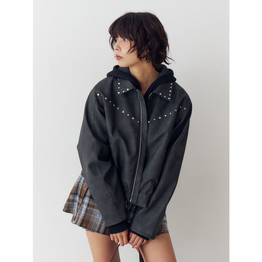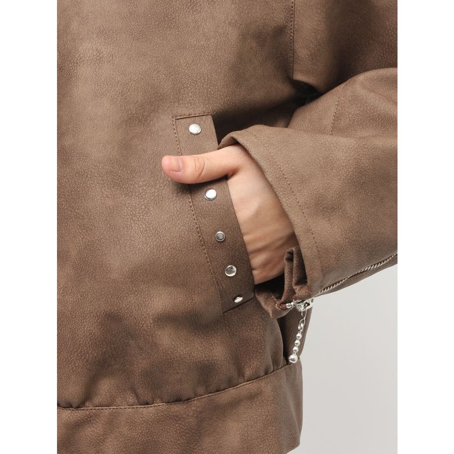 フェイクレザースタッズブルゾン