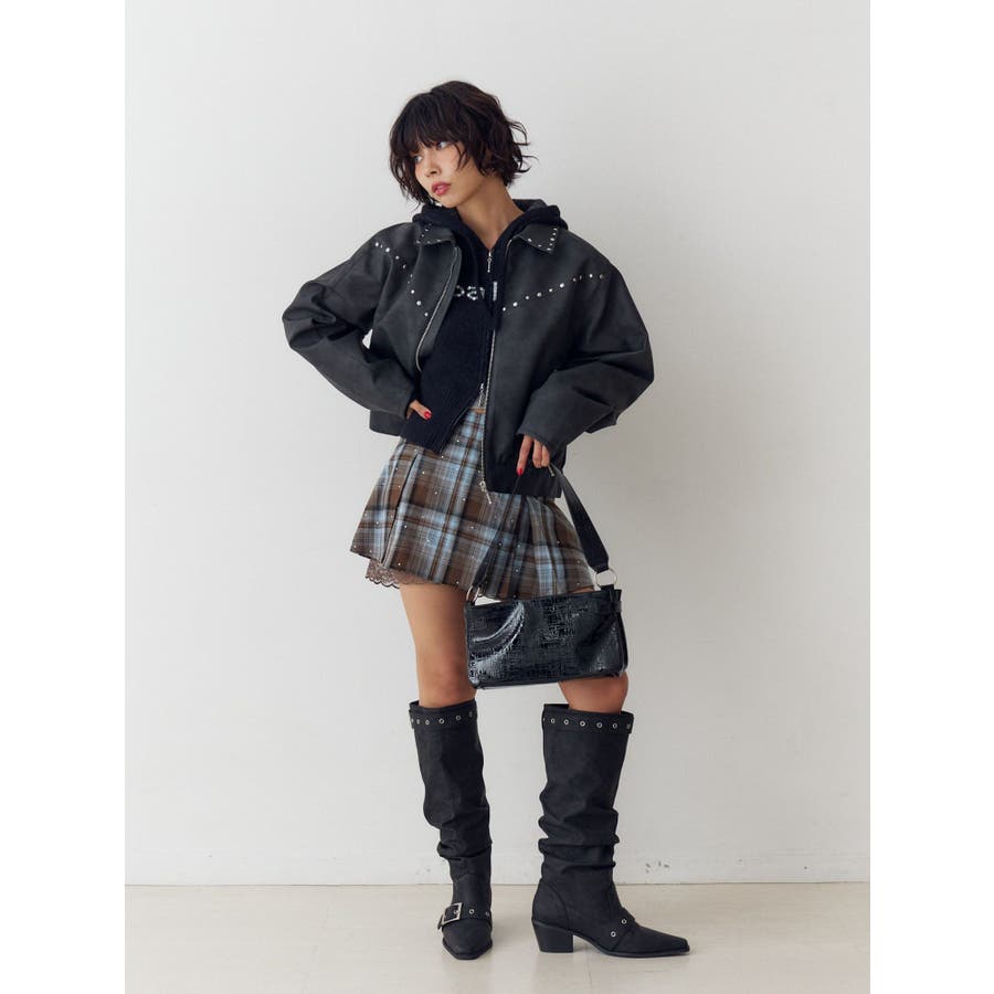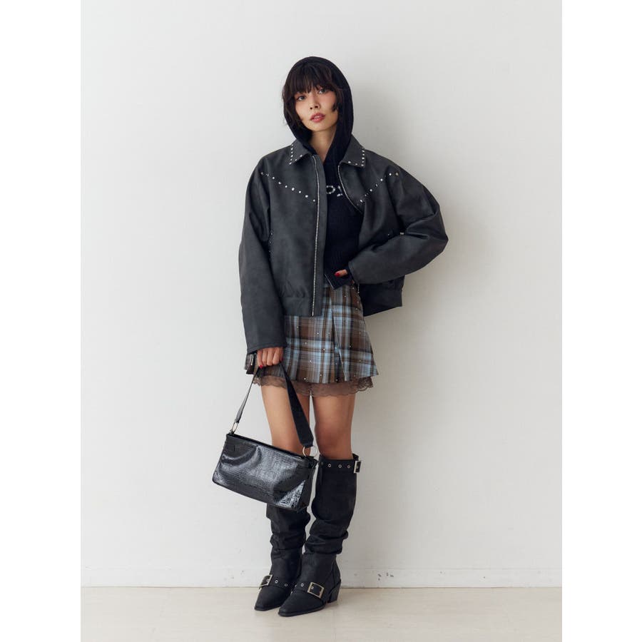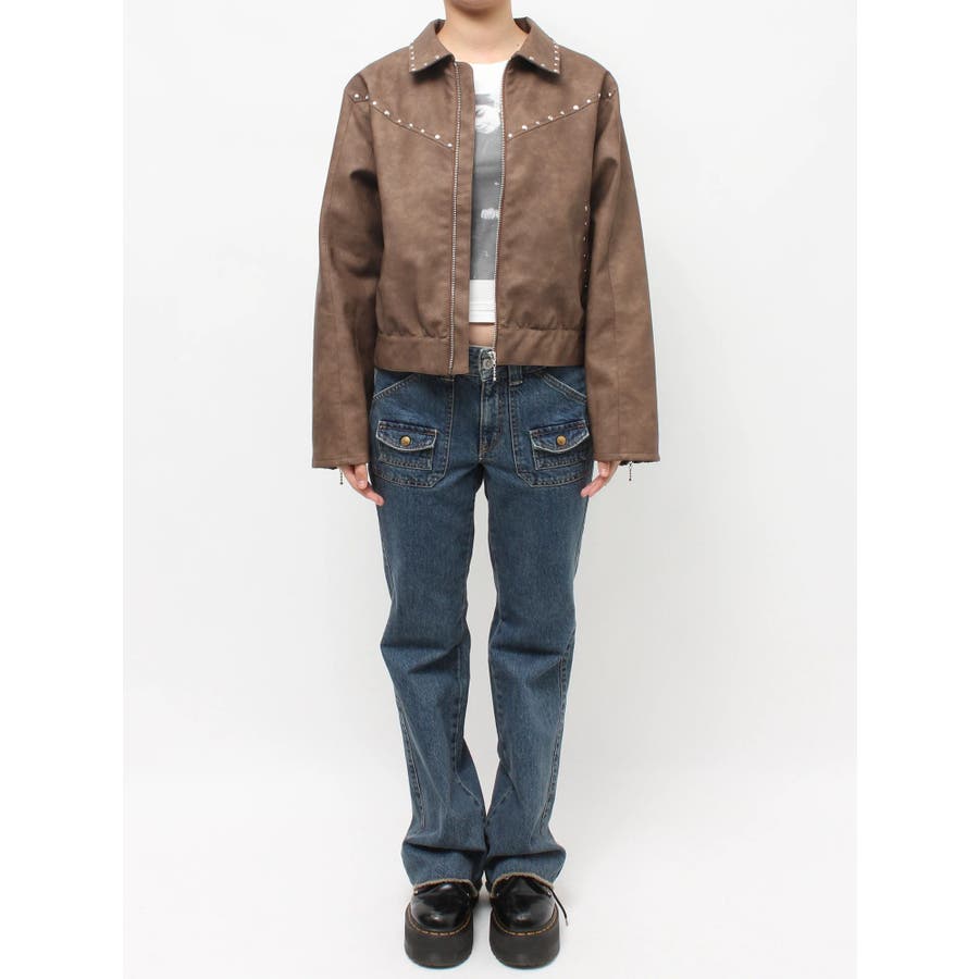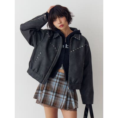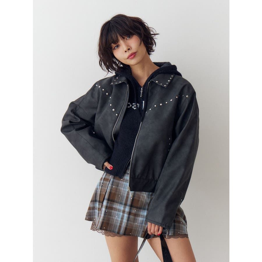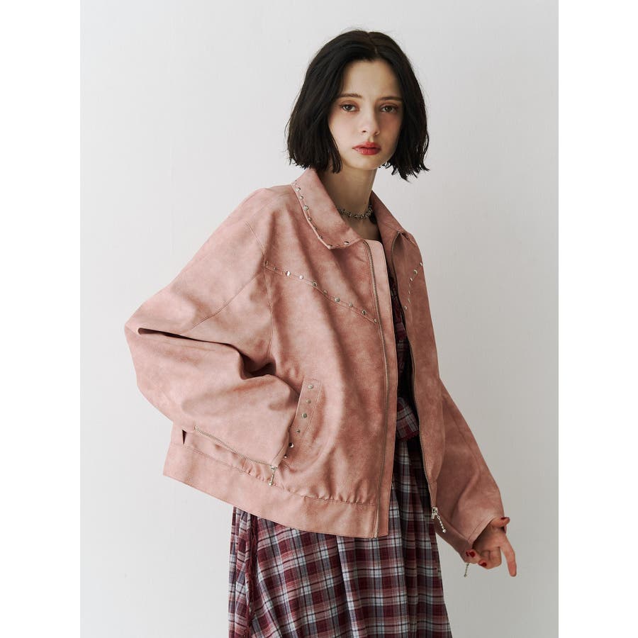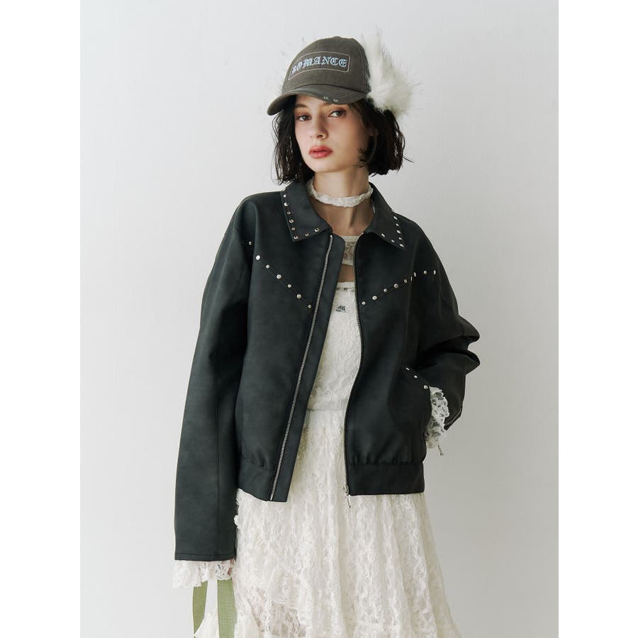 フェイクレザースタッズブルゾン