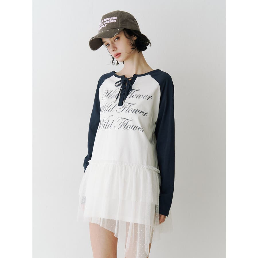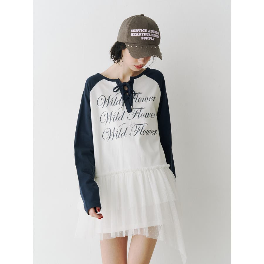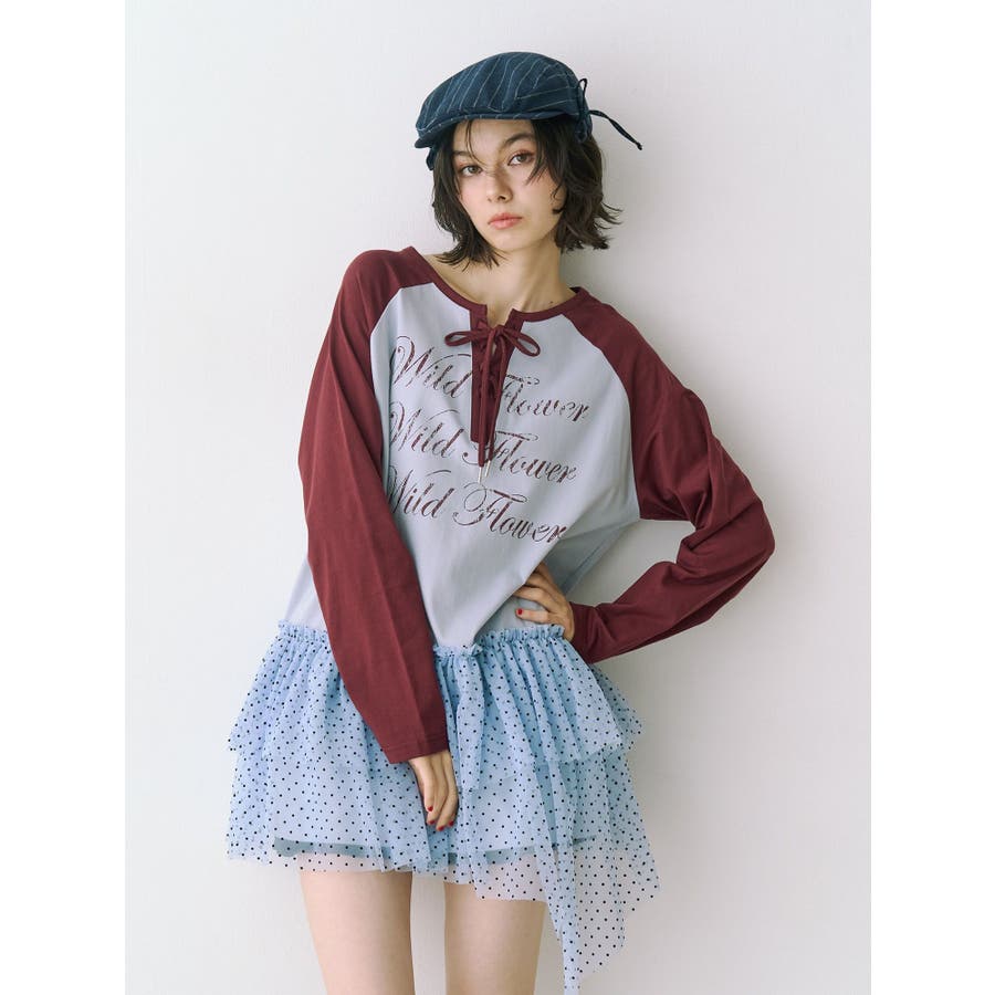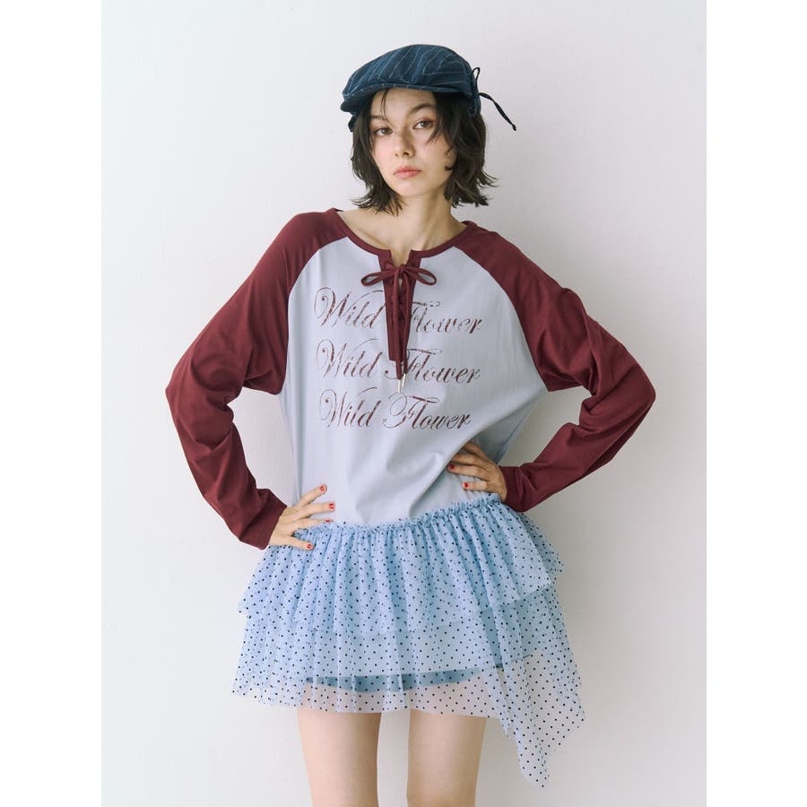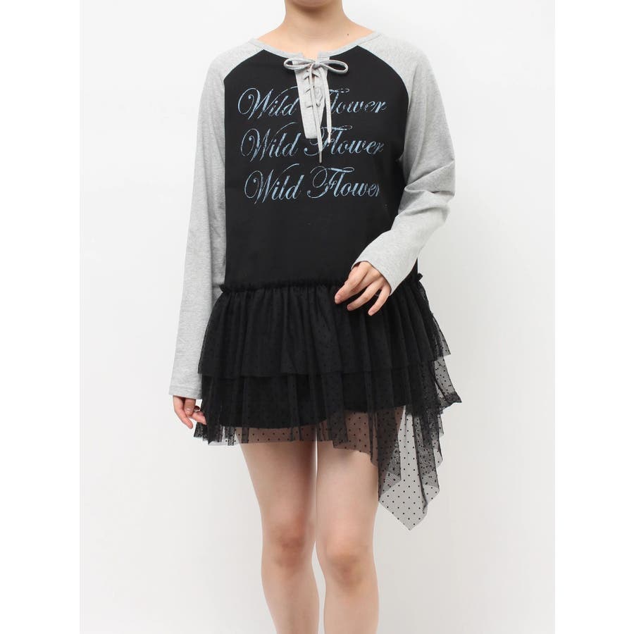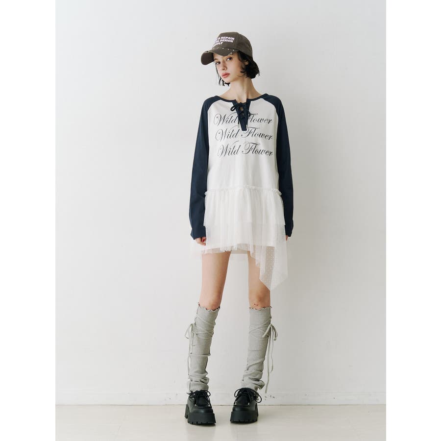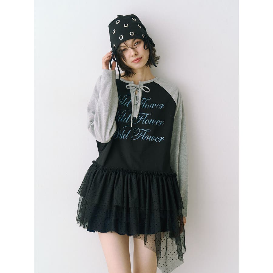 【ポイント】 カジュアルなラグランワンピースに、今っぽいドット柄チュールを重ねた1枚で主役級のワンピース。 胸元のレースアップでカジュアルになりすぎないところもポイント。 【スタイリング】 こだわりのデザインが盛りだくさんなのでジャケットやブルゾンなどお手持ちのアウターに合わせるだけでコーディネートが決まります。 足元にはレッグウォーマーをプラスするとトレンド感がアップ! エンジニアブーツなどで足元に重厚感をプラスするのがjouetieらしくておすすめです。 ※着用画像はフラッシュの加減で実際の製品と色味等が異なる場合がございますので、生地のズームアップ画像をご確認ください。 ※ご利用の端末画面の設定により実際の商品と色味が異なる場合がございます。 ※正しいサイズはアイテムサイズ表をご確認ください。 ※商品のお取り扱いについては、脇についている洗濯ネーム類をご確認下さい。