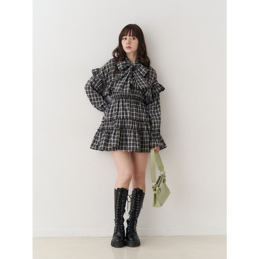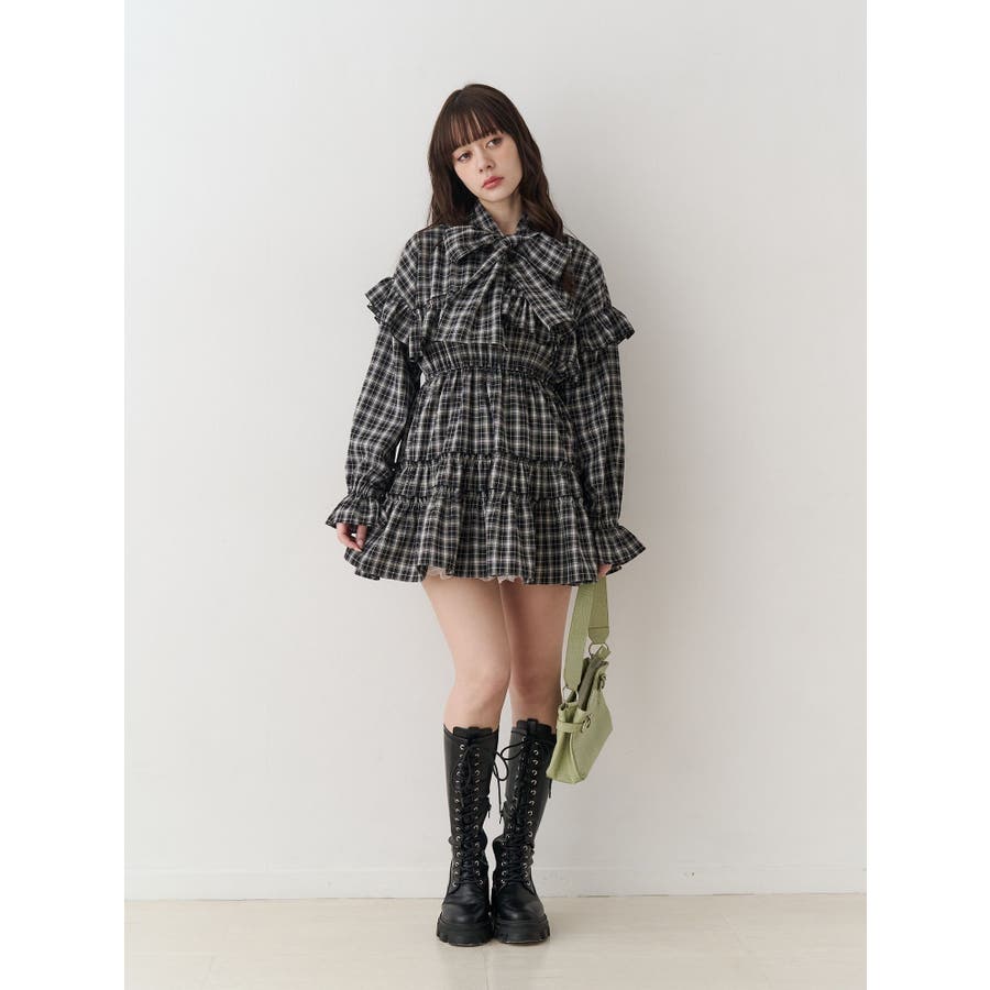 【ポイント】 肩のフリルデザインがガーリーな印象にしてくれるミニワンピースです。 リボンタイは気分に合わせて後ろで結んでもかわいい! チェック柄の素材で甘辛MIXな印象にしてくれます! 【スタイリング】 ロングブーツ合わせがjouetieならではでおすすめです! 一枚ではもちろん、プルオーバーをレイヤードするスタイリングも◎ レースパンツやフレアパンツで大人カジュアルなコーデも相性抜群です。 ※着用画像はフラッシュの加減で実際の製品と色味等が異なる場合がございますので、生地のズームアップ画像をご確認ください。 ※ご利用の端末画面の設定により実際の商品と色味が異なる場合がございます。 ※正しいサイズはアイテムサイズ表をご確認ください。 ※商品のお取り扱いについては、脇についている洗濯ネーム類をご確認下さい。
