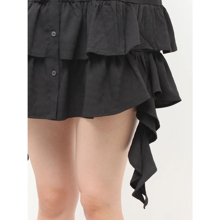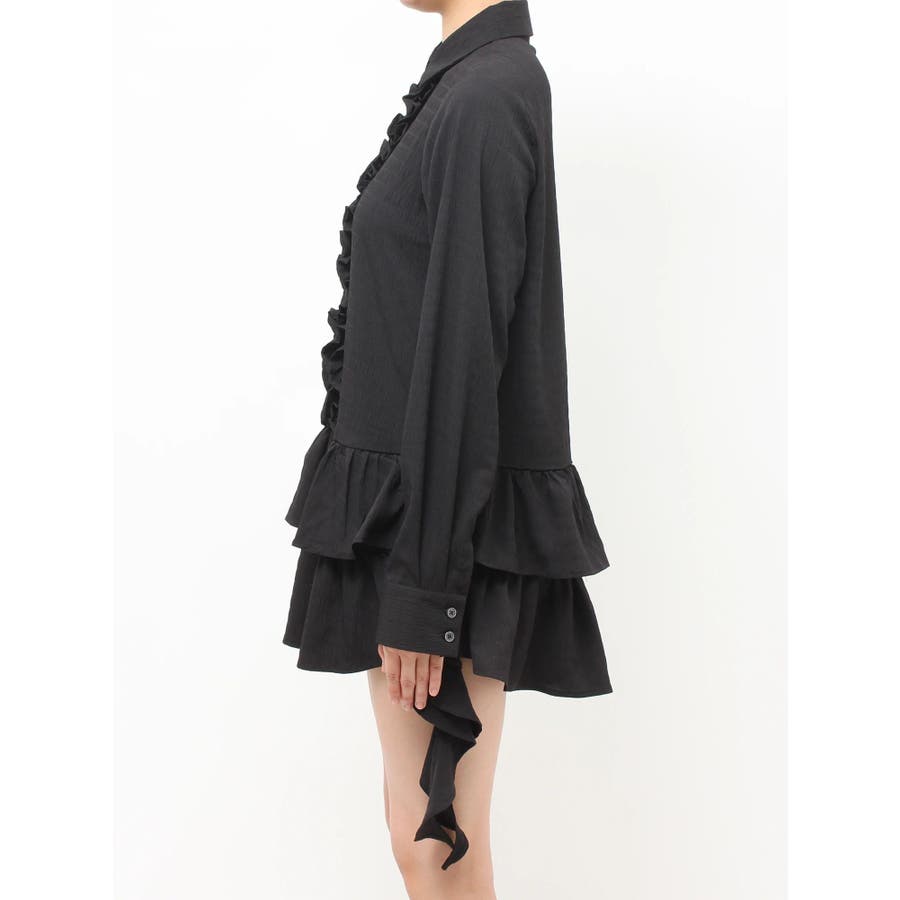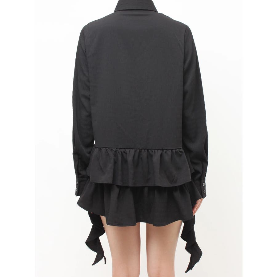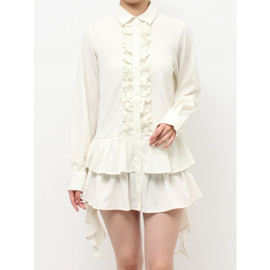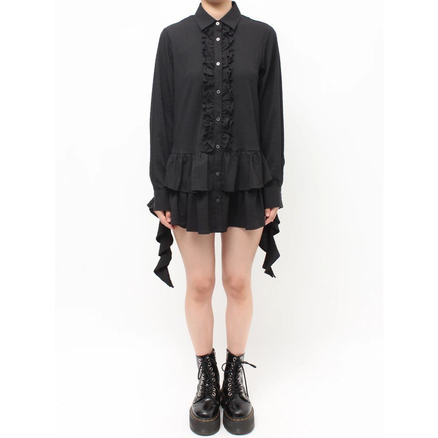 【ポイント】 大人気のフリルチュニックシャツをアップデート! フリルの前立てと両脇のドレープで立体感と揺れ感を演出したロマンティックなワンピース。 1枚で着映えするjouetieらしいアイテムです。 【スタイリング】 ミニワンピース風のチュニックシャツなので、ロングブーツやハイソックスを合わせるのがおすすめです。 レザーブルゾンやレザーバッグなど辛めのアイテムを合わせた甘辛MIXスタイルがjouetieらしい! すっきりとしたシルエットのフレアパンツを合わせて、カジュアルダウンした大人っぽいコーディネートもかわいいです。 ※着用画像はフラッシュの加減で実際の製品と色味等が異なる場合がございますので、生地のズームアップ画像をご確認ください。 ※ご利用の端末画面の設定により実際の商品と色味が異なる場合がございます。 ※正しいサイズはアイテムサイズ表をご確認ください。 ※商品のお取り扱いについては、脇についている洗濯ネーム類をご確認下さい。