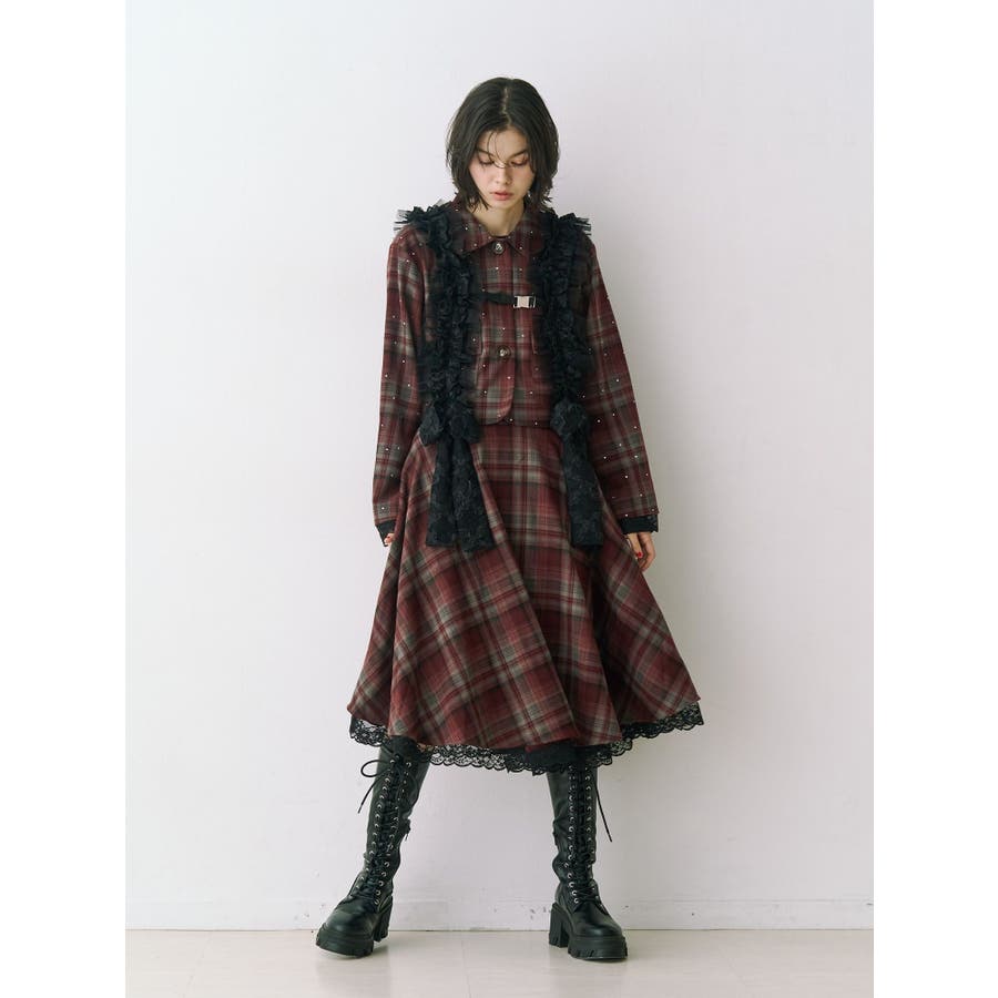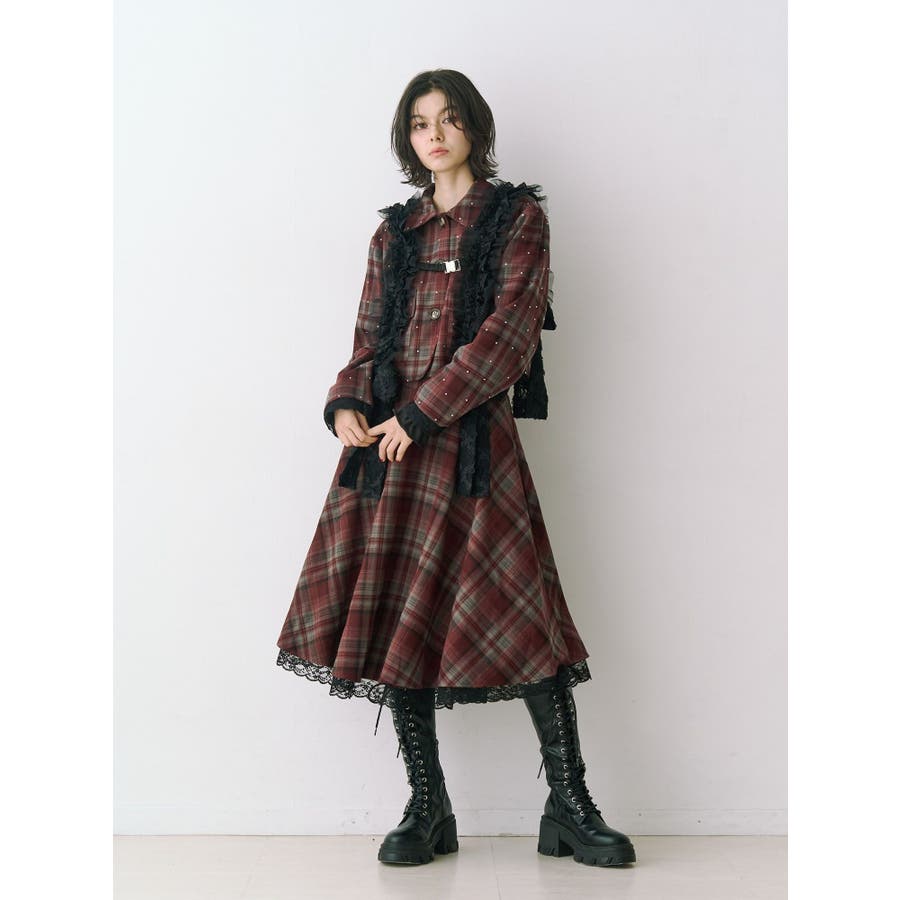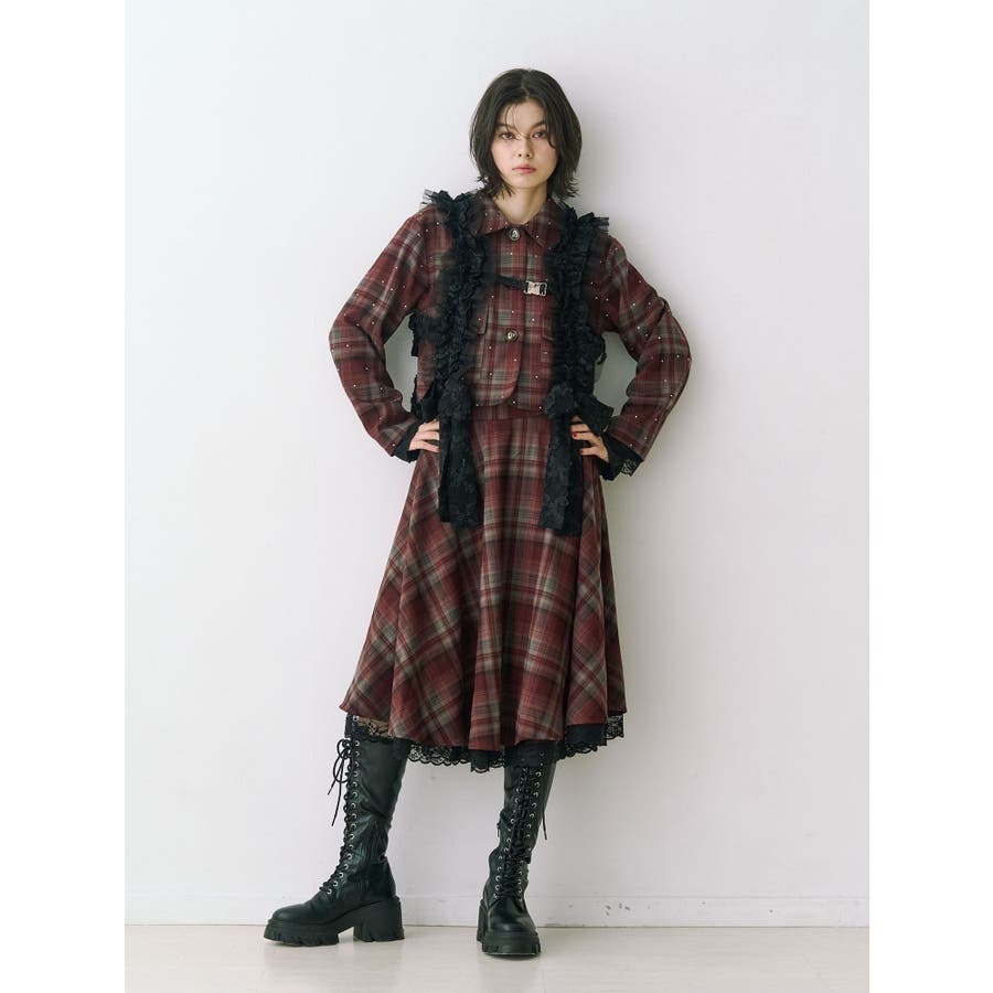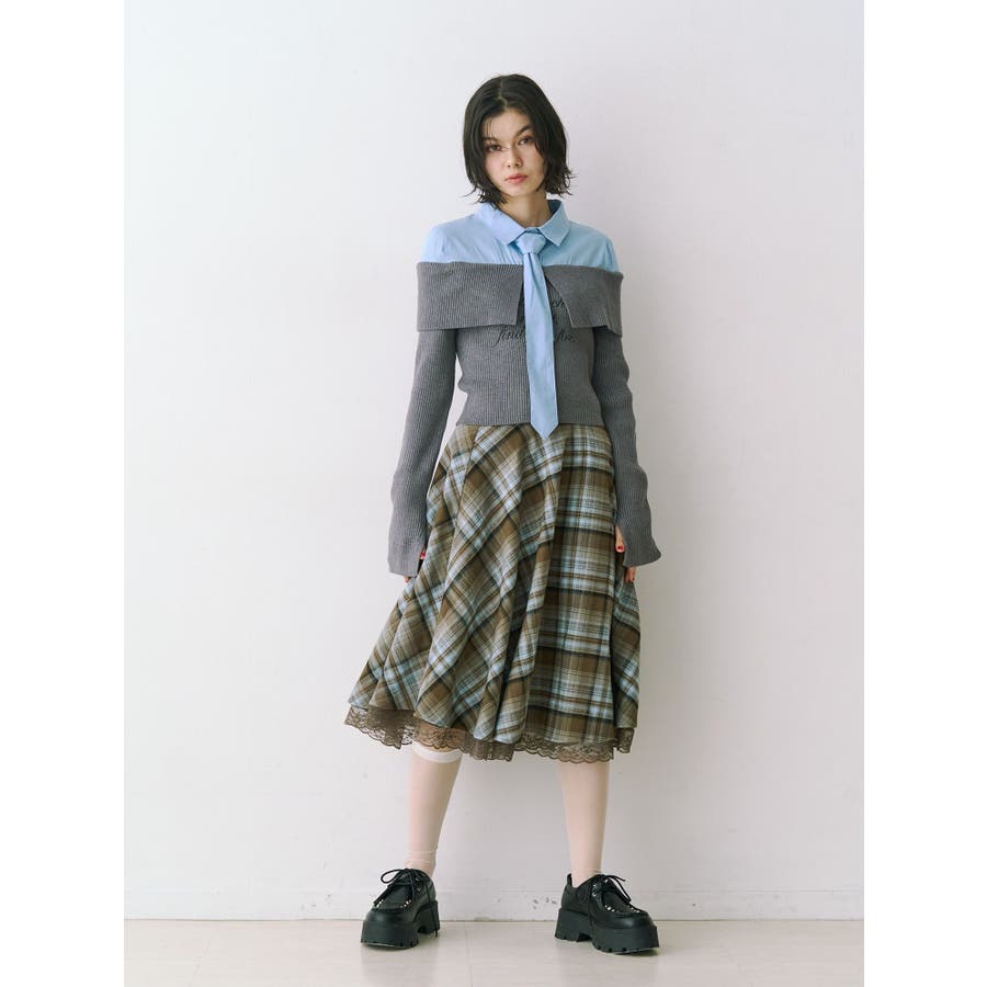 | 素材 | [グレー]表地:ポリエステル80% レーヨン15% ポリウレタン5% 裏地:ポリエステル100% レース:ナイロン100%[レッド/ブラウン]表地:ポリエステル80% レーヨン18% ポリウレタン2% 裏地:ポリエステル100% レース:ナイロン100% |