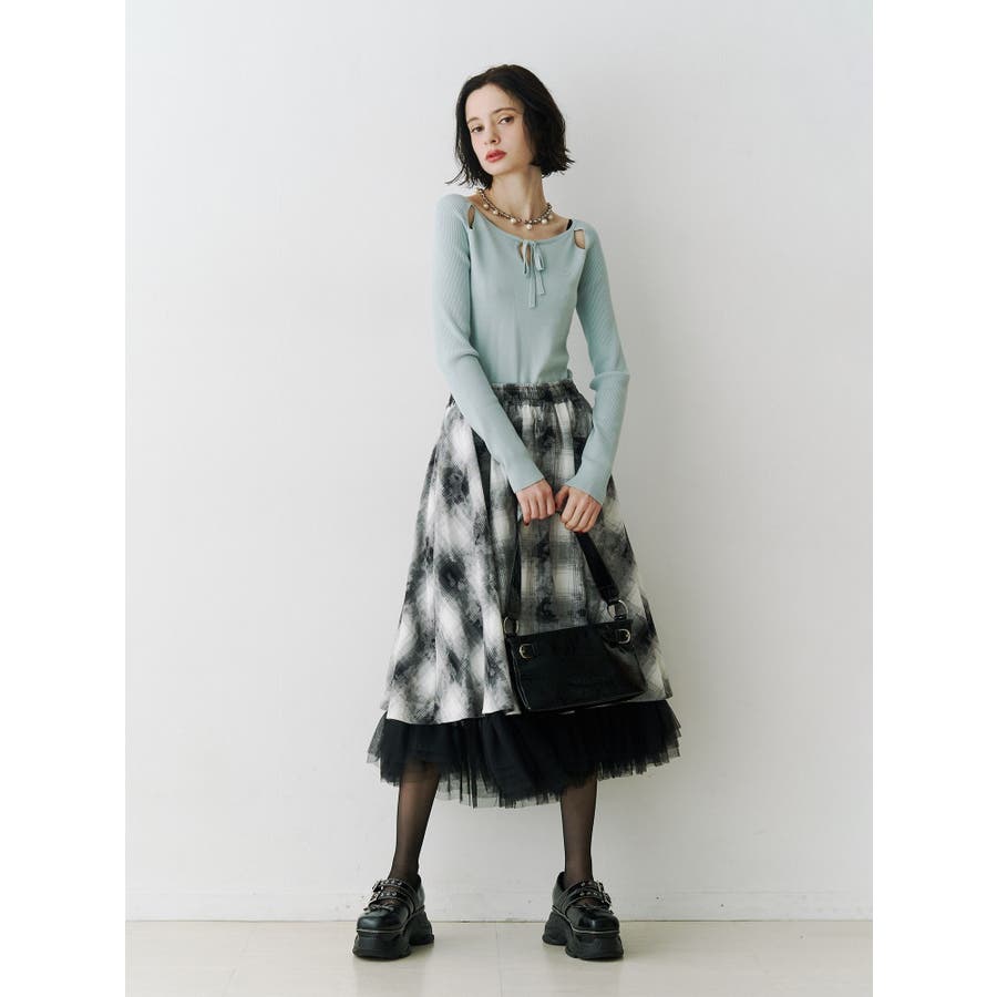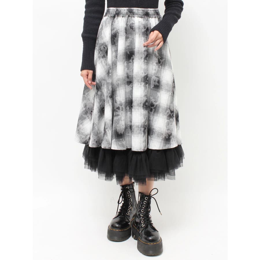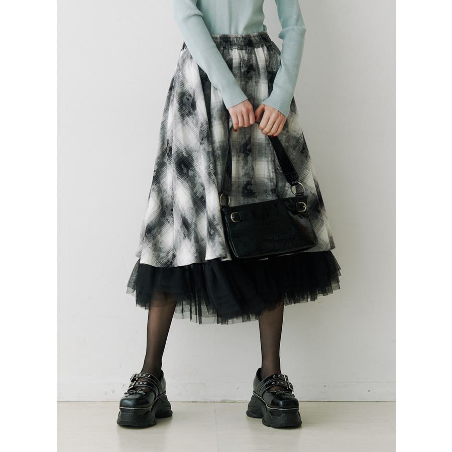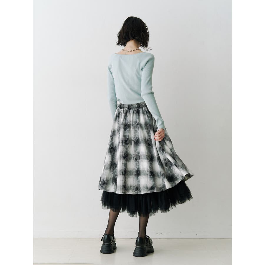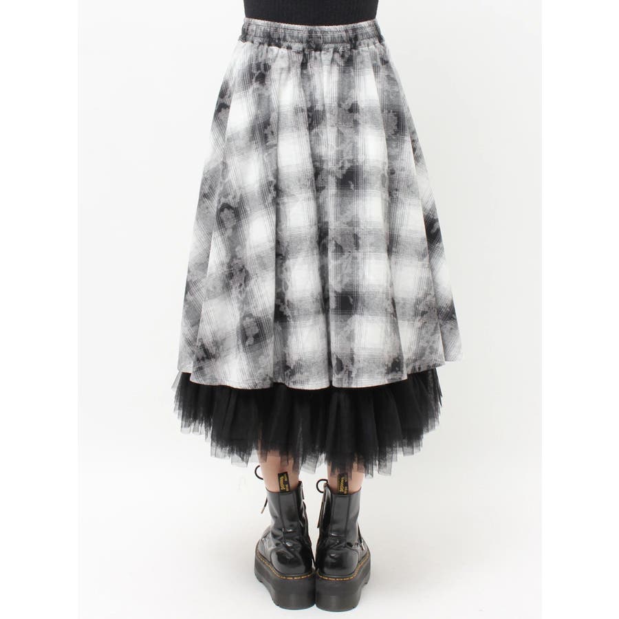チュールリバーシブルチェックフレアスカート