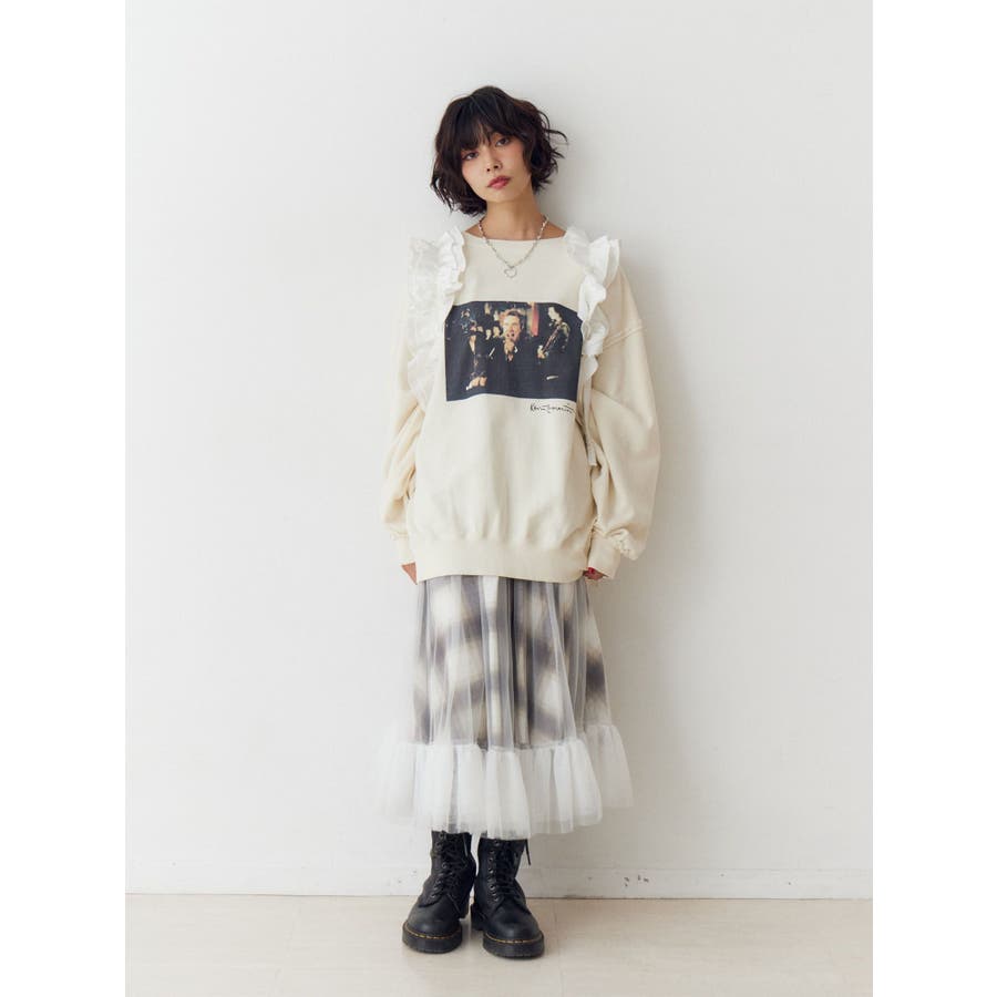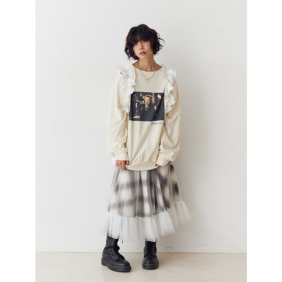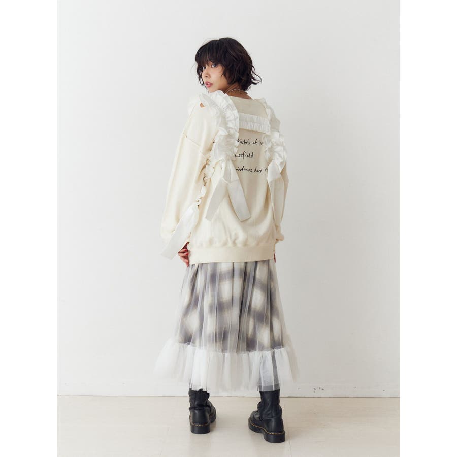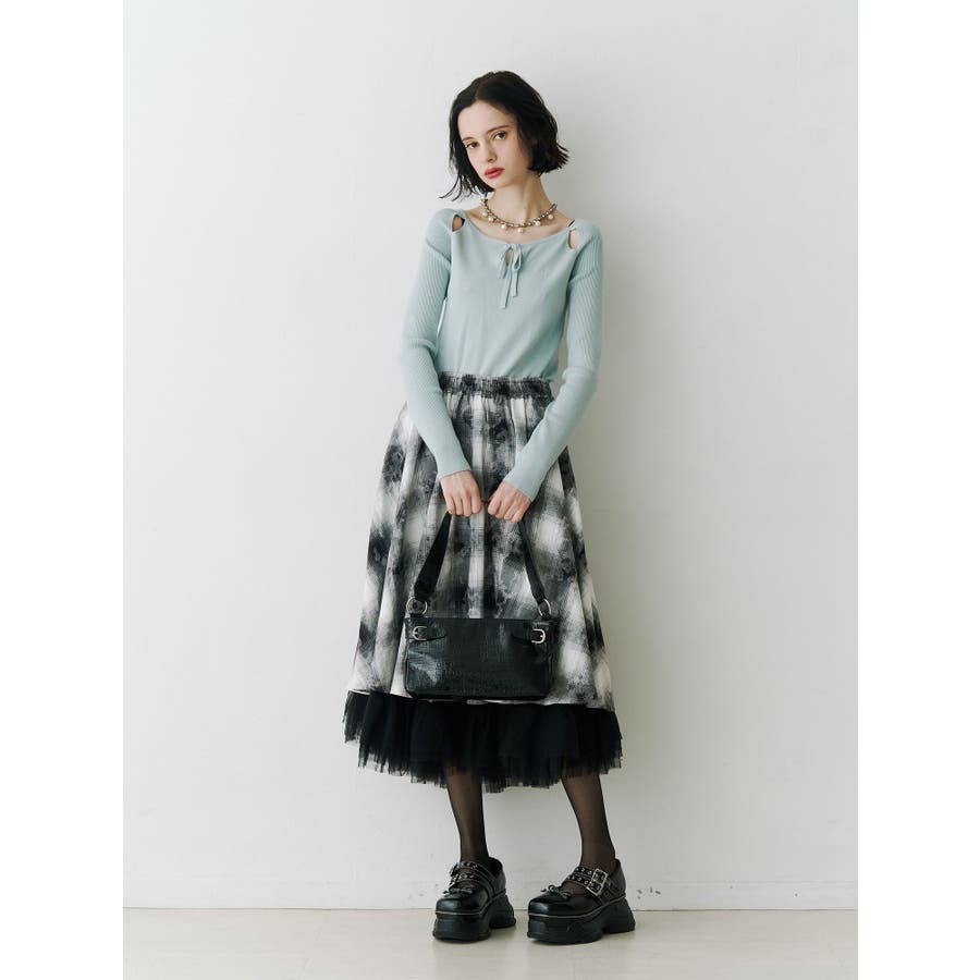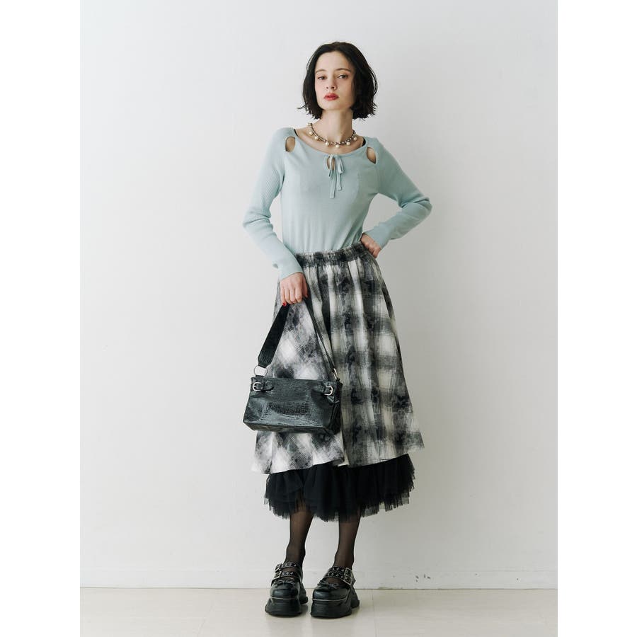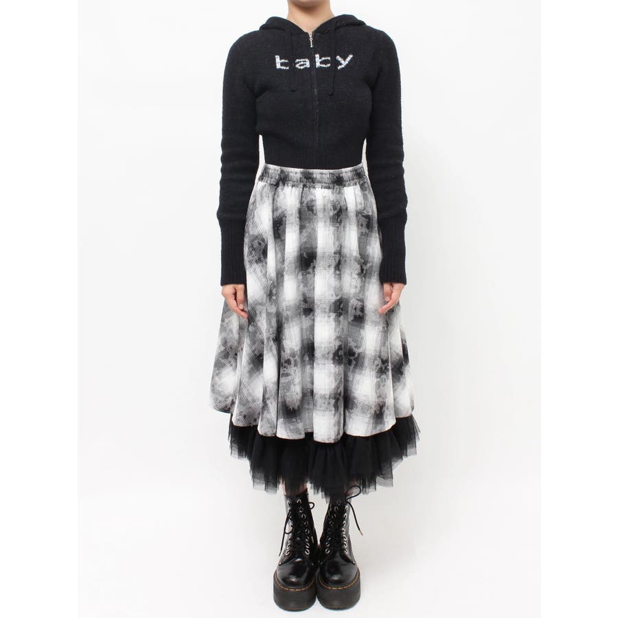 チュールリバーシブルチェックフレアスカート